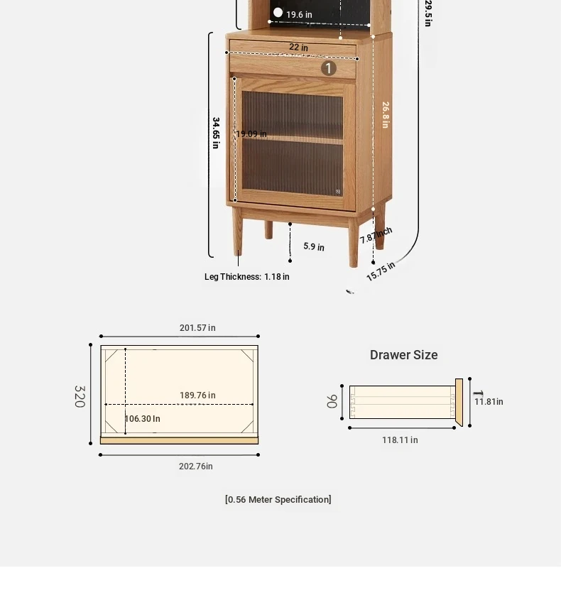 [Oak-log color-lower section] 22.05 in sideboard (22.05in*15.75in*34.65in