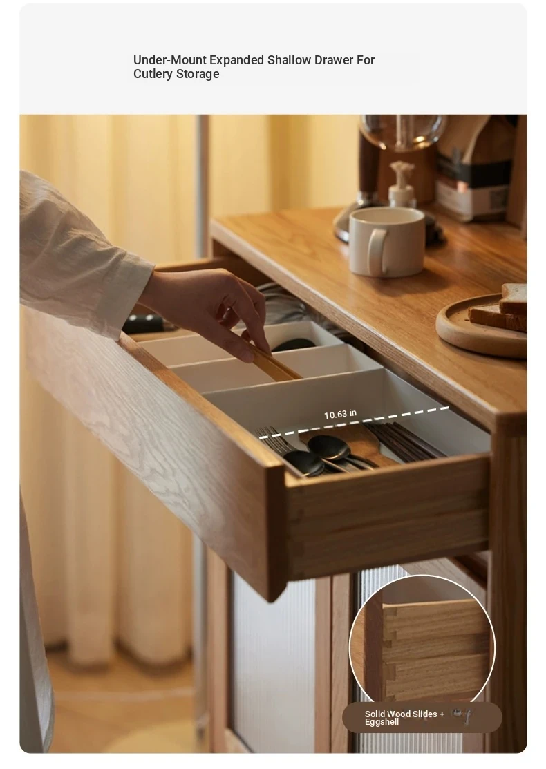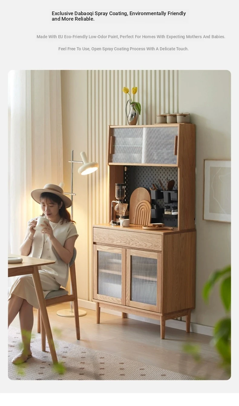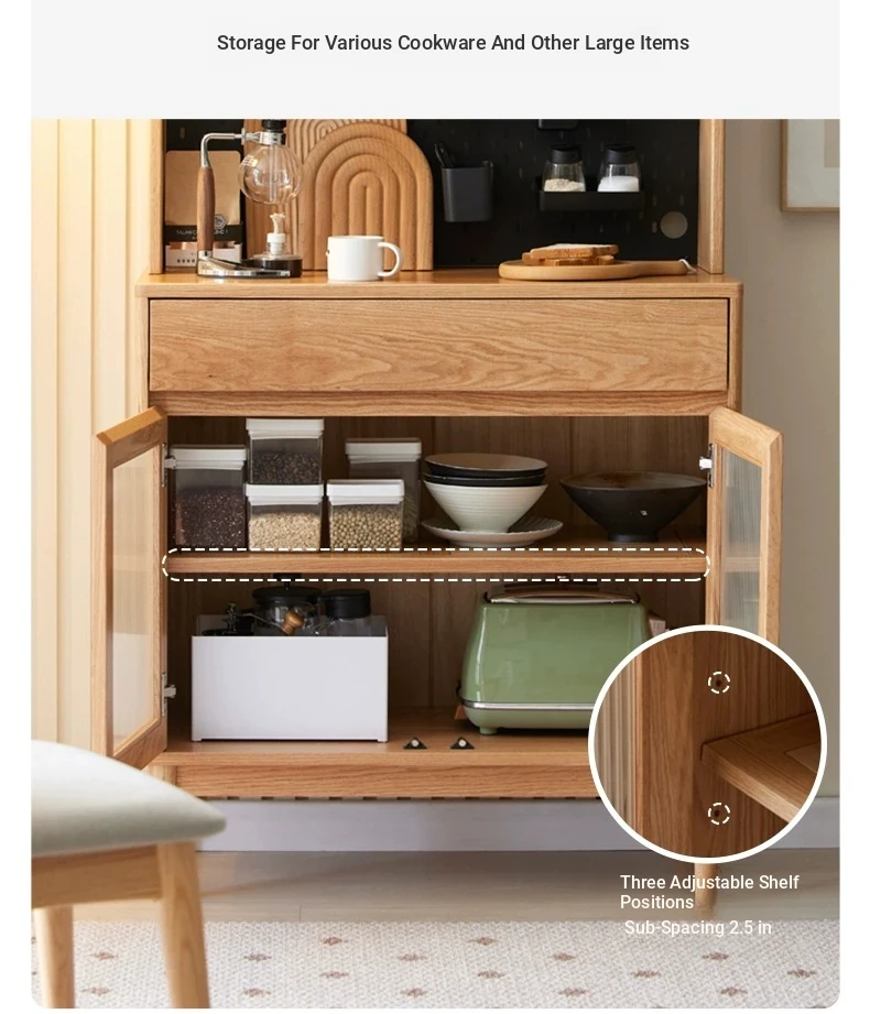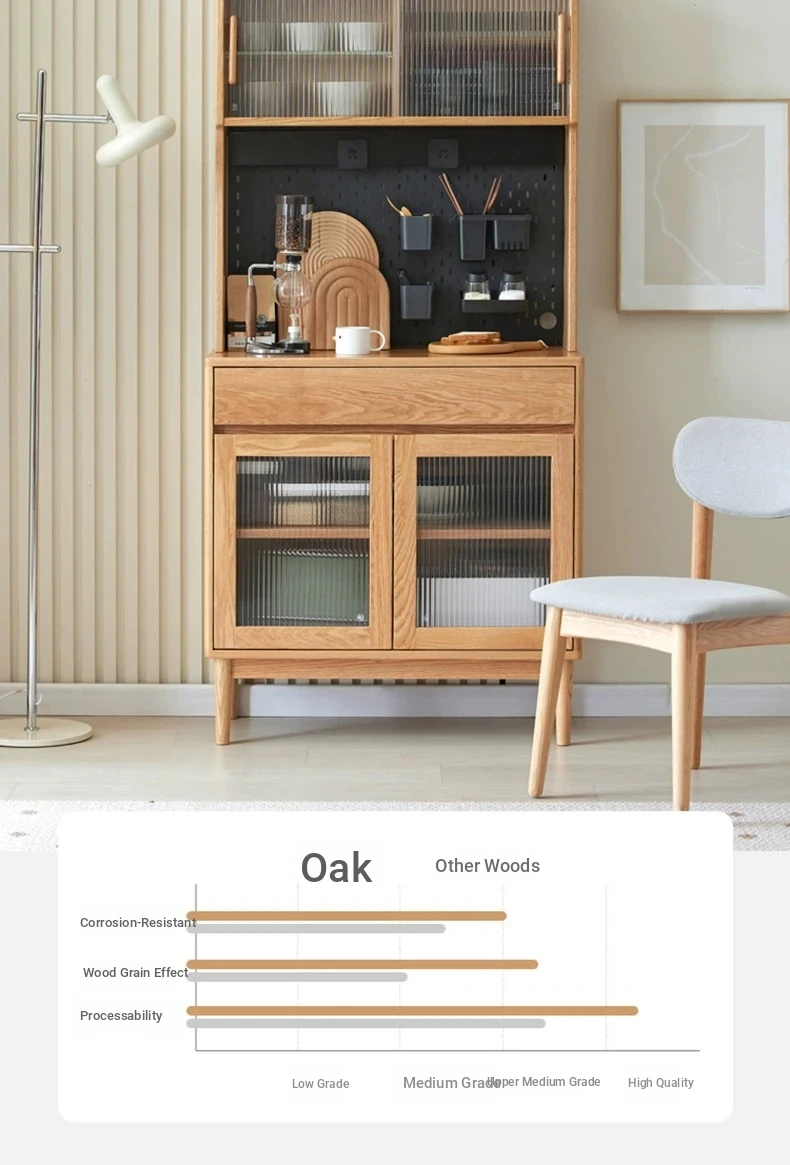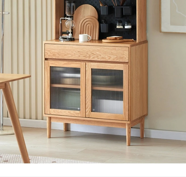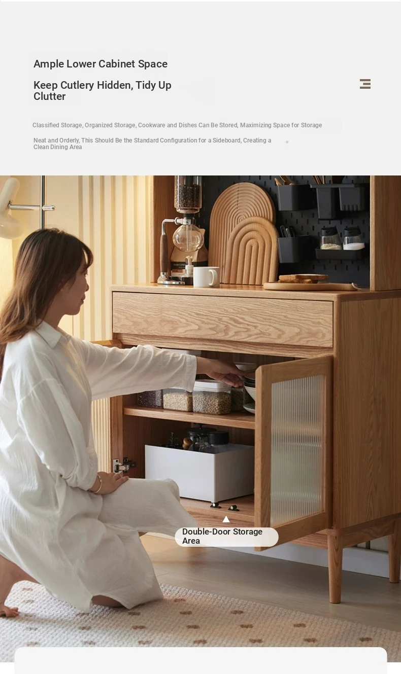 Natural Solid Wood Dining Sideboard - Oak Storage Cabinet for Living Room, Multifunctional Organizer for Dining Room and Kitchen, Stylish Space-Saving Unit