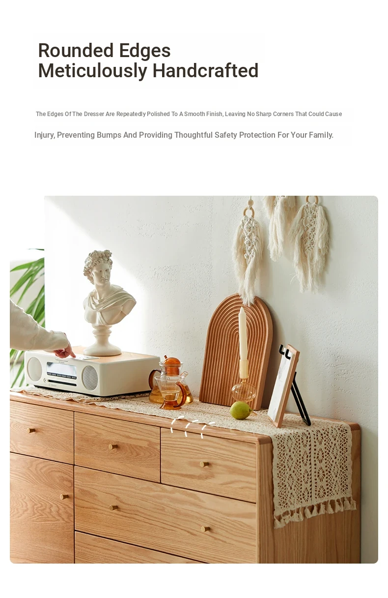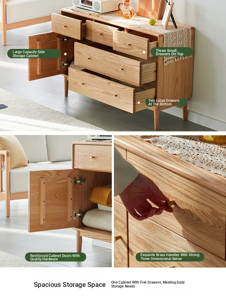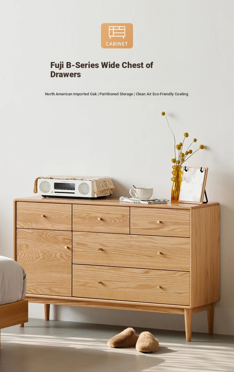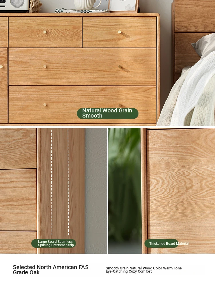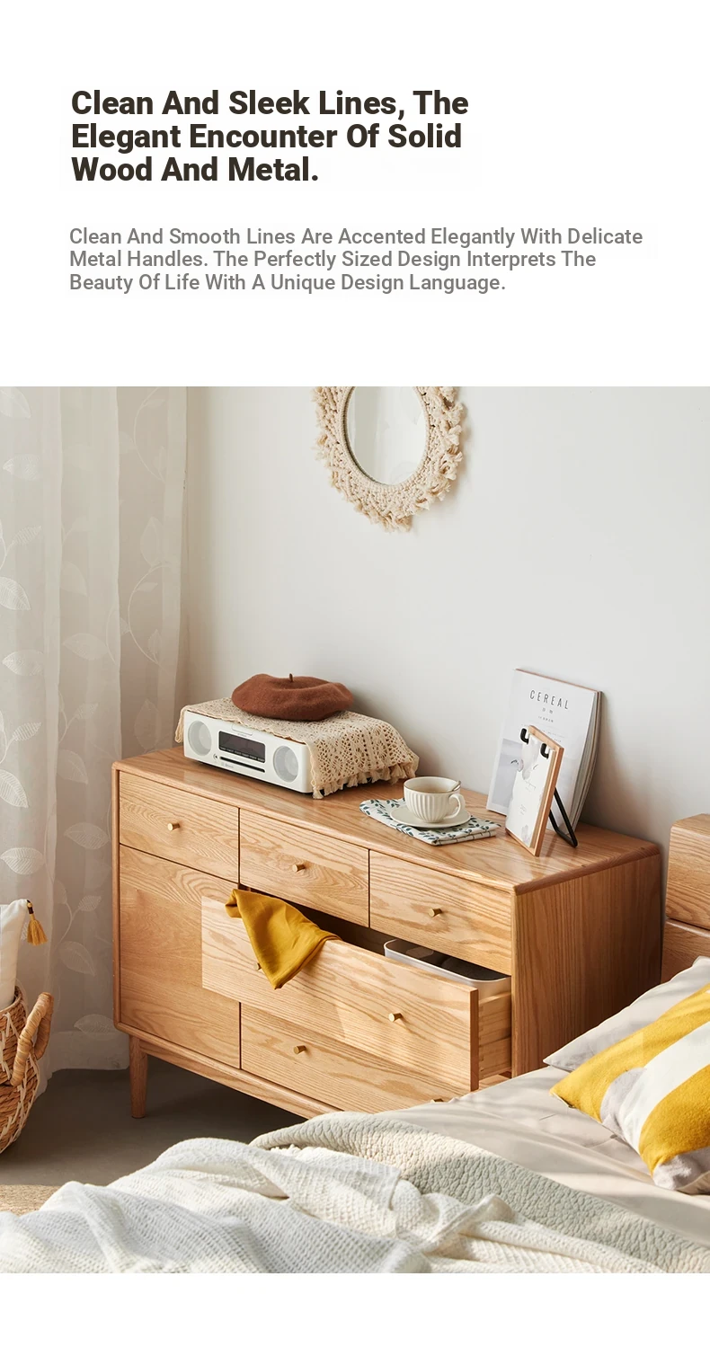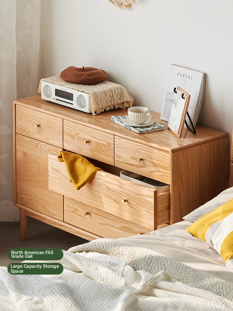 Natural Solid Wood Five-Drawer Chest – Nordic Oak Seven-Drawer Cabinet for Bedroom, Stylish End-of-Bed Storage with Extra-Wide Drawers for Maximum Organization