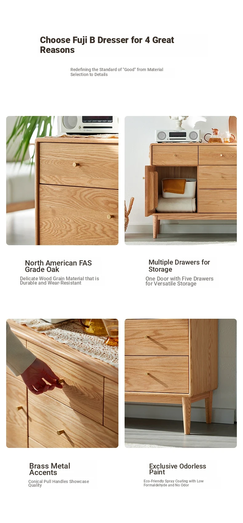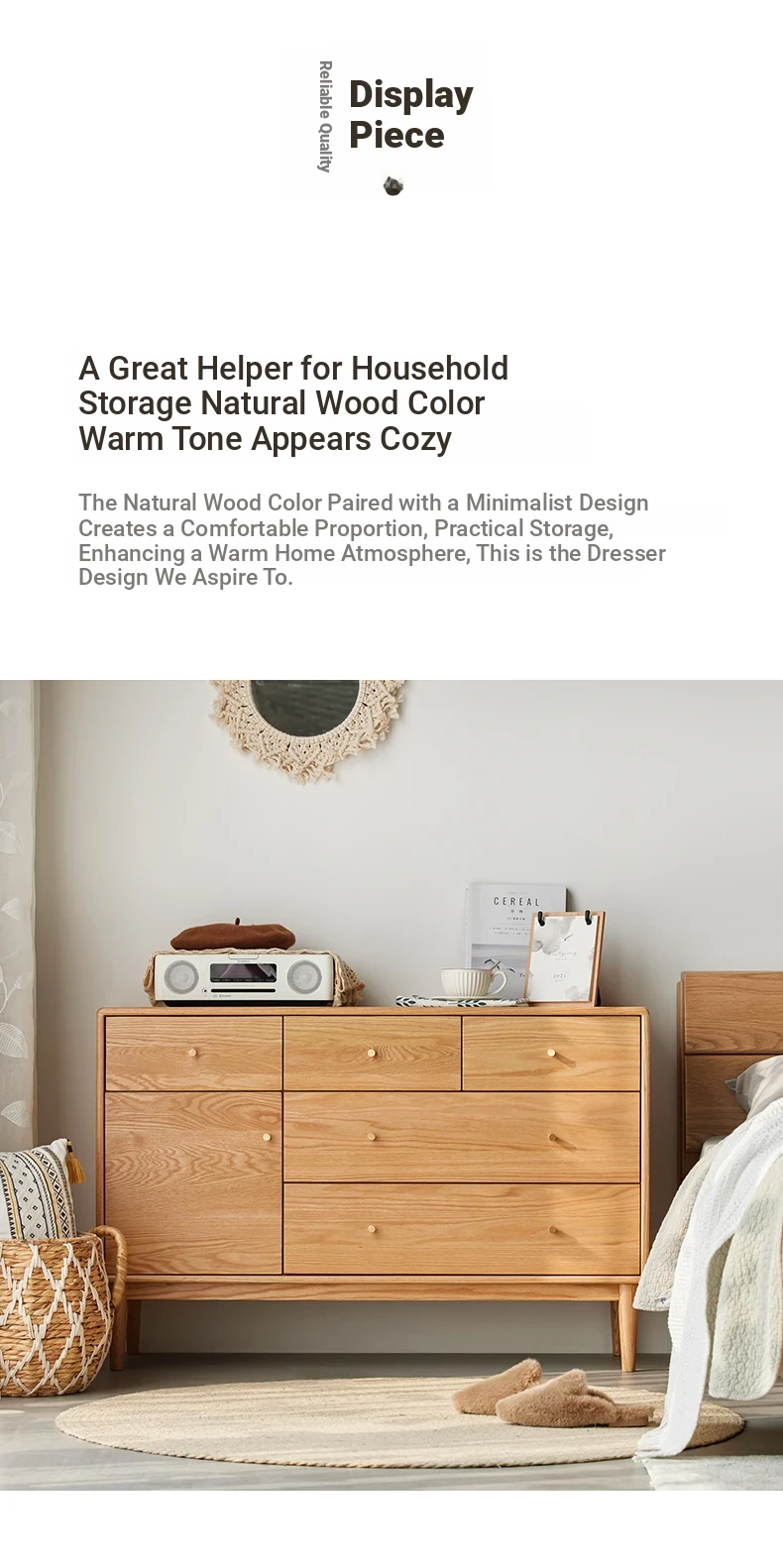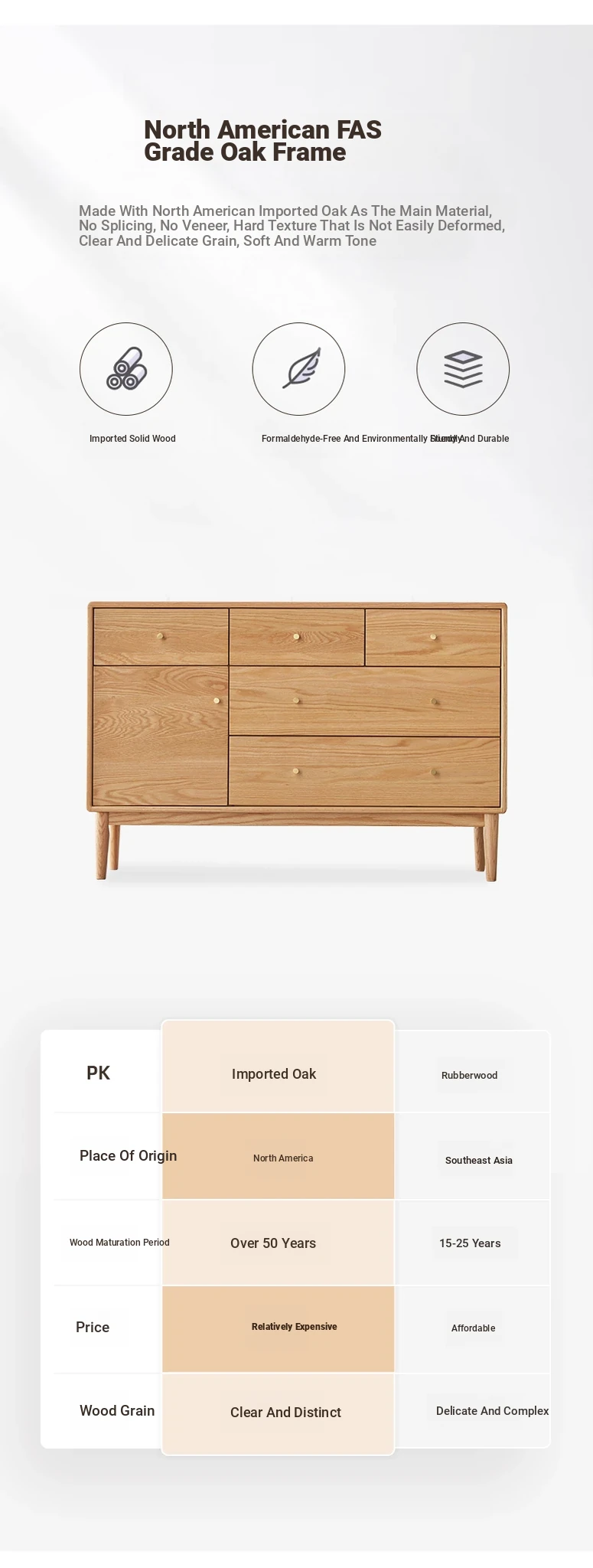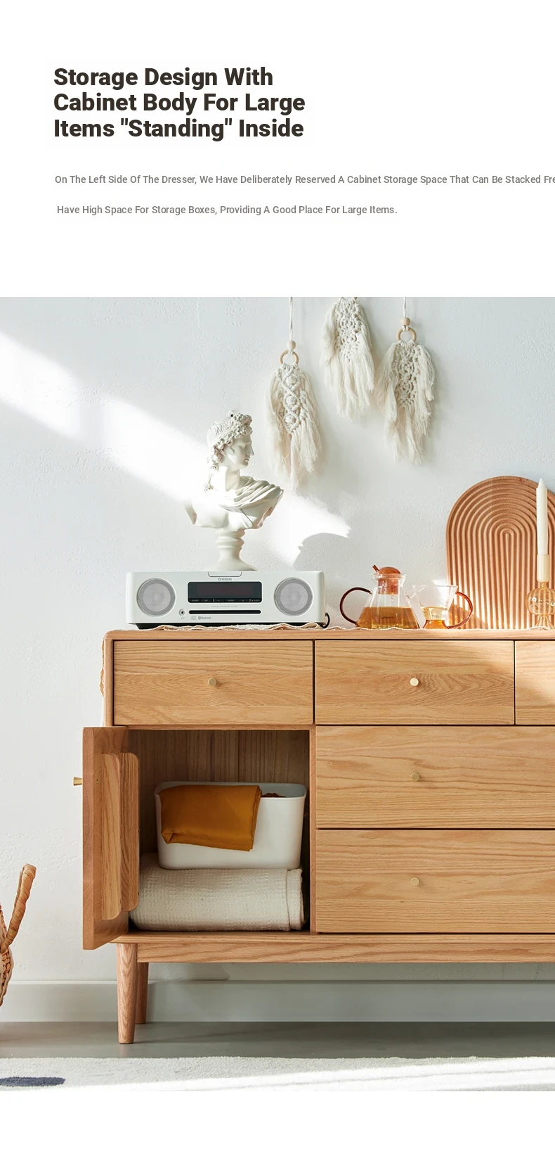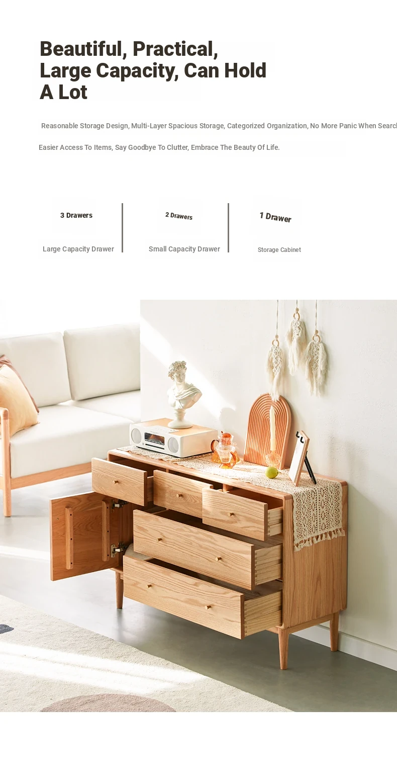 Natural Solid Wood Five-Drawer Chest – Nordic Oak Seven-Drawer Cabinet for Bedroom, Stylish End-of-Bed Storage with Extra-Wide Drawers for Maximum Organization