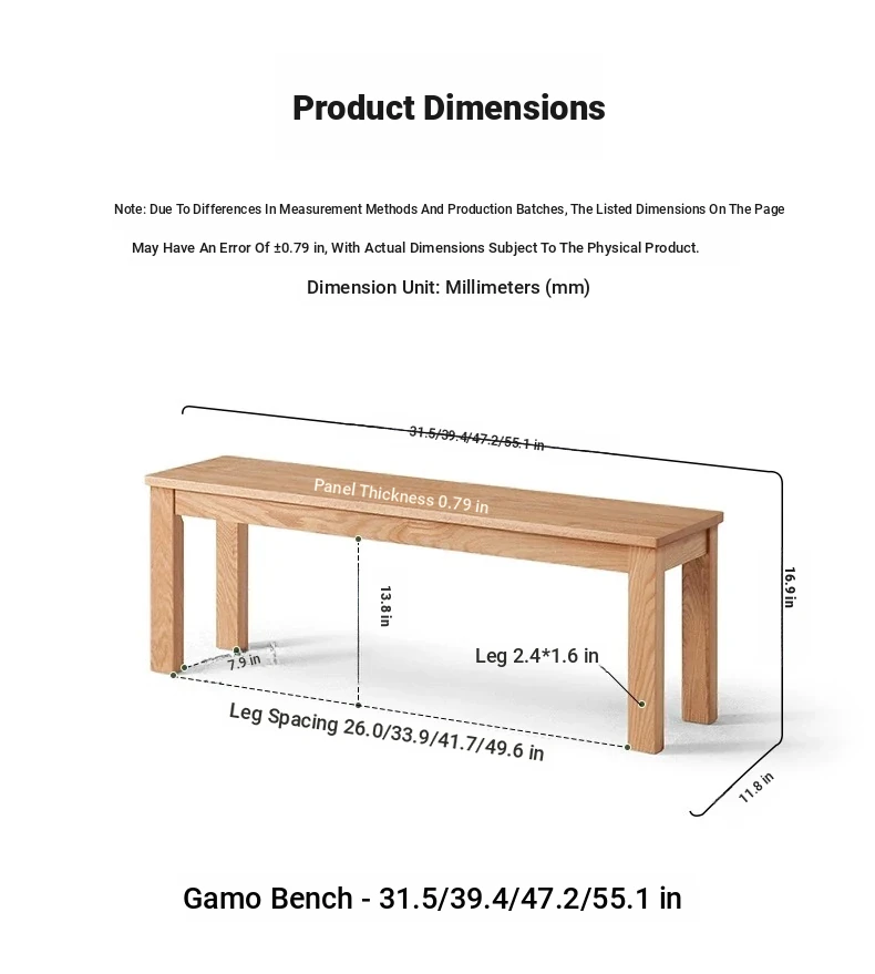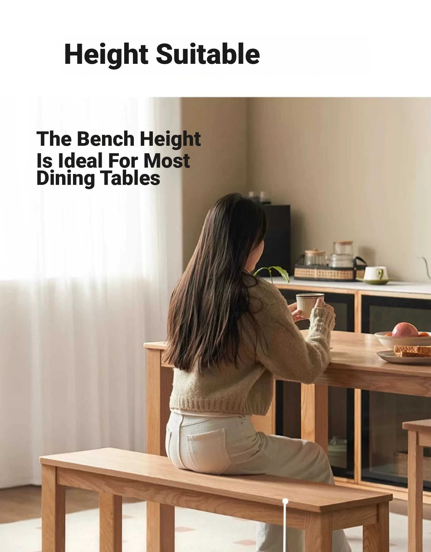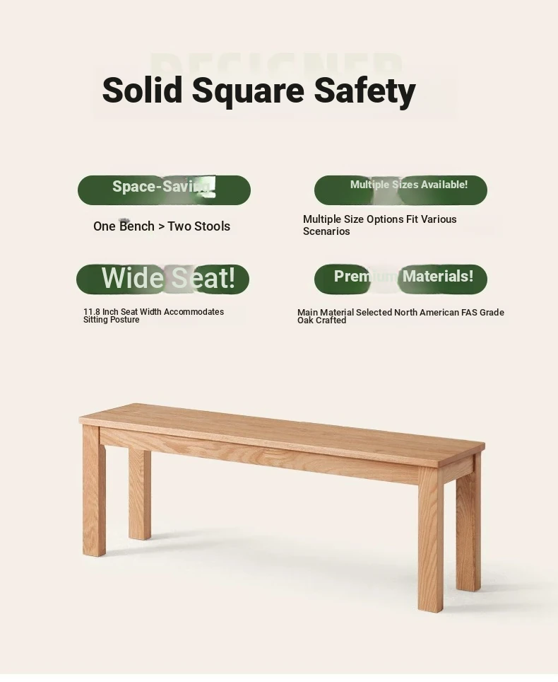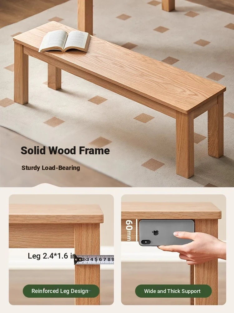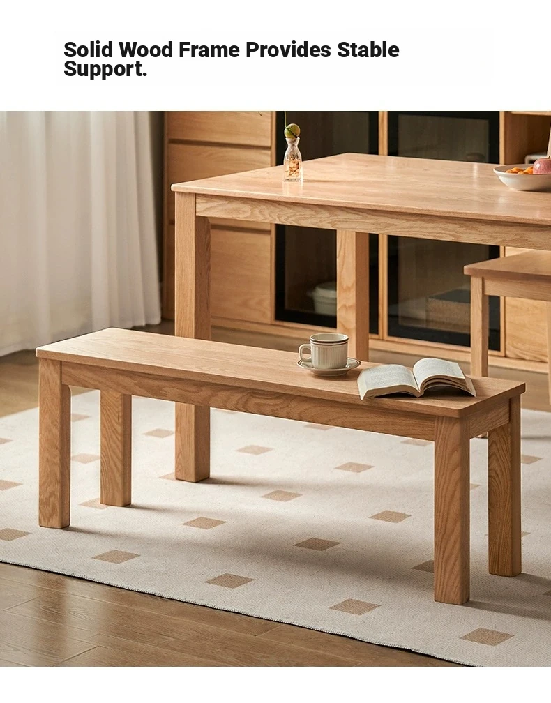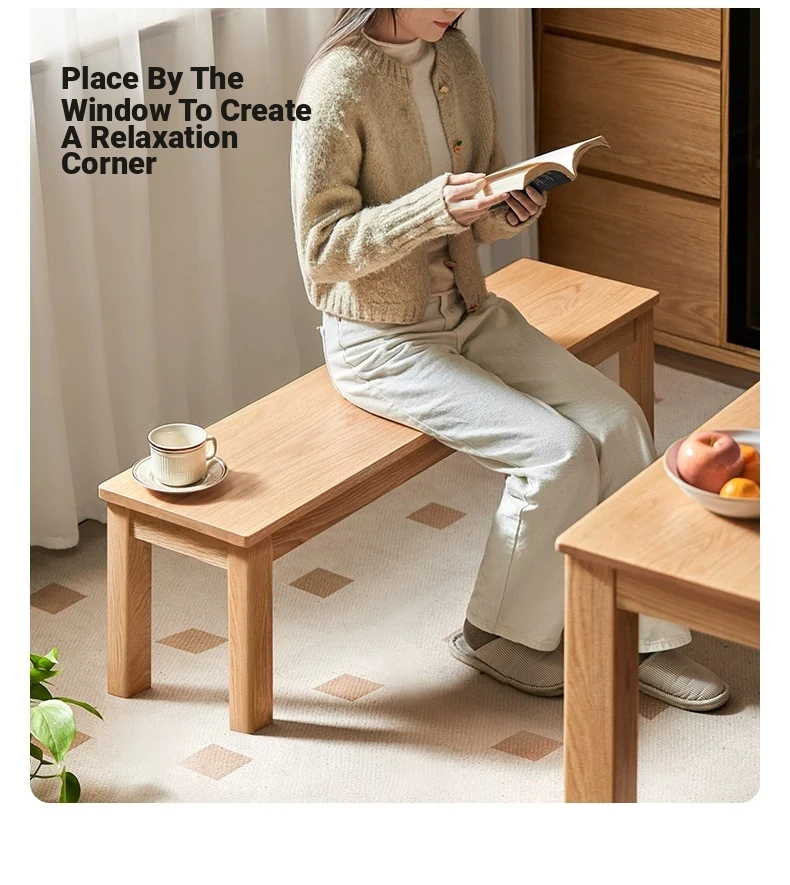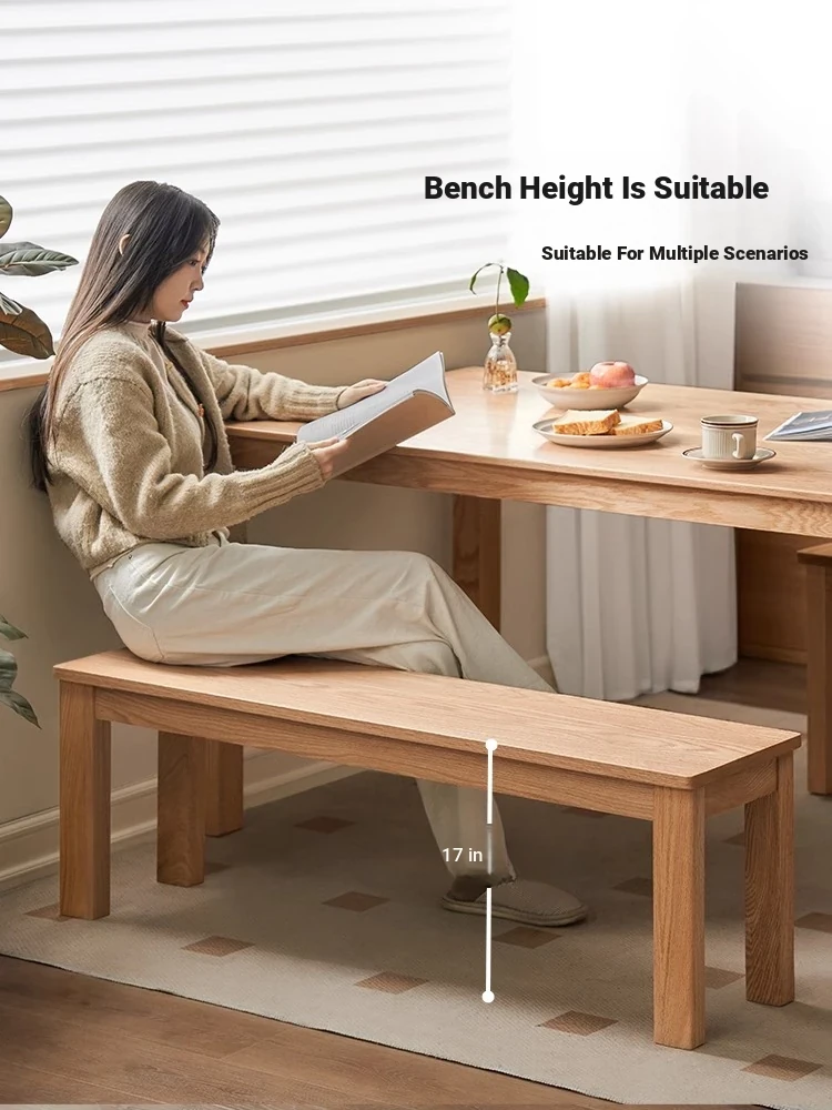 Natural Solid Wood Long Bench - Nordic Modern Minimalist Oak Dining Stool for Restaurant, Bedroom End Bench, Versatile and Stylish Furniture Solution