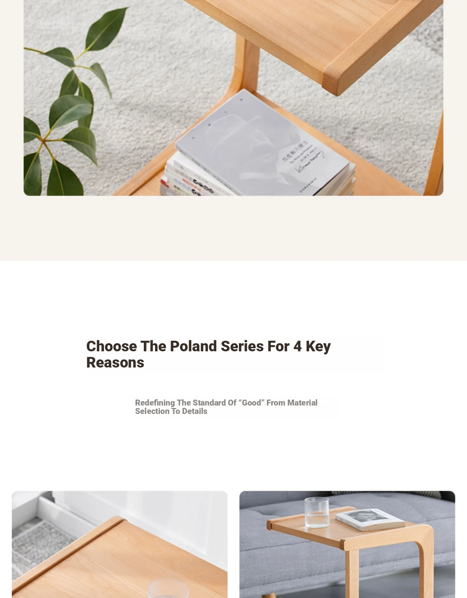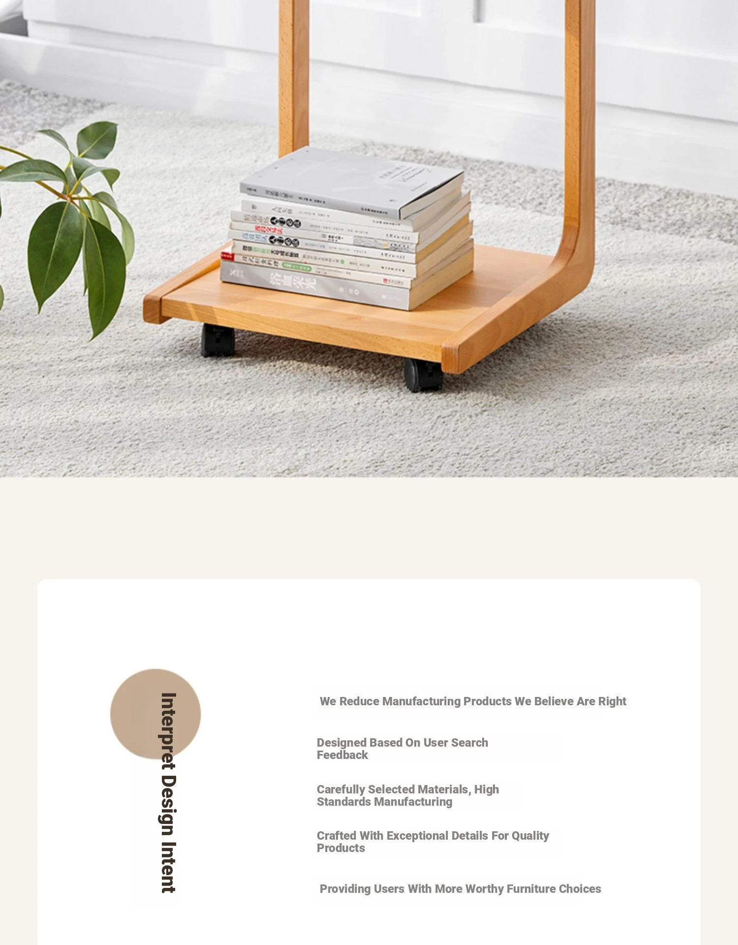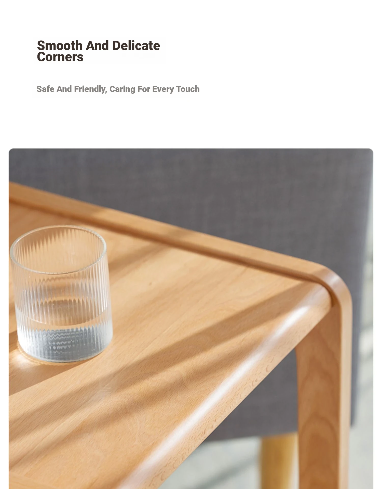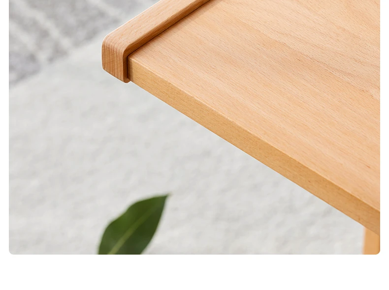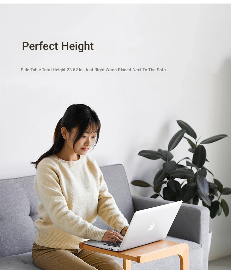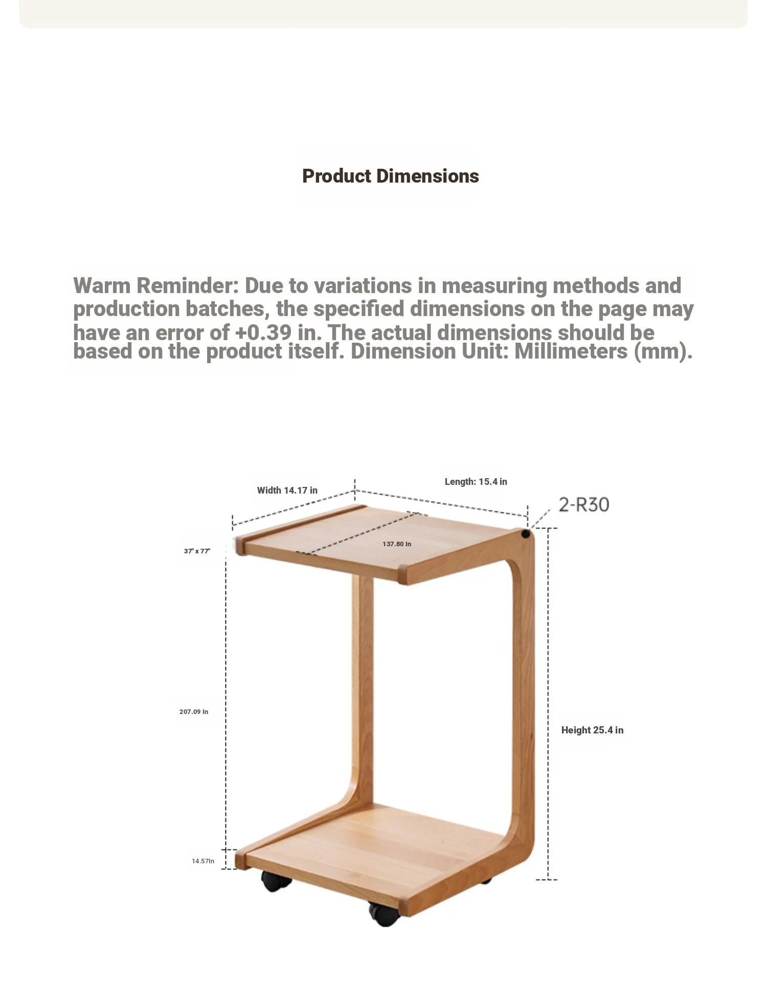 Natural Solid Wood Side Table - Nordic Minimalist C-Shaped Coffee Table on Wheels, Beech Wood, Movable Bedside Table for Sofa and Corner Use