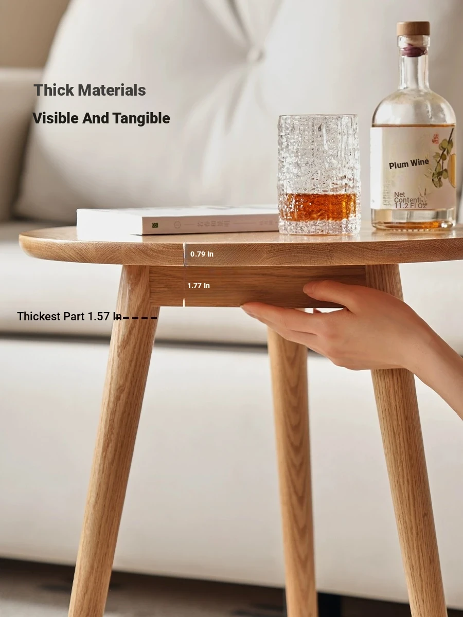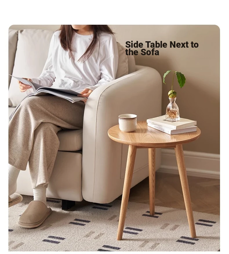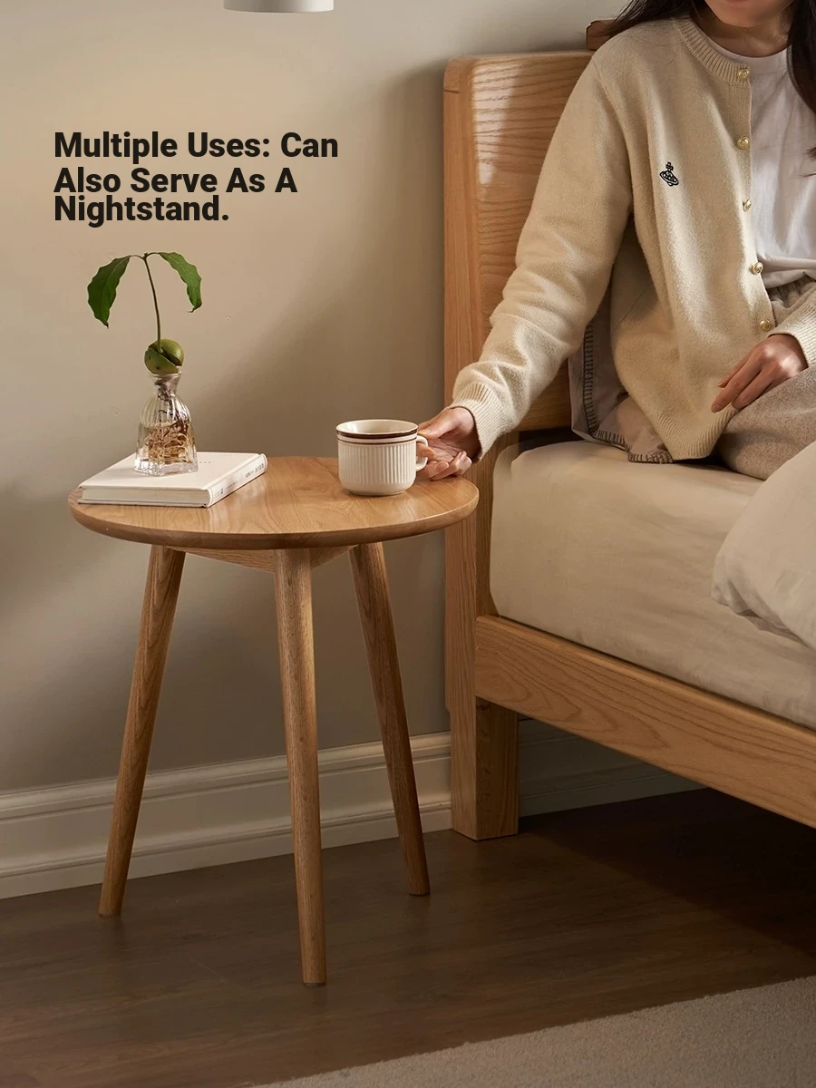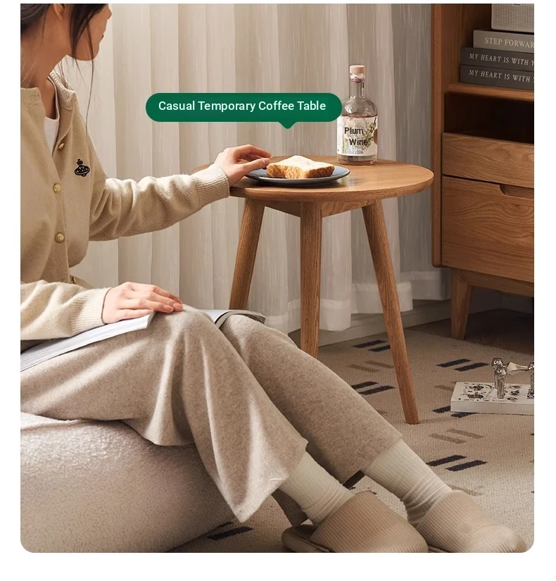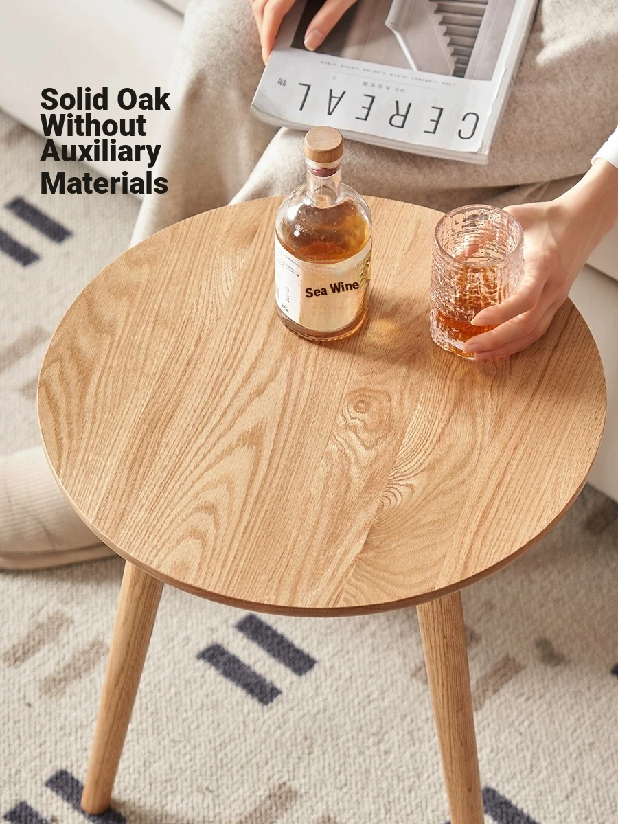 "Natural Solid Wood Side Table - Round Oak Coffee Table for Minimalist Living Rooms, Perfect for Couchside Use"