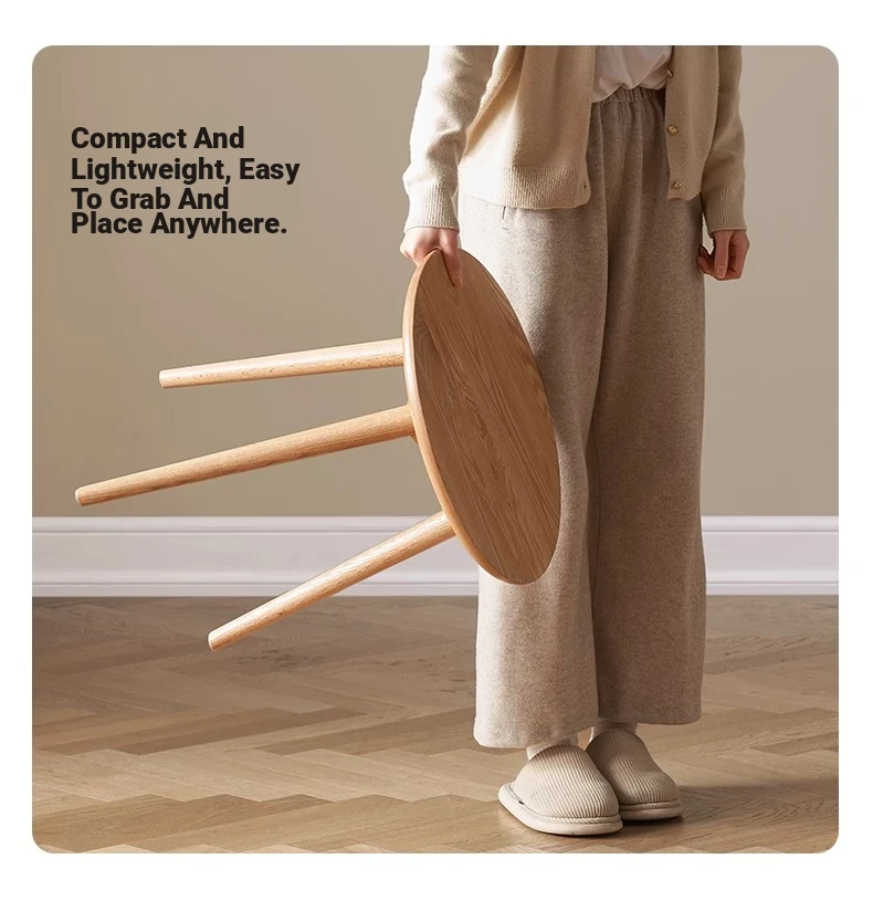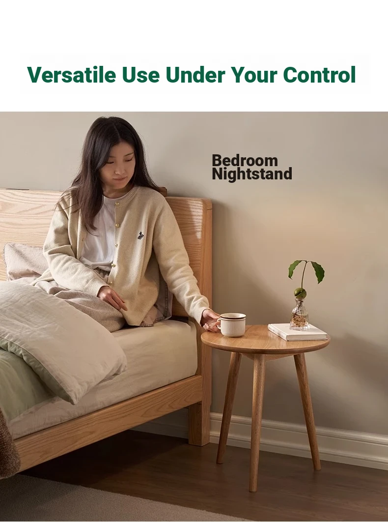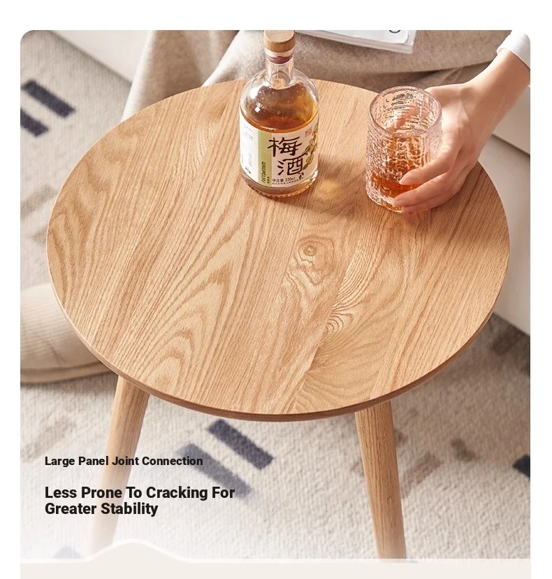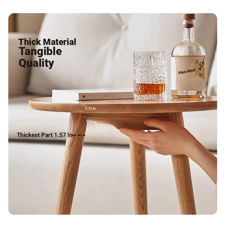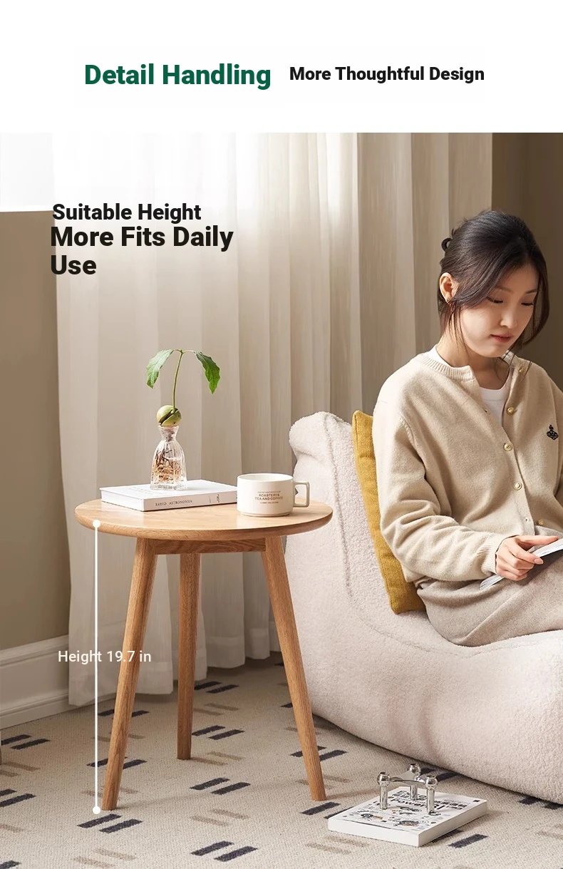 "Natural Solid Wood Side Table - Round Oak Coffee Table for Minimalist Living Rooms, Perfect for Couchside Use"