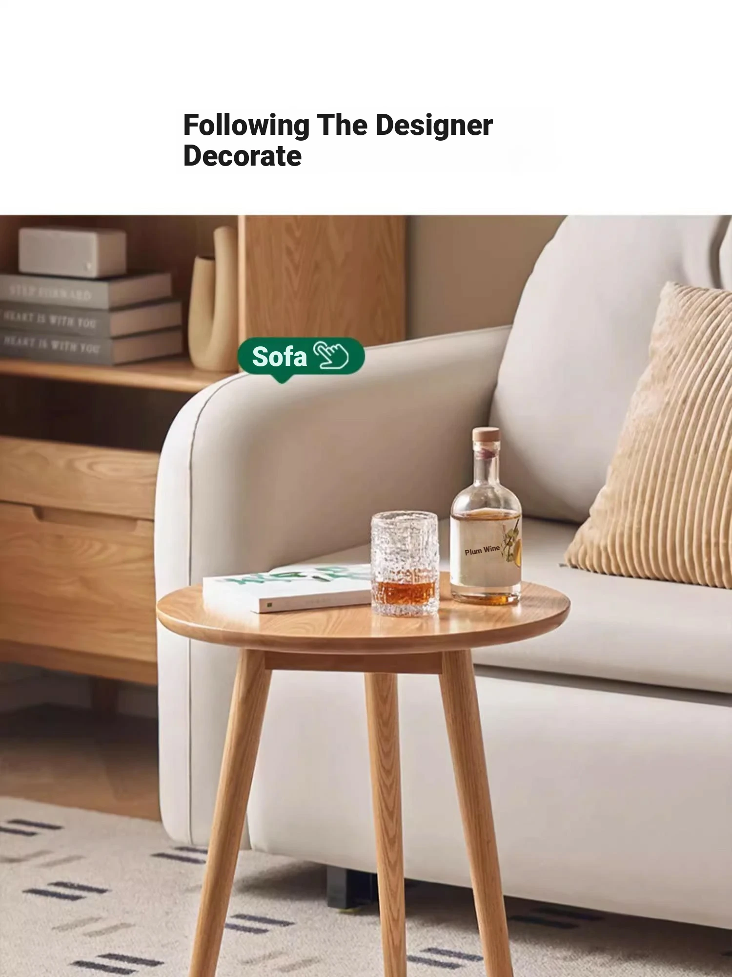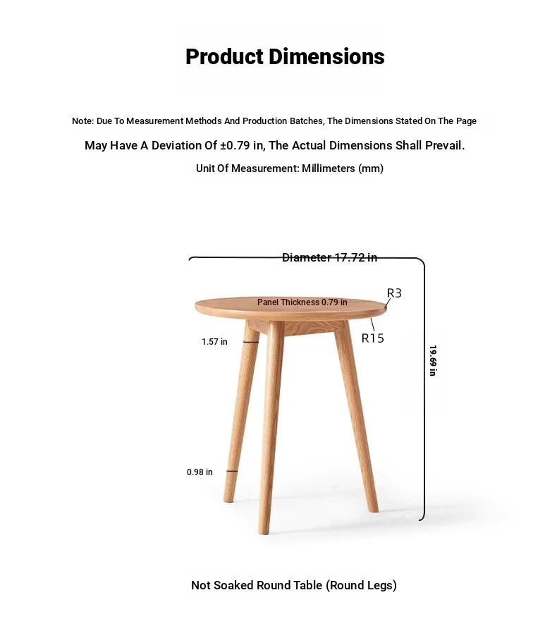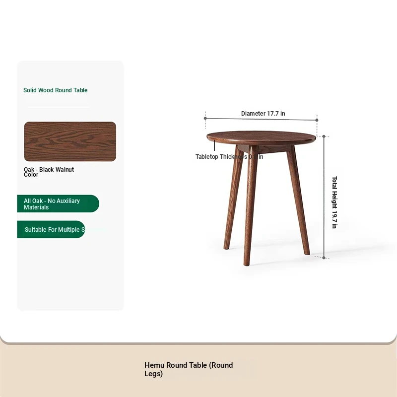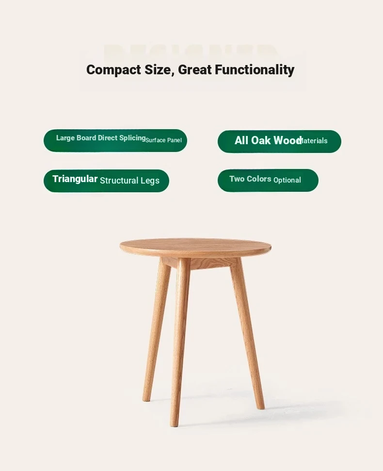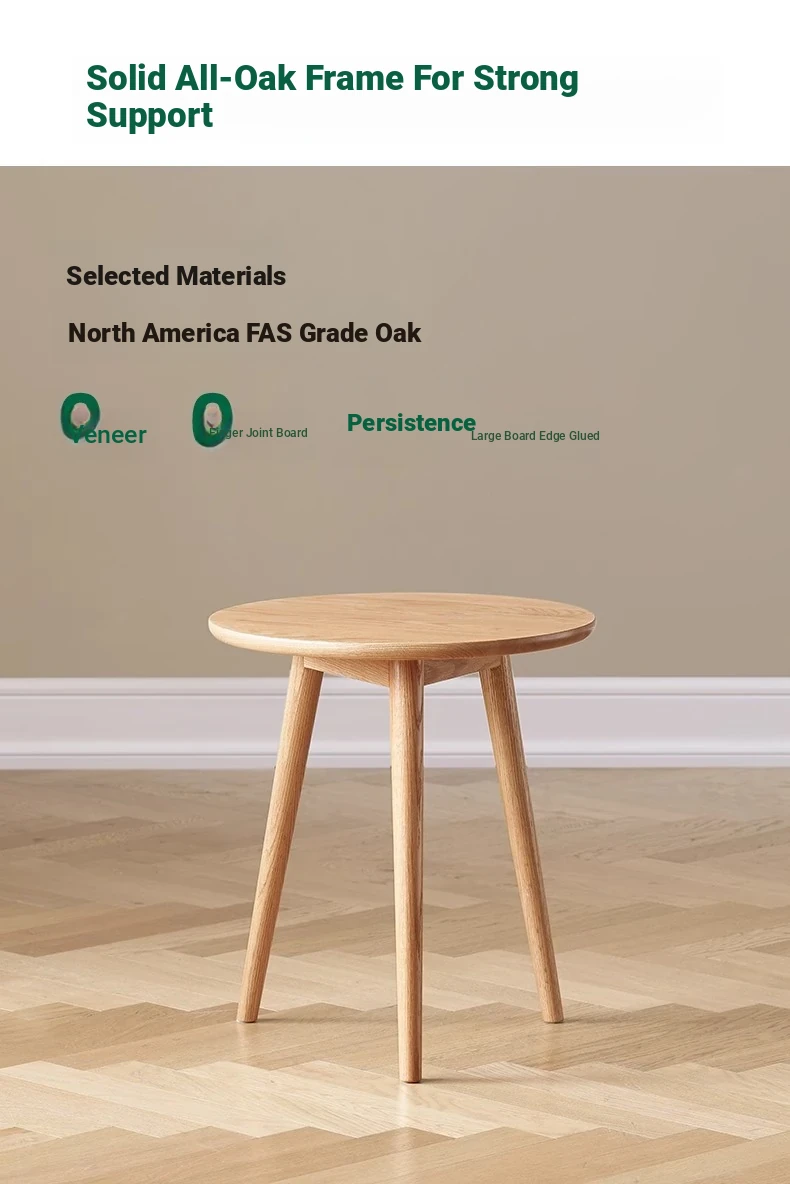 "Natural Solid Wood Side Table - Round Oak Coffee Table for Minimalist Living Rooms, Perfect for Couchside Use"
