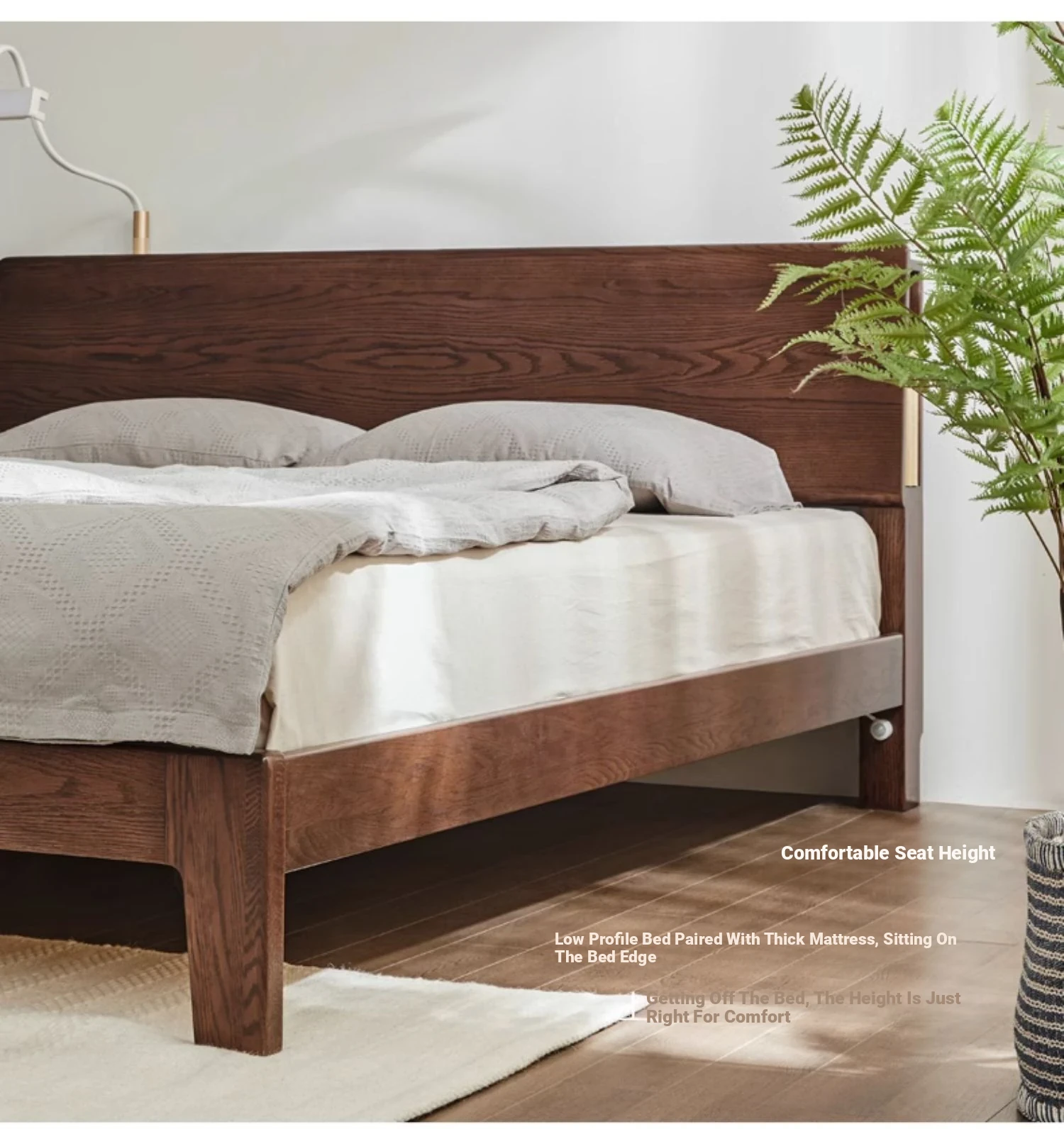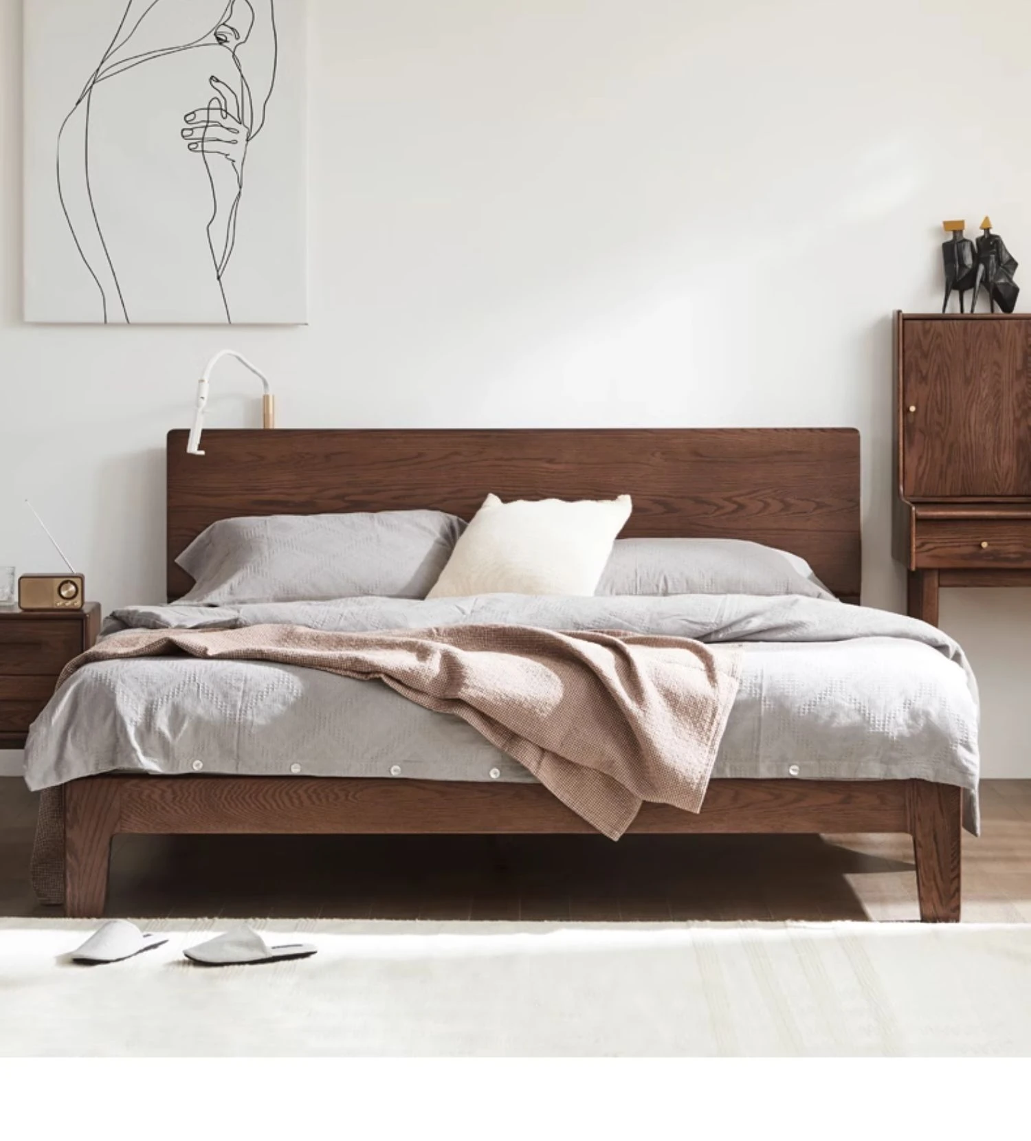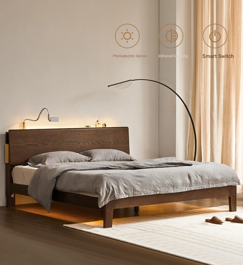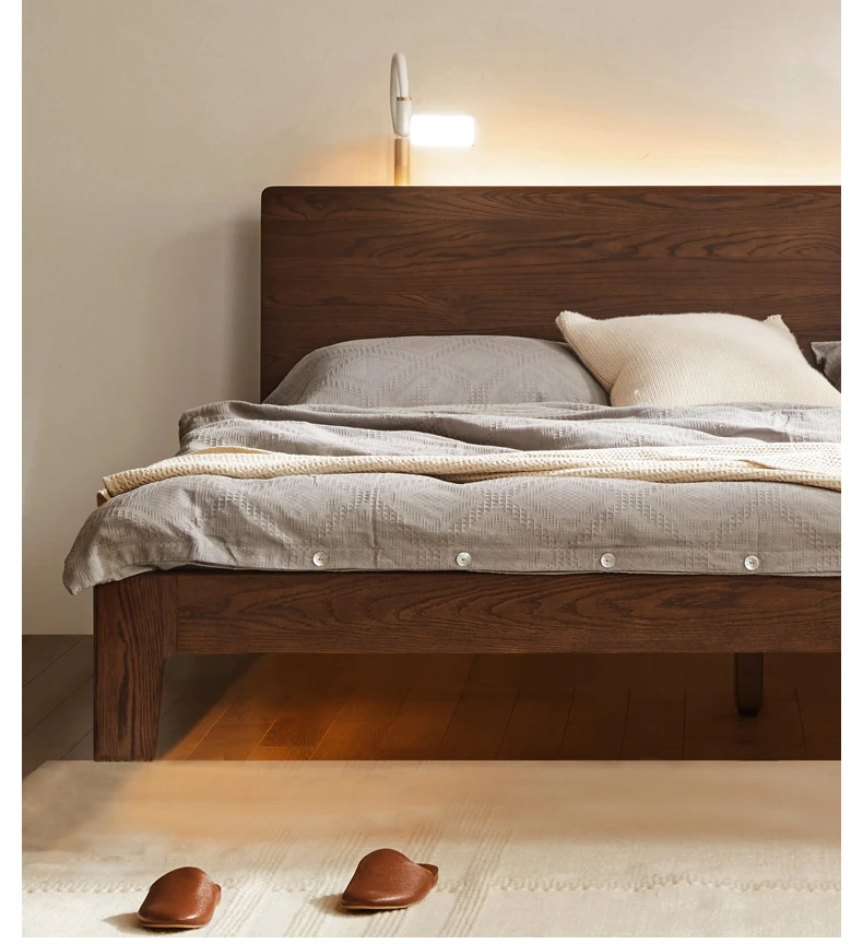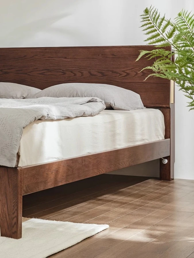 "Nordic Minimalist Solid Wood Bed for Small Bedrooms – 1.5m & 1.8m Oak Double Bed – Perfect Modern Furniture for Cozy Living Spaces"