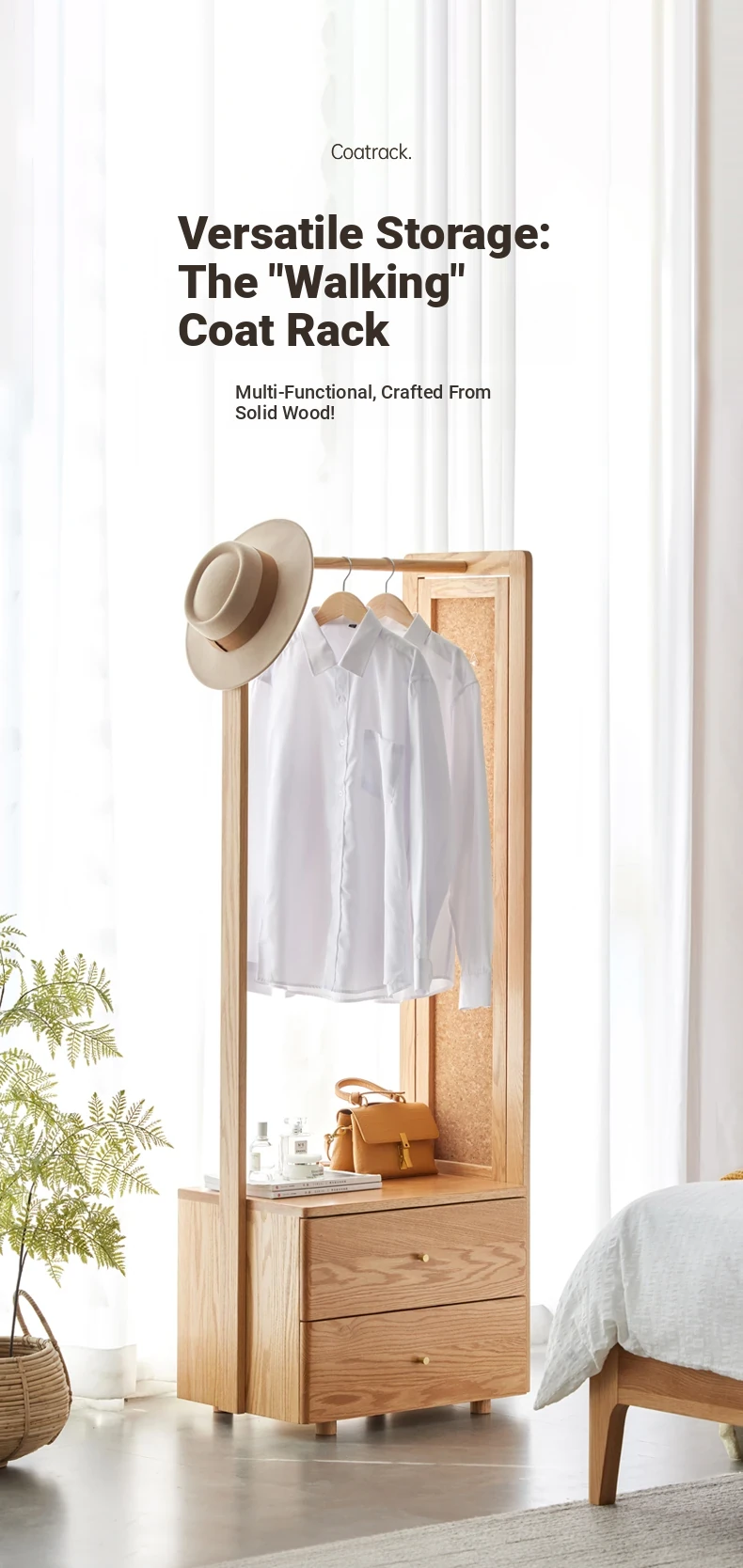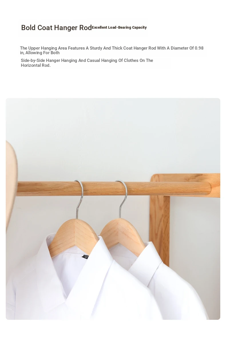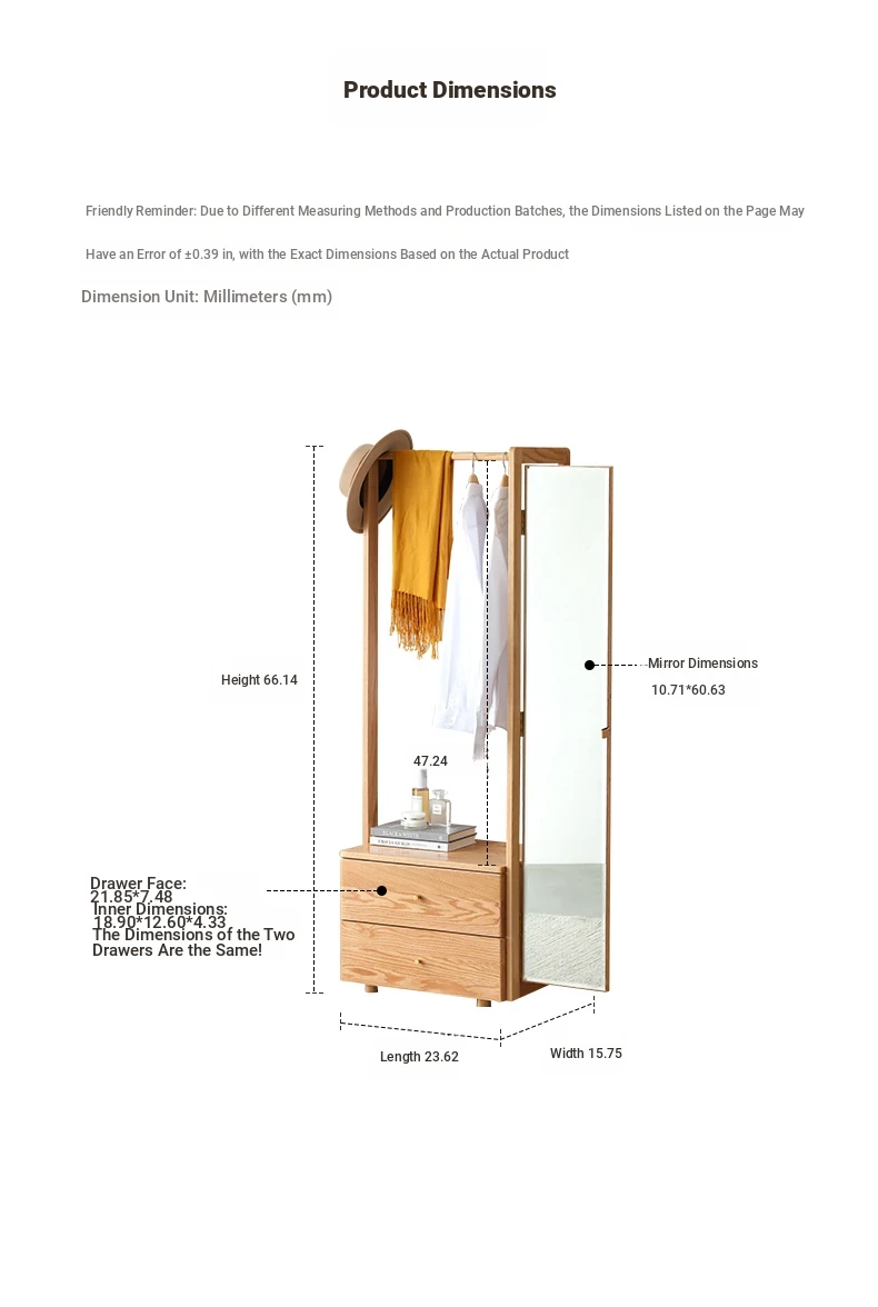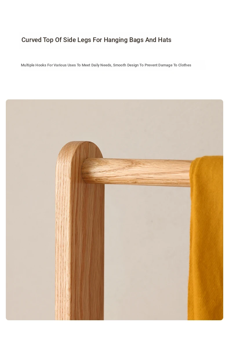 "Nordic Minimalist Solid Wood Coat Rack with Dressing Mirror - Compact Freestanding Clothes Hanger for Bedroom Use"