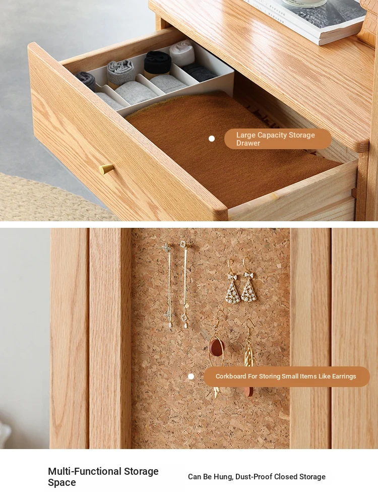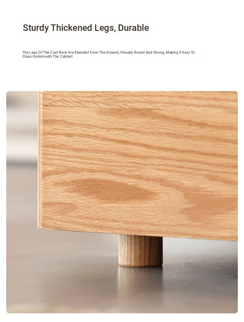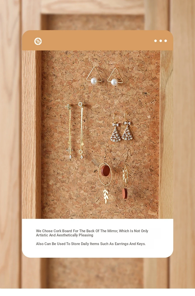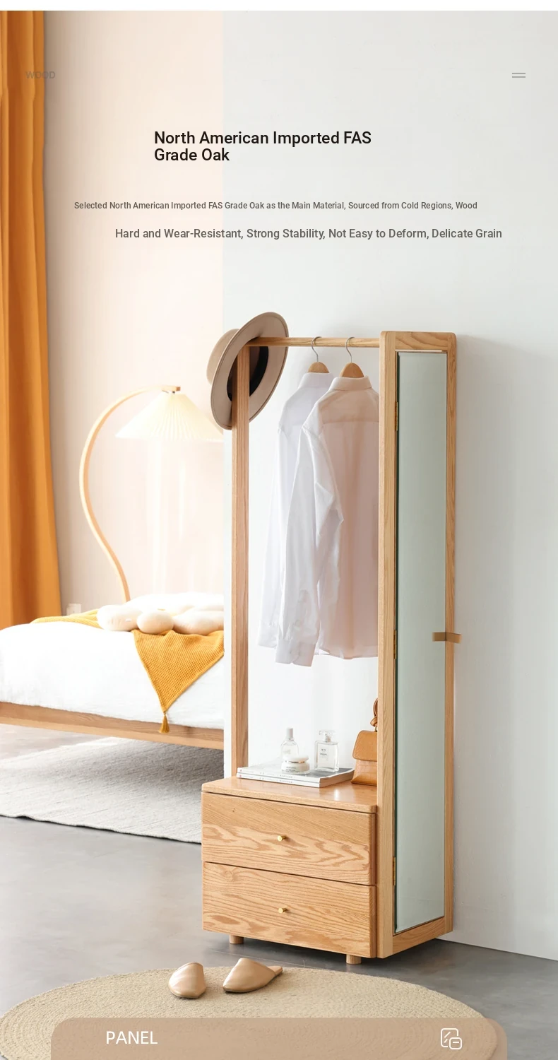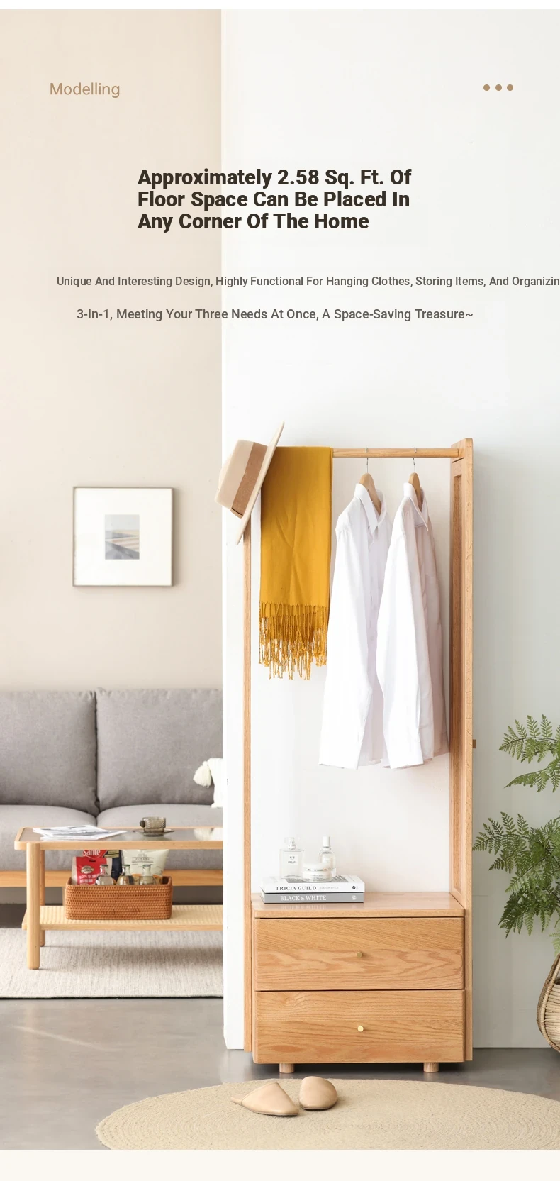 "Nordic Minimalist Solid Wood Coat Rack with Dressing Mirror - Compact Freestanding Clothes Hanger for Bedroom Use"