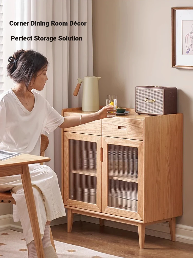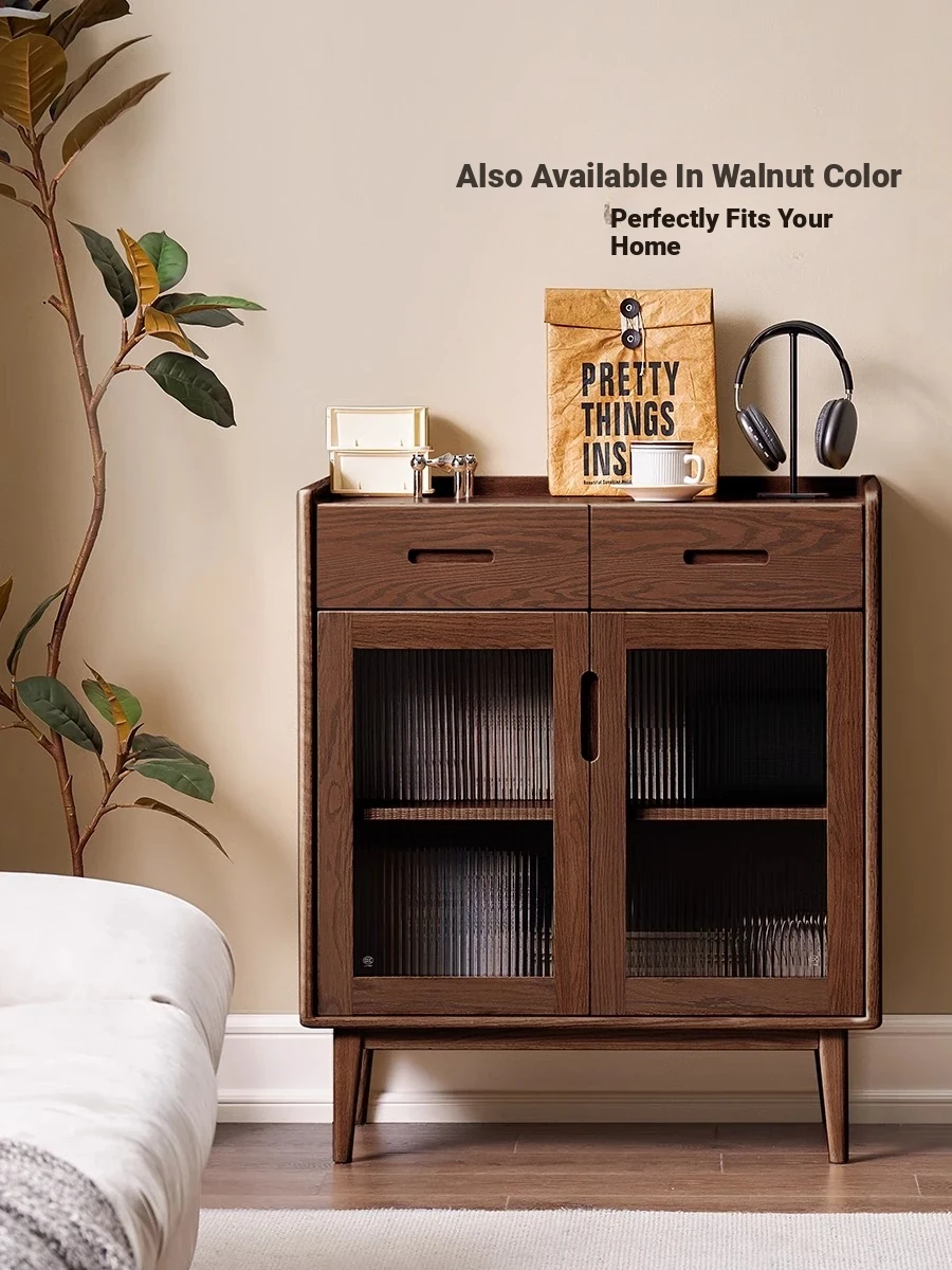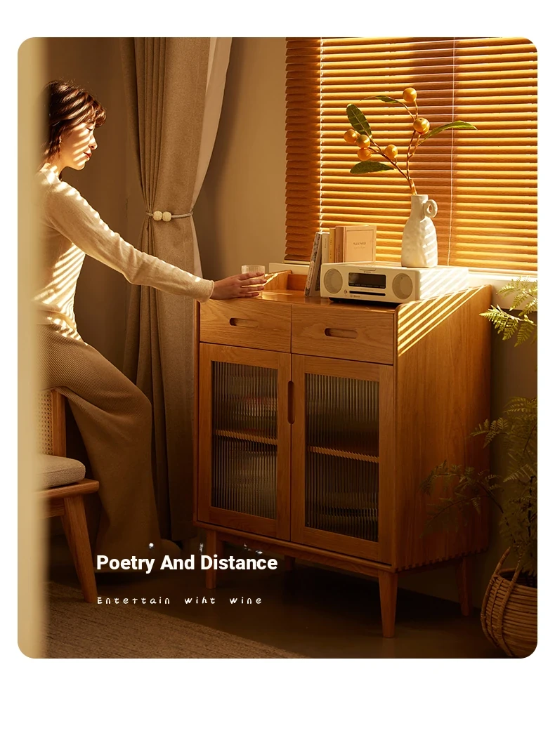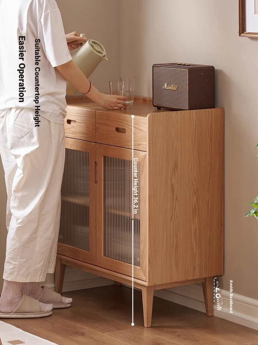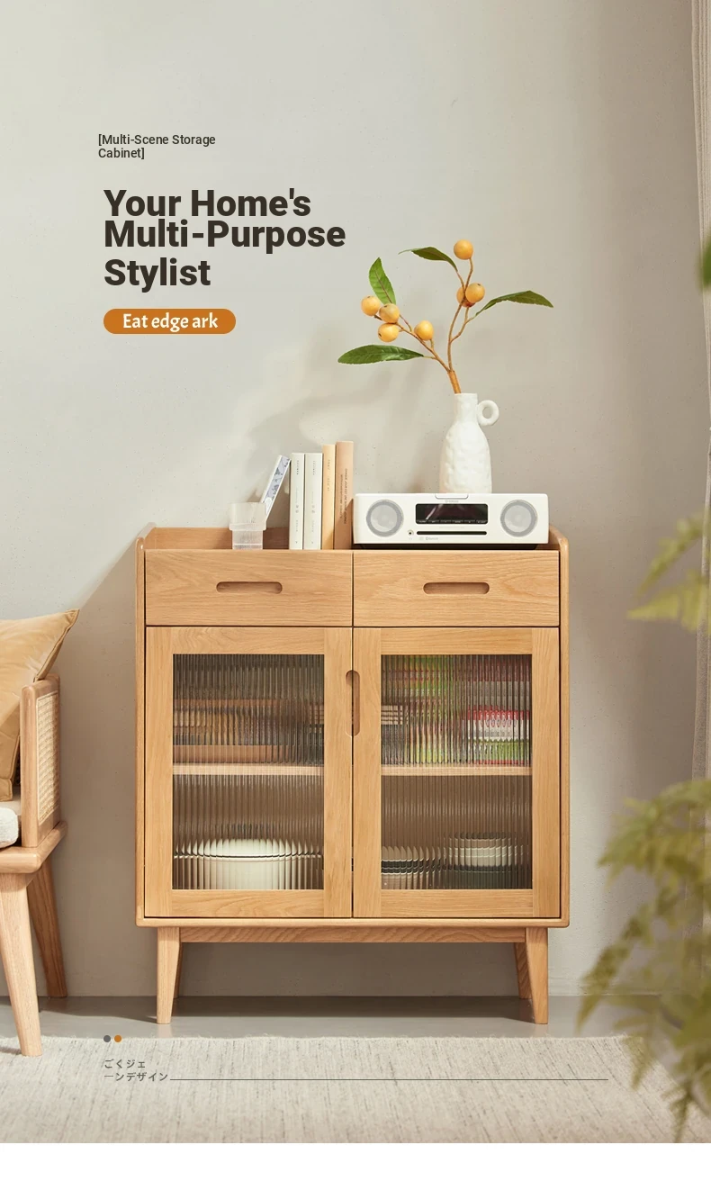 Nordic Minimalist Solid Wood Sideboard - Functional Oak Storage Cabinet for Living Room, Tea and Snacks Organizer, Stylish and Practical Design
