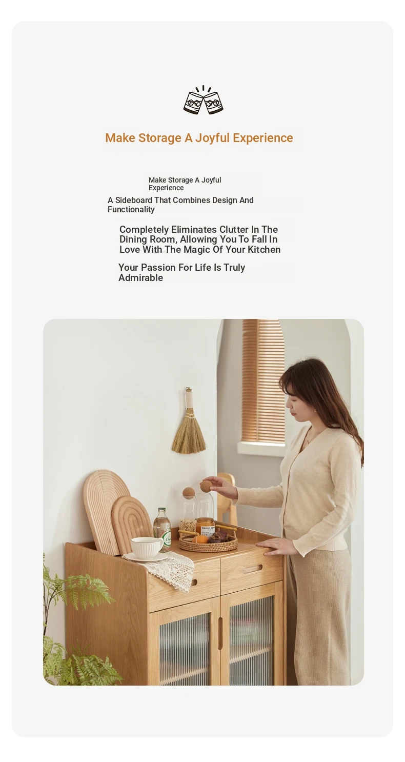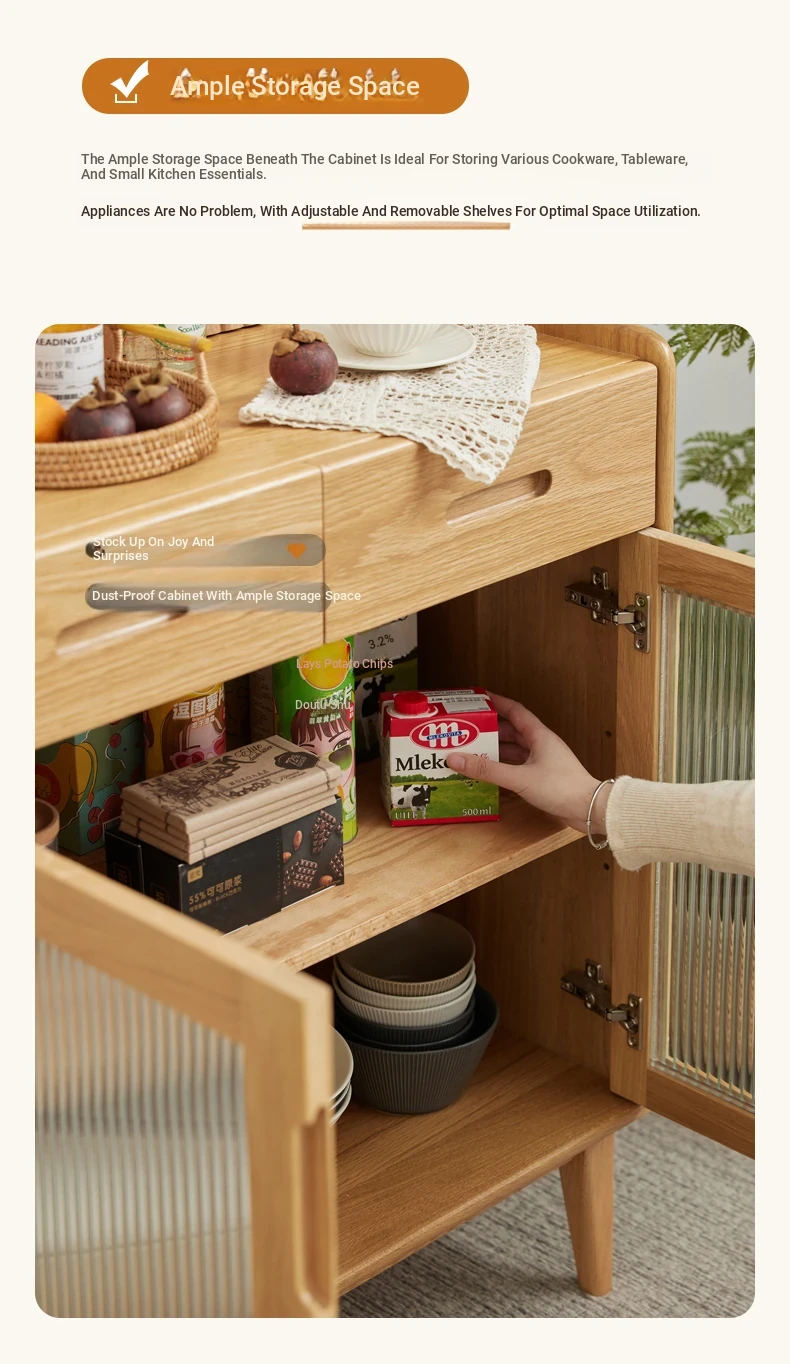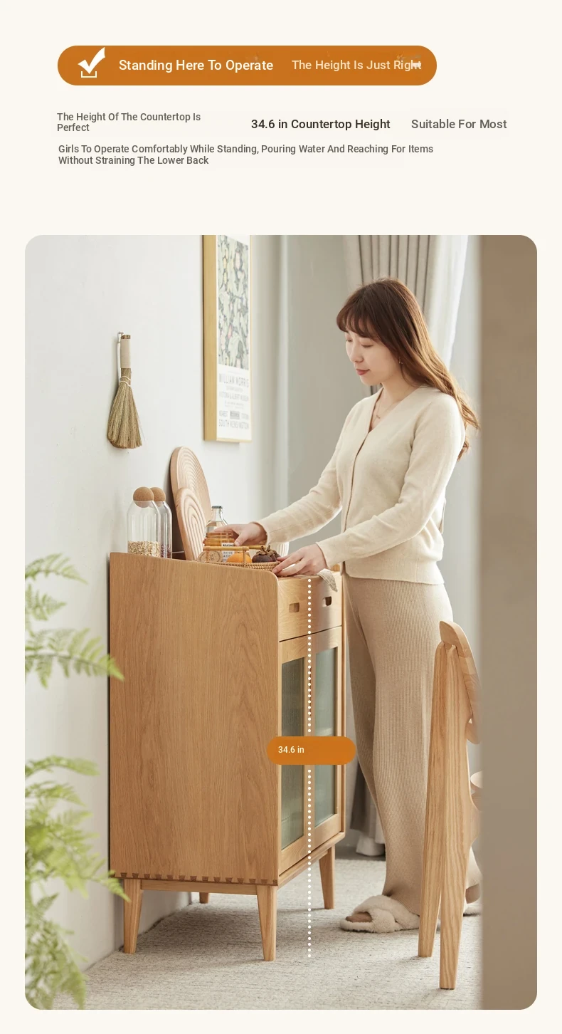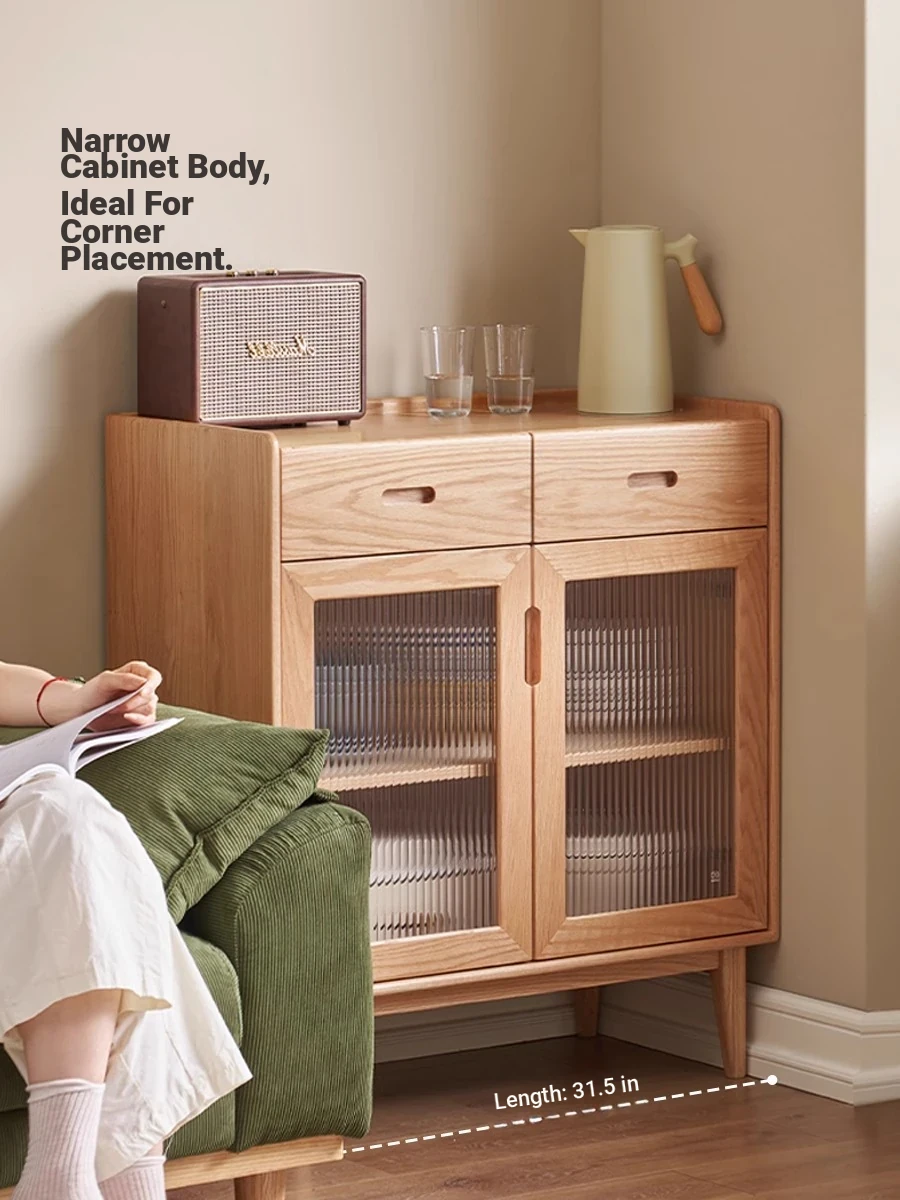 Nordic Minimalist Solid Wood Sideboard - Functional Oak Storage Cabinet for Living Room, Tea and Snacks Organizer, Stylish and Practical Design