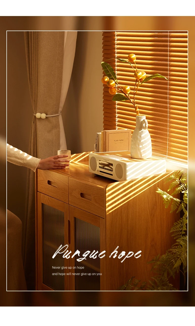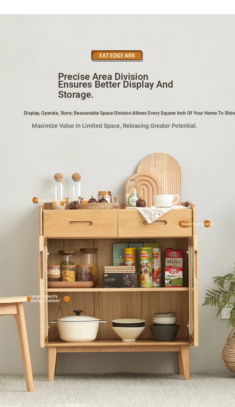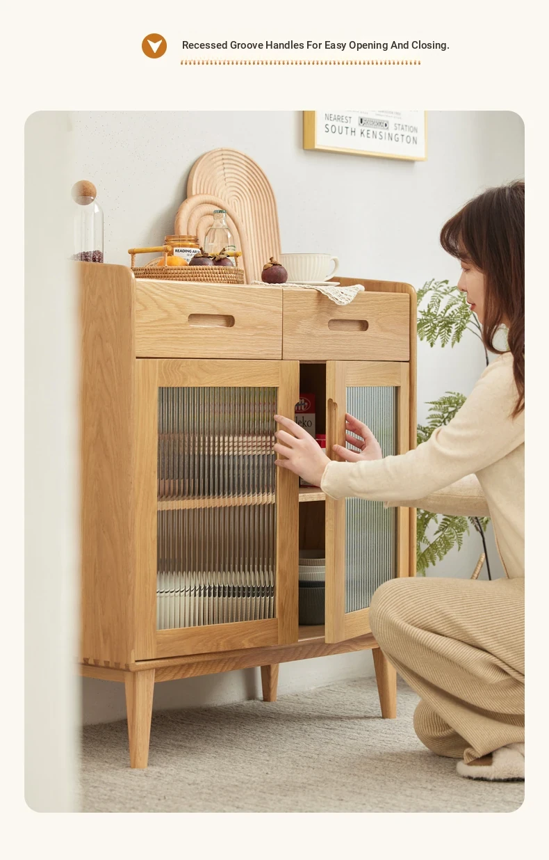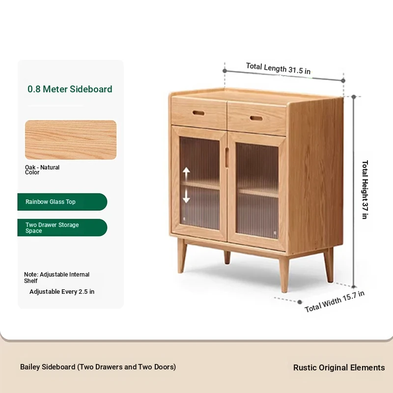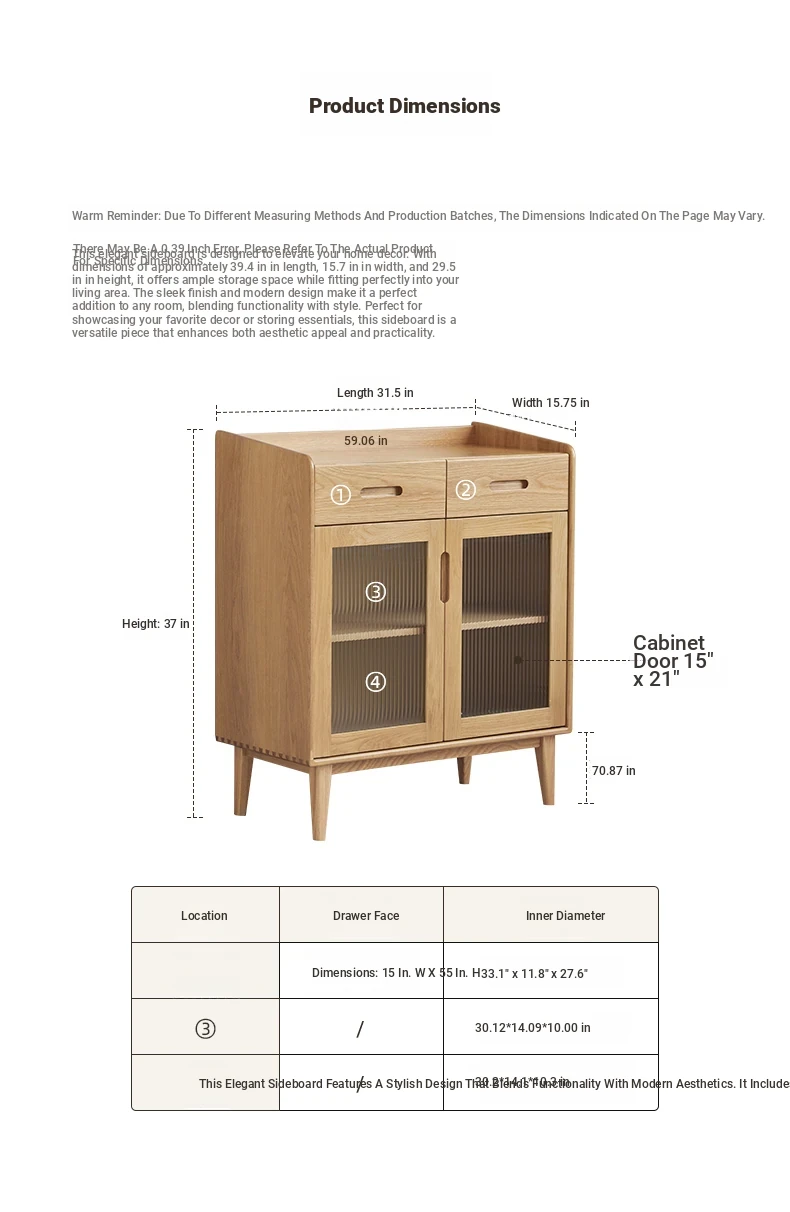 Nordic Minimalist Solid Wood Sideboard - Functional Oak Storage Cabinet for Living Room, Tea and Snacks Organizer, Stylish and Practical Design