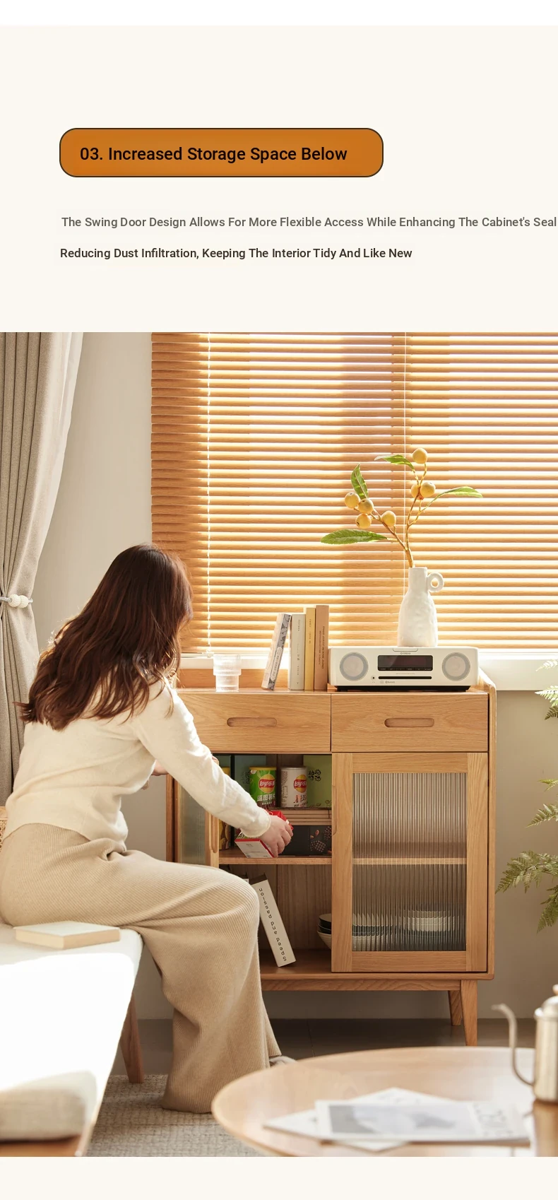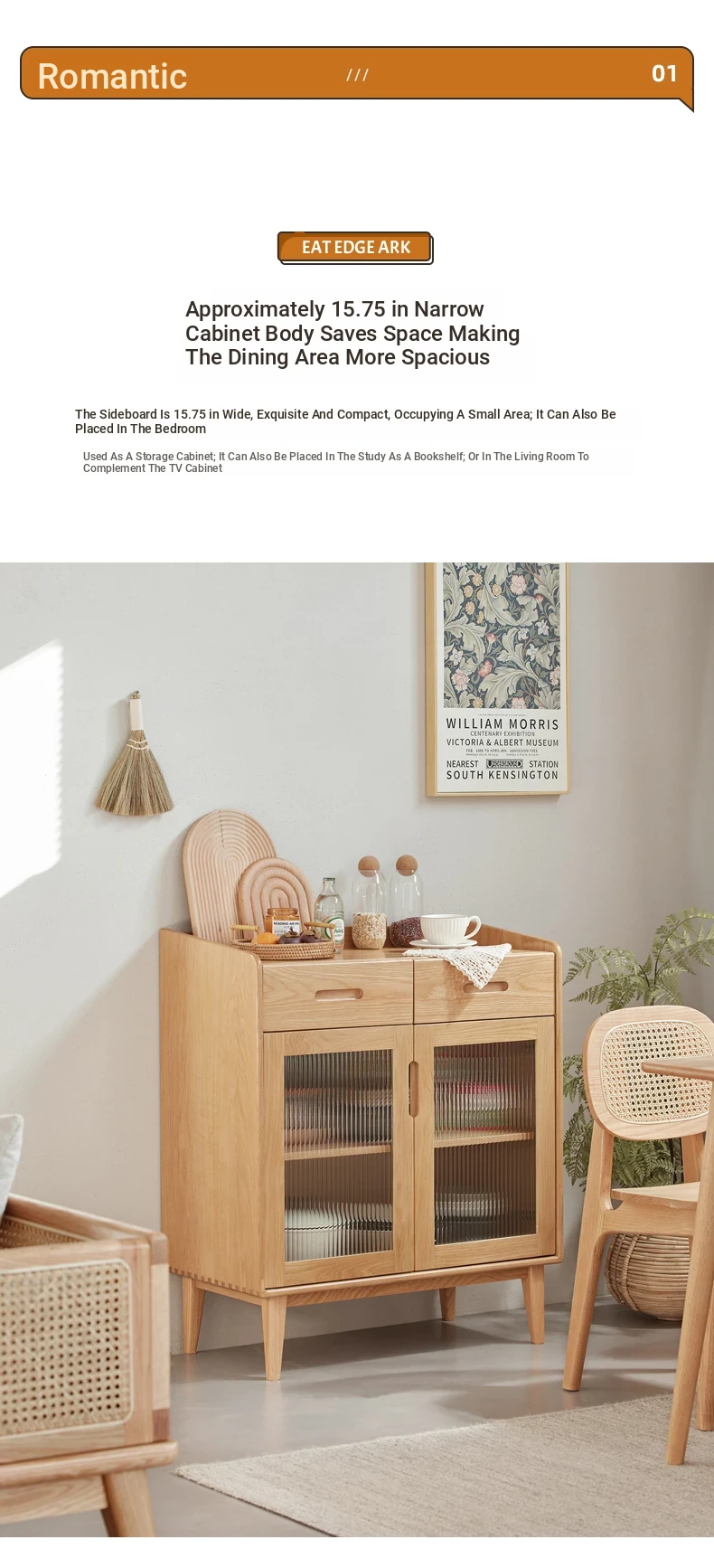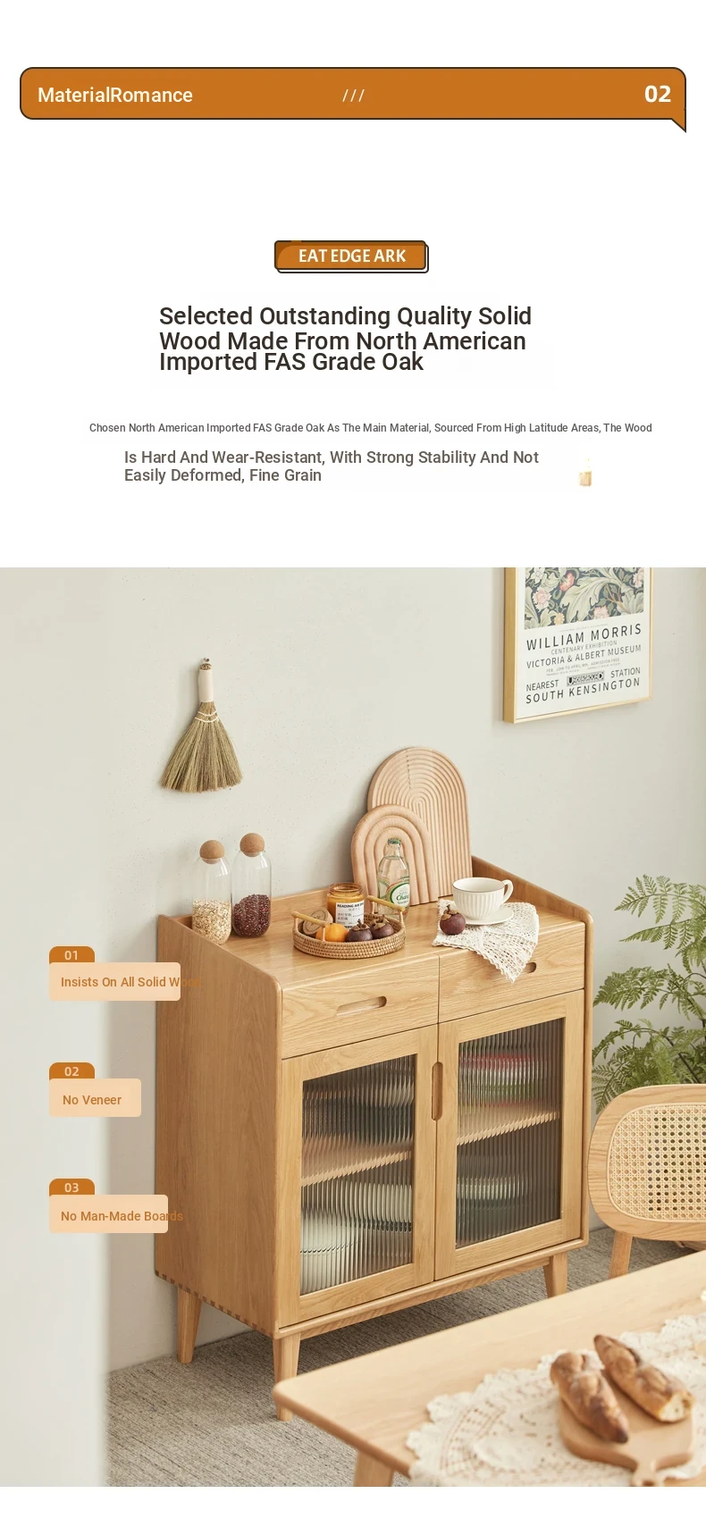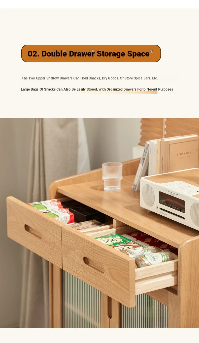 Nordic Minimalist Solid Wood Sideboard - Functional Oak Storage Cabinet for Living Room, Tea and Snacks Organizer, Stylish and Practical Design