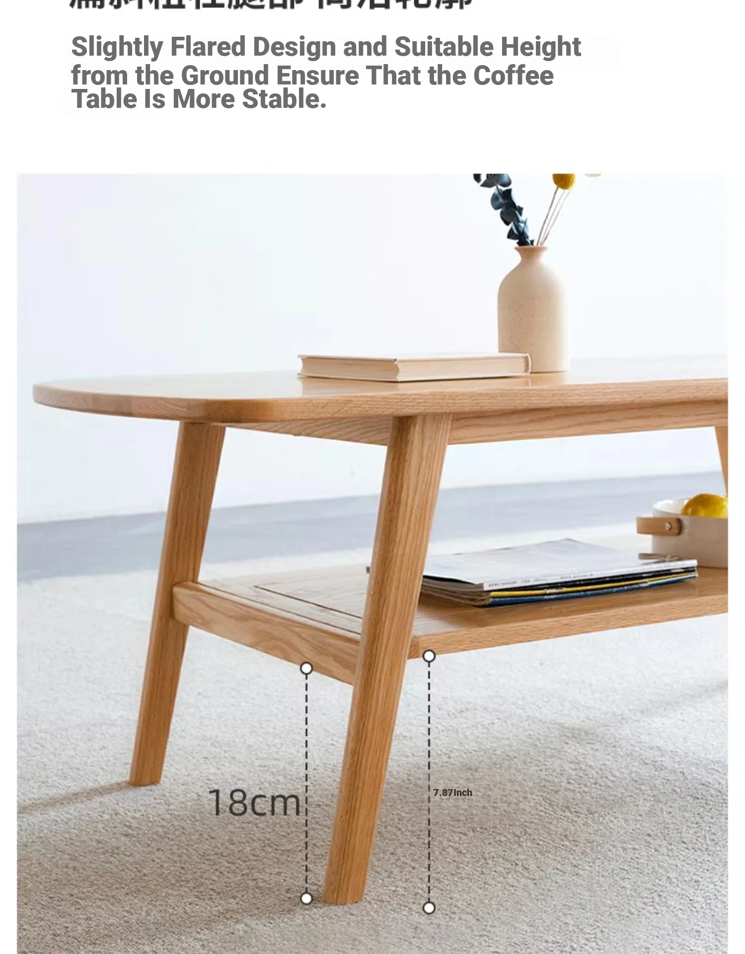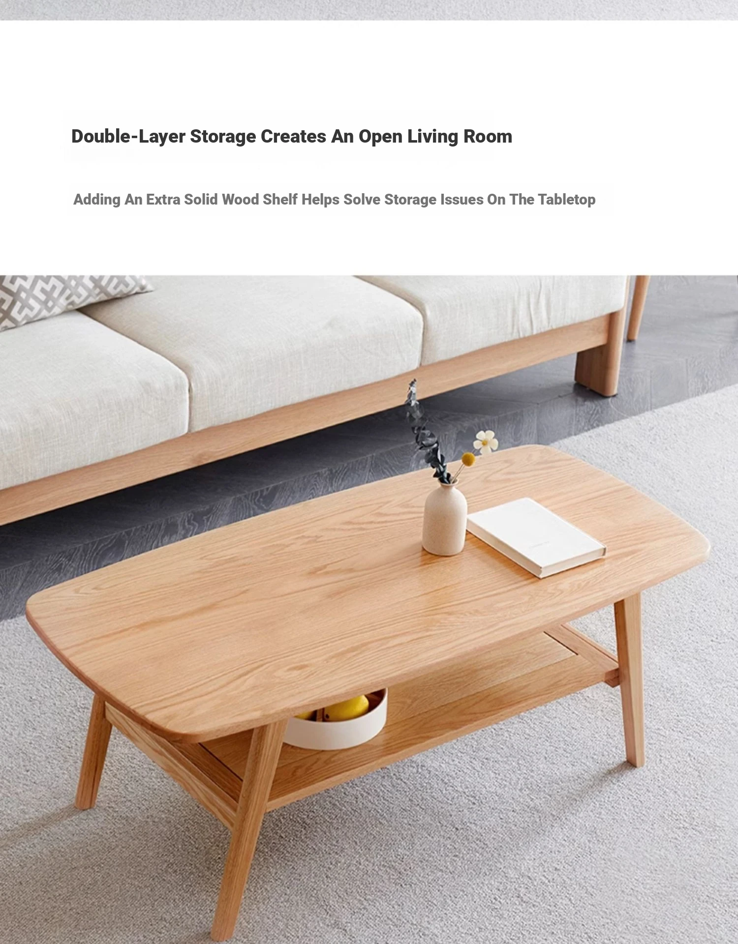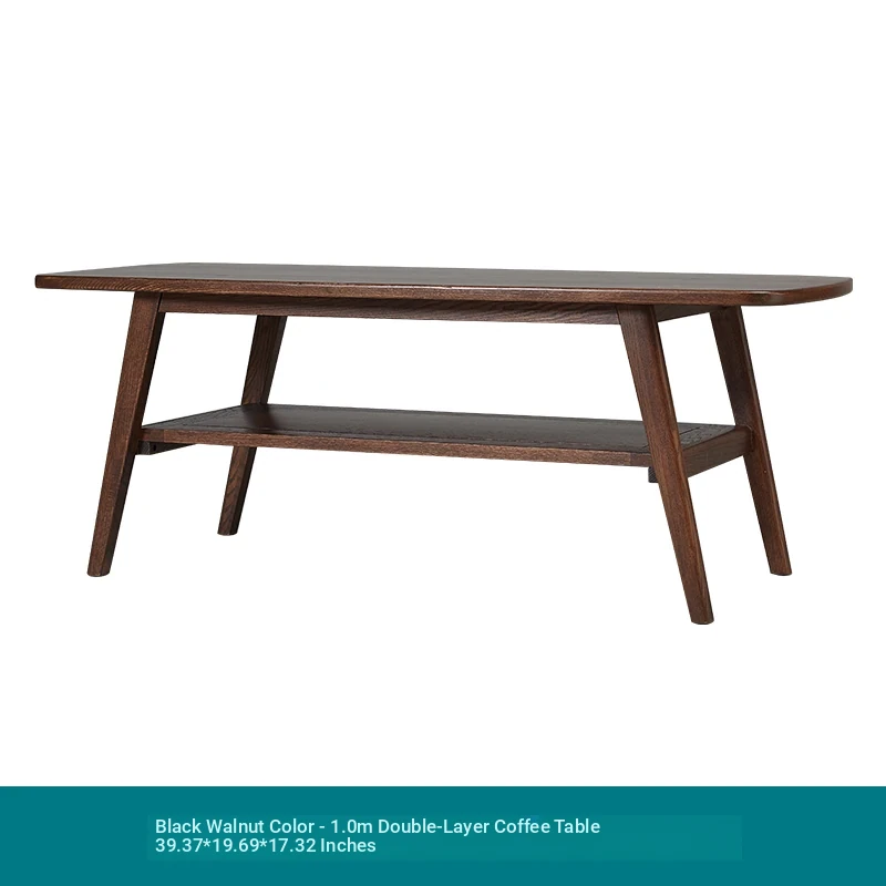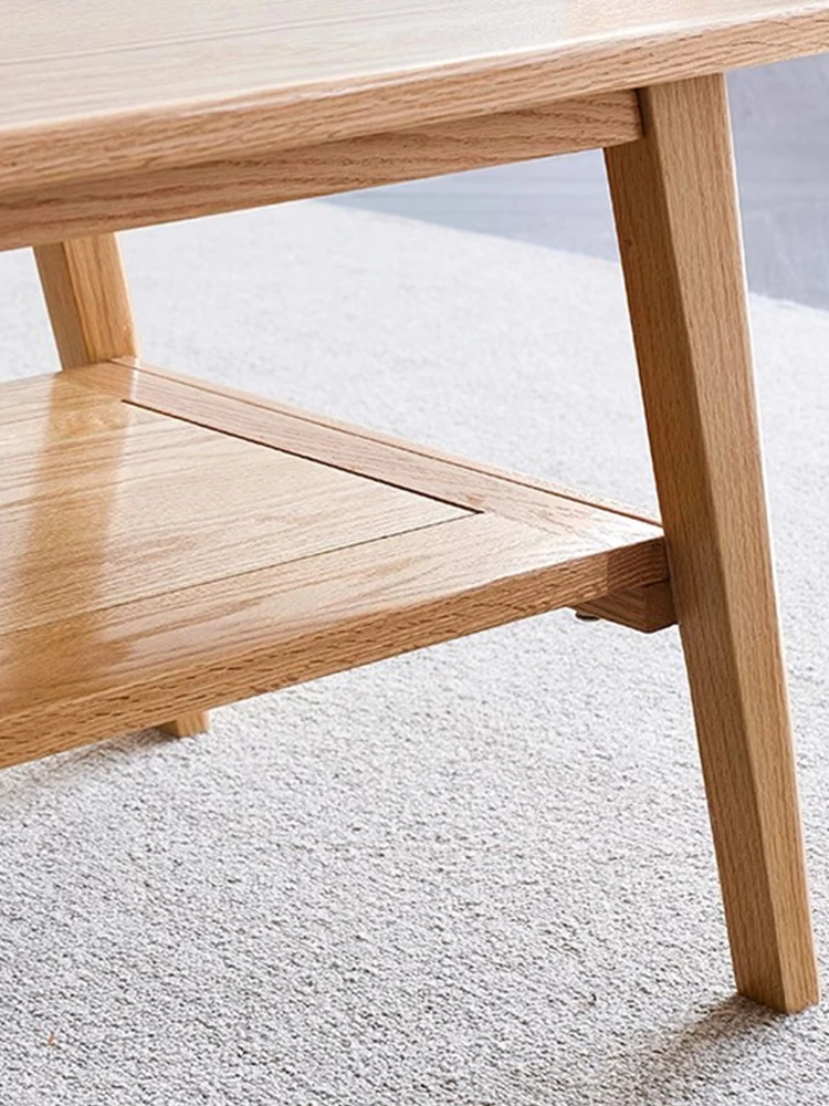 "Nordic Minimalist Solid Wood Small Coffee Table - Double-Layer Oak Tea Table for Living Room & Small Spaces - Perfect for Cozy Homes"