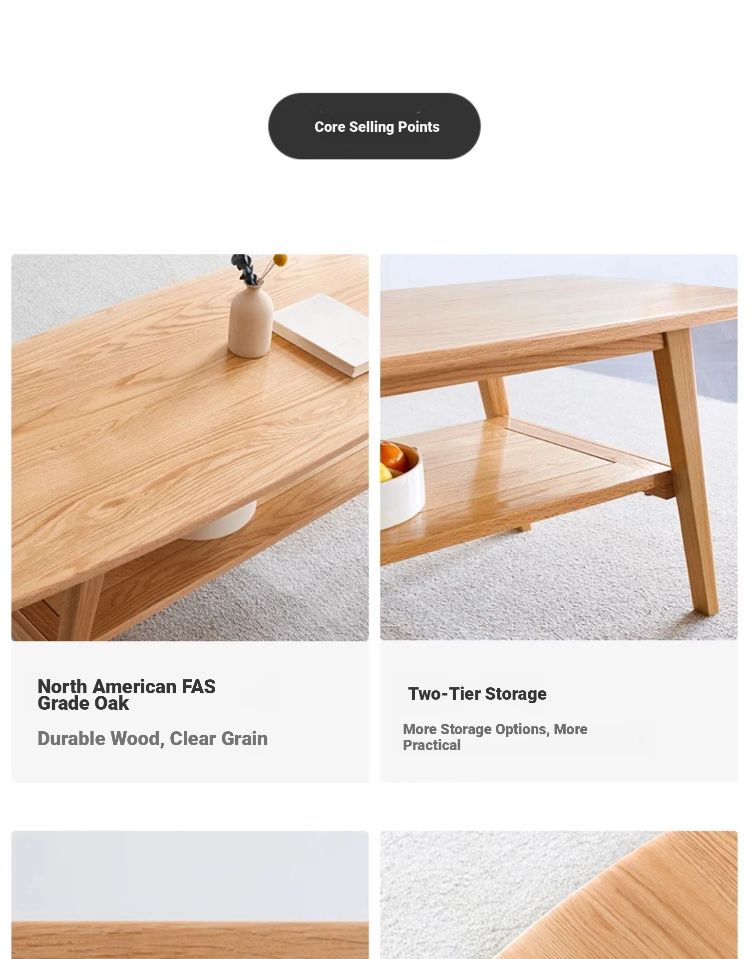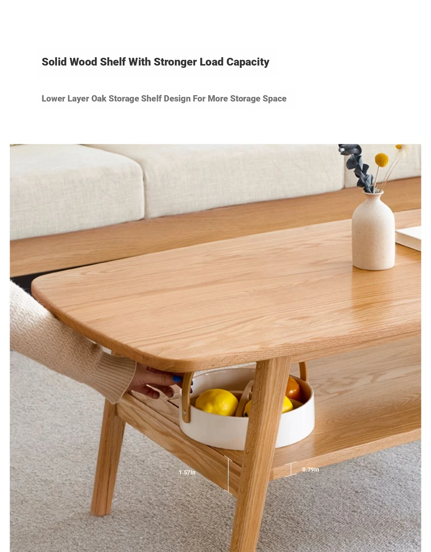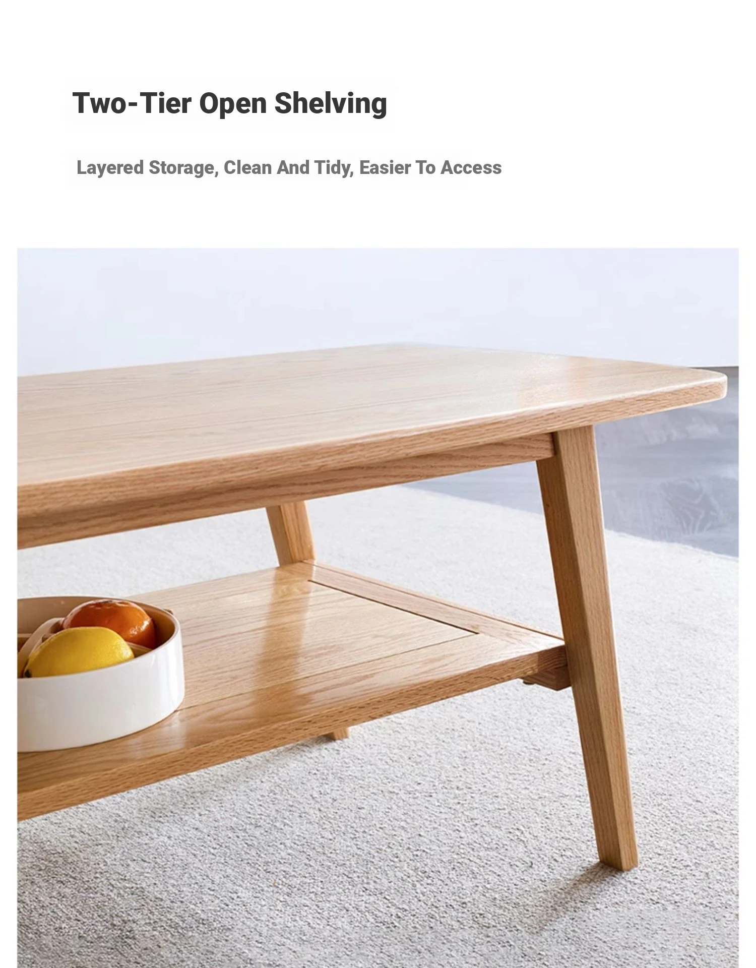"Nordic Minimalist Solid Wood Small Coffee Table - Double-Layer Oak Tea Table for Living Room & Small Spaces - Perfect for Cozy Homes"