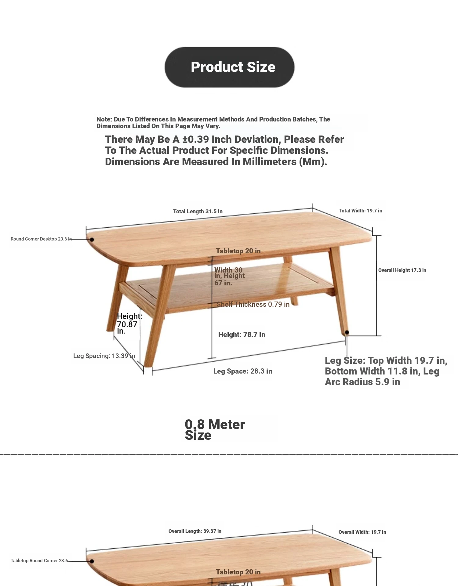 Log color 39.37 in double coffee table 39.37in*19.69in*17.32in