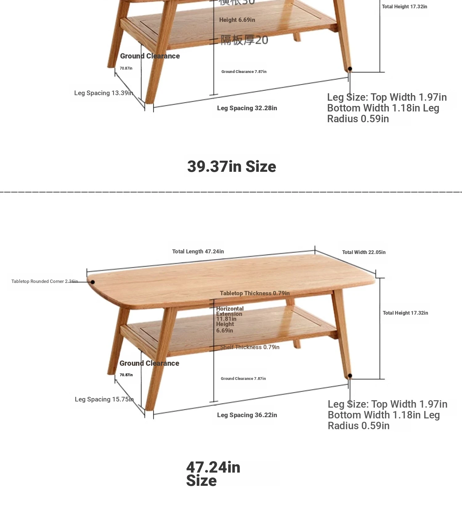 Log color 47.24 in double tea table 47.24in*22.05in*17.32in