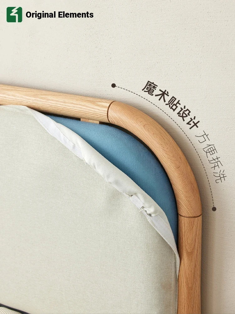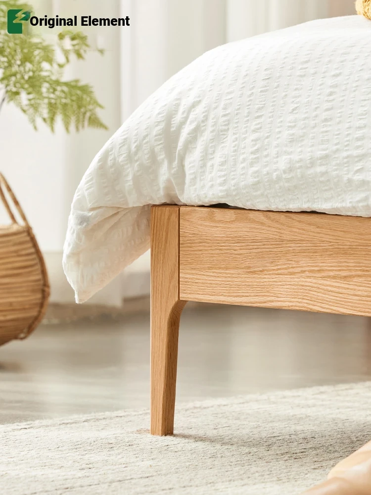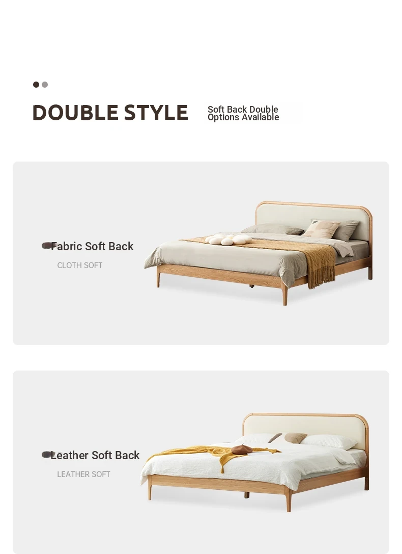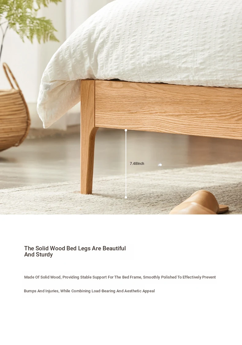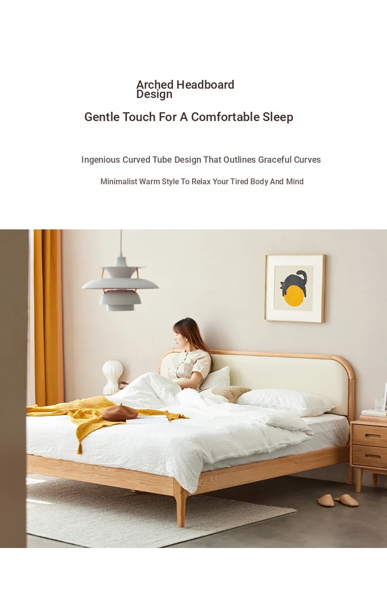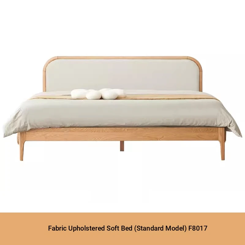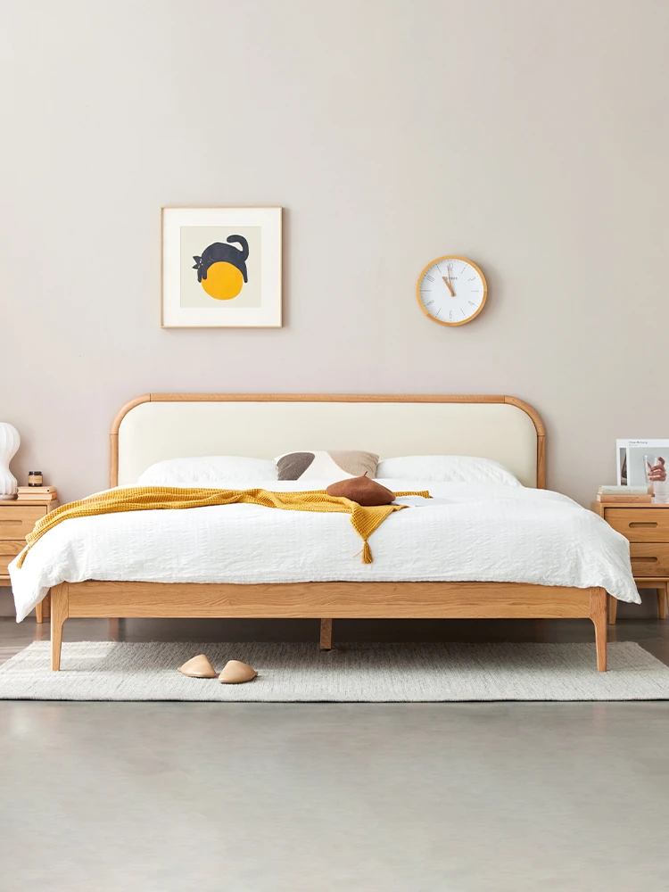 Nordic Solid Wood Bed – Modern Minimalist Double Bed in Natural Finish, 1.5m/1.8m Oak Main Bedroom Bed with Cream Soft Pack – Perfect for Stylish and Comfortable Living Spaces!
