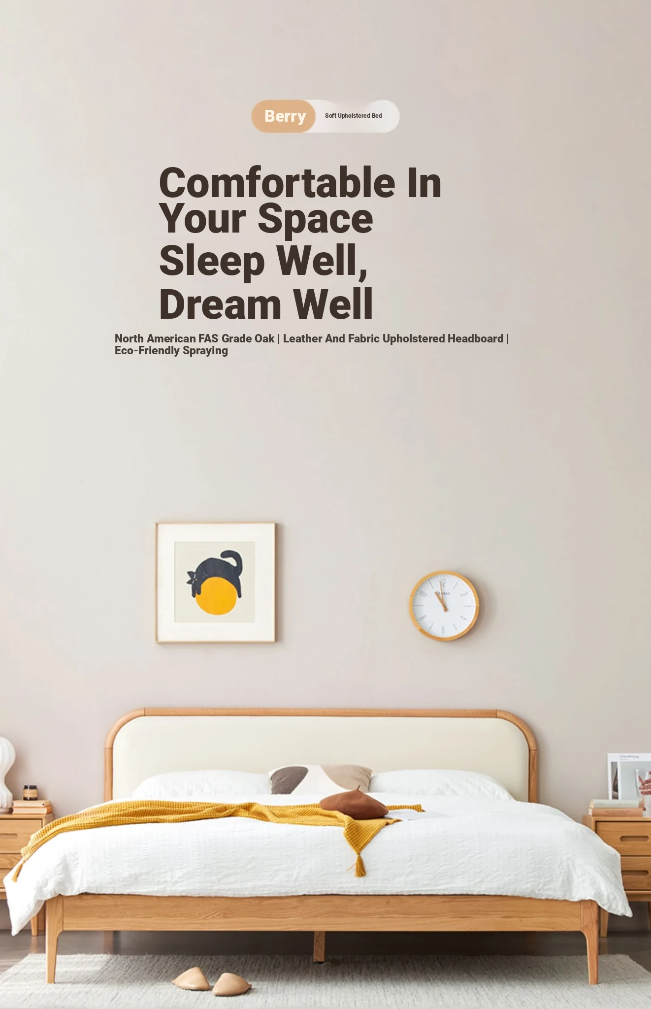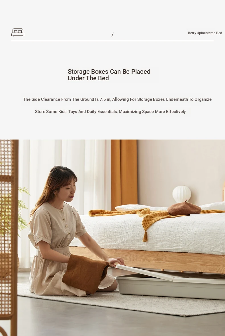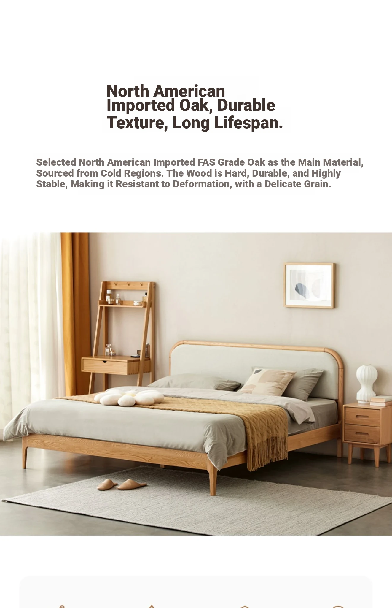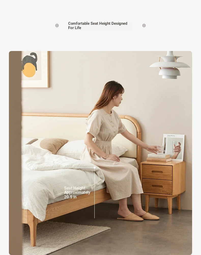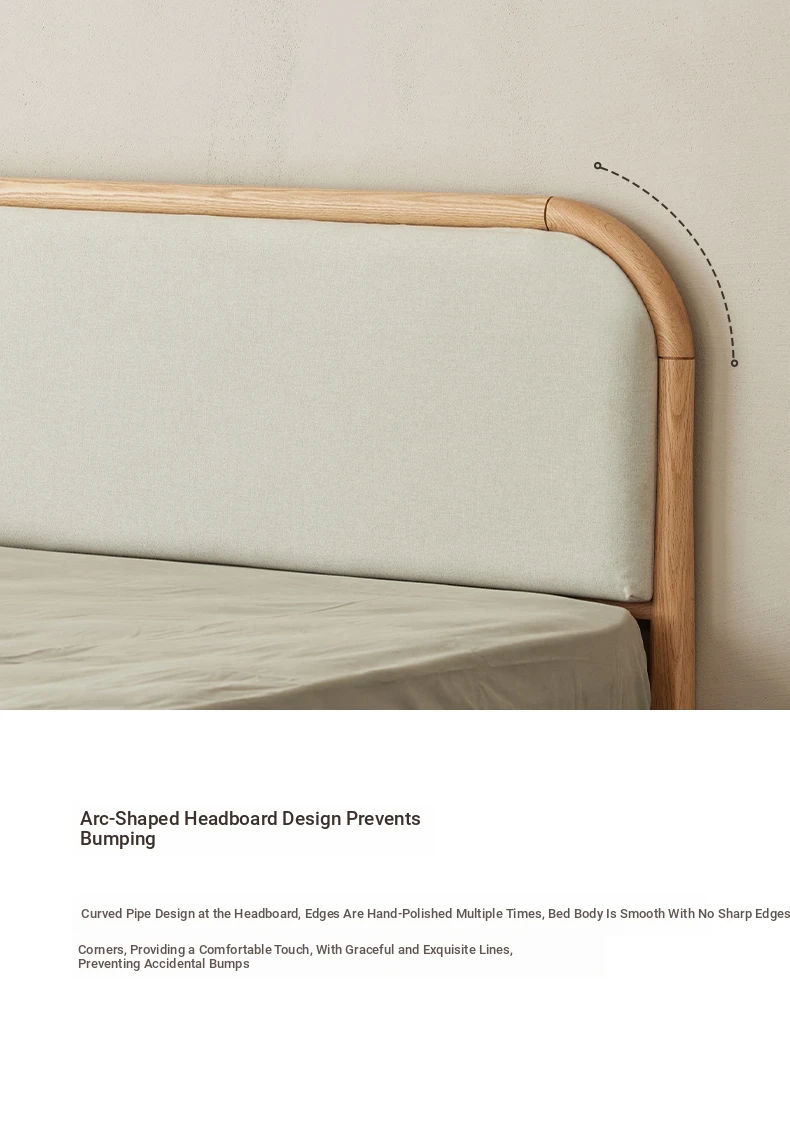 Nordic Solid Wood Bed – Modern Minimalist Double Bed in Natural Finish, 1.5m/1.8m Oak Main Bedroom Bed with Cream Soft Pack – Perfect for Stylish and Comfortable Living Spaces!