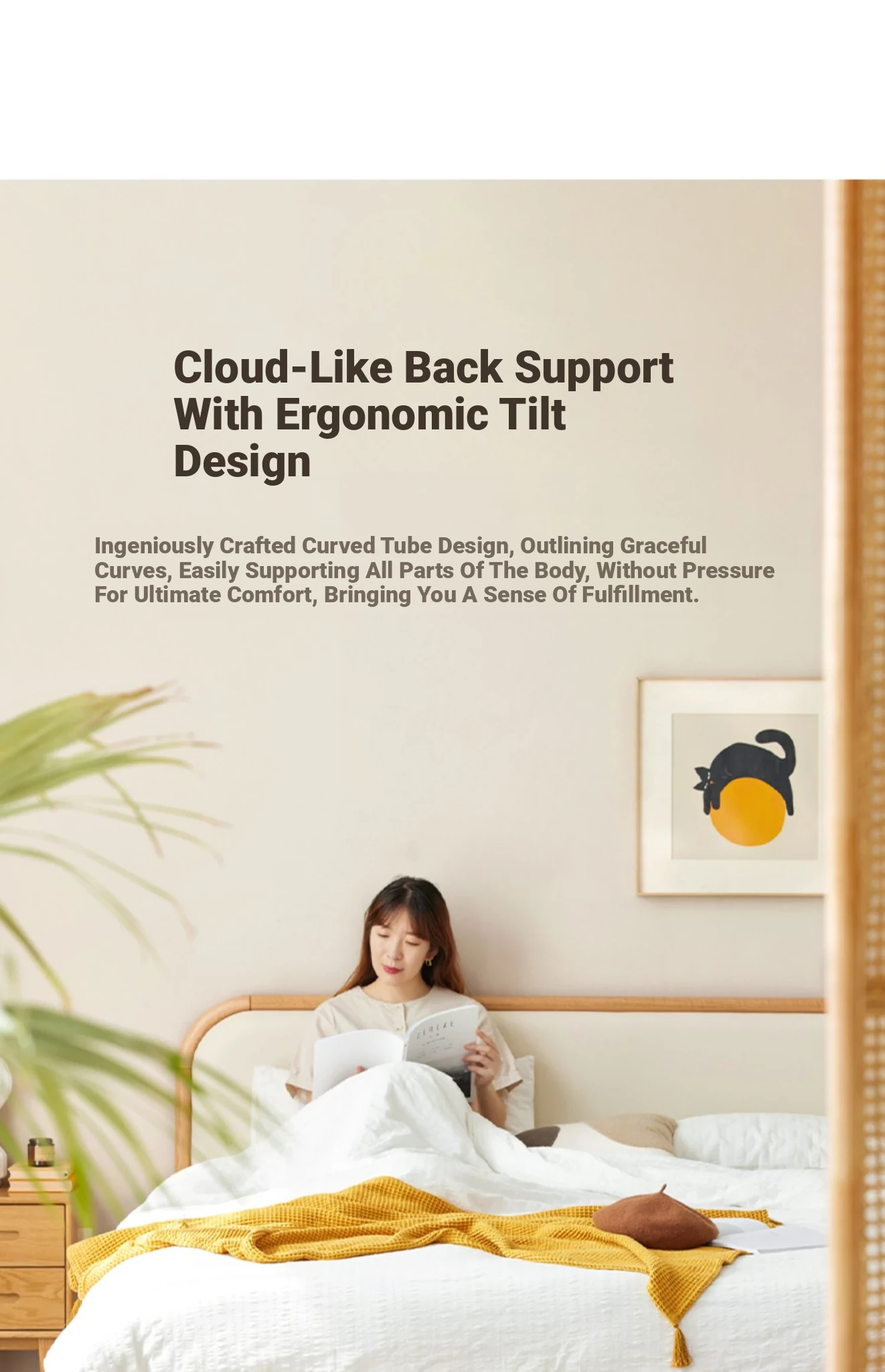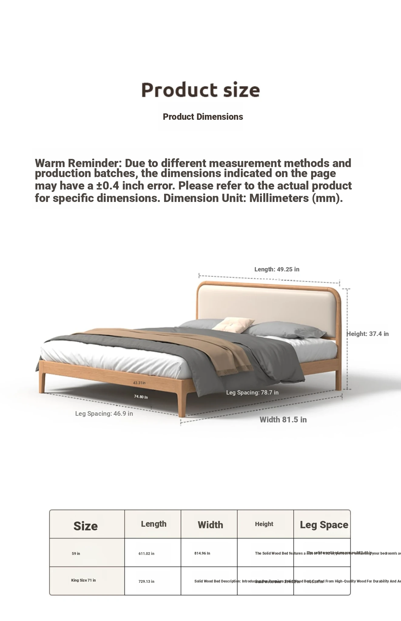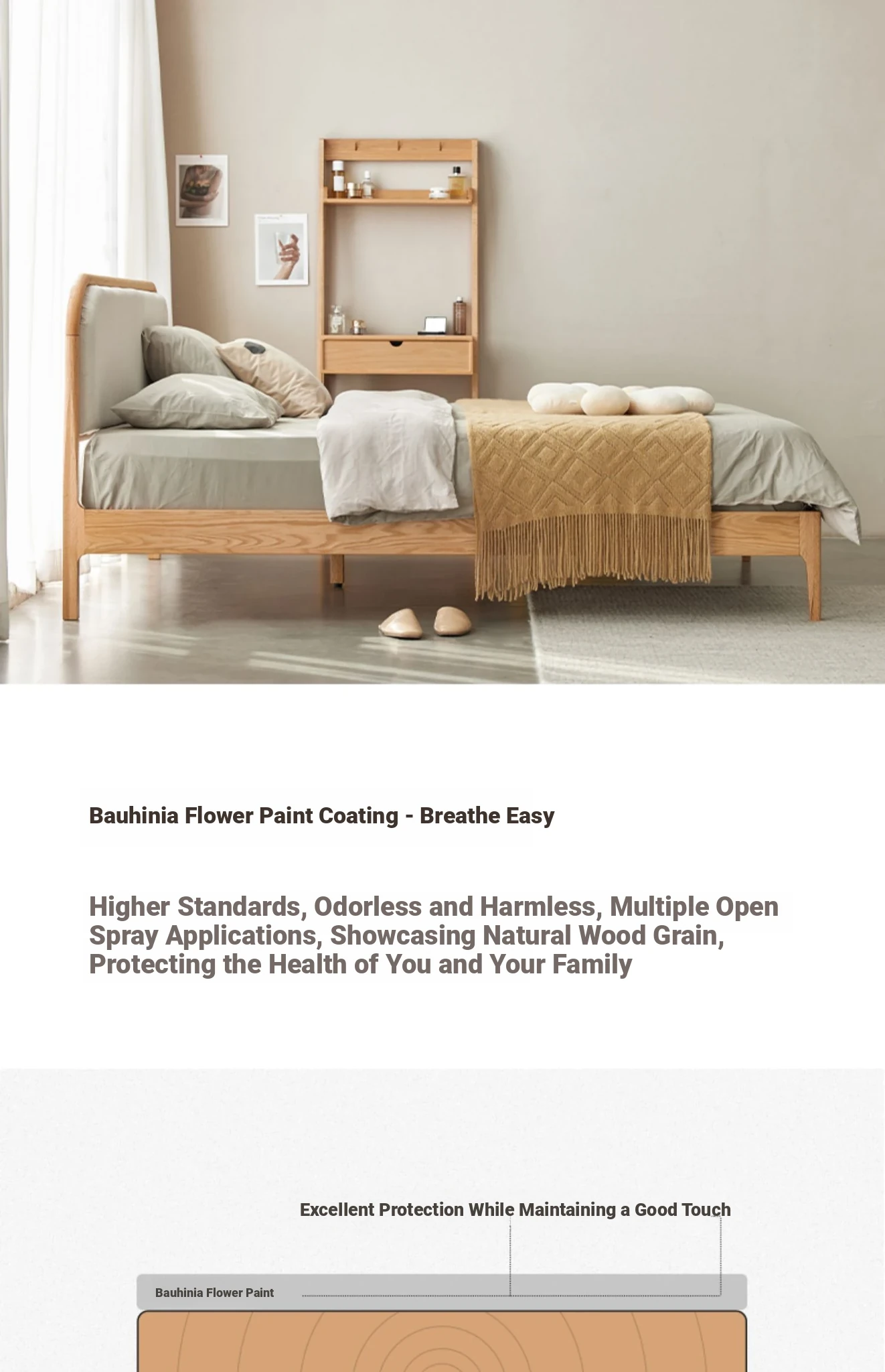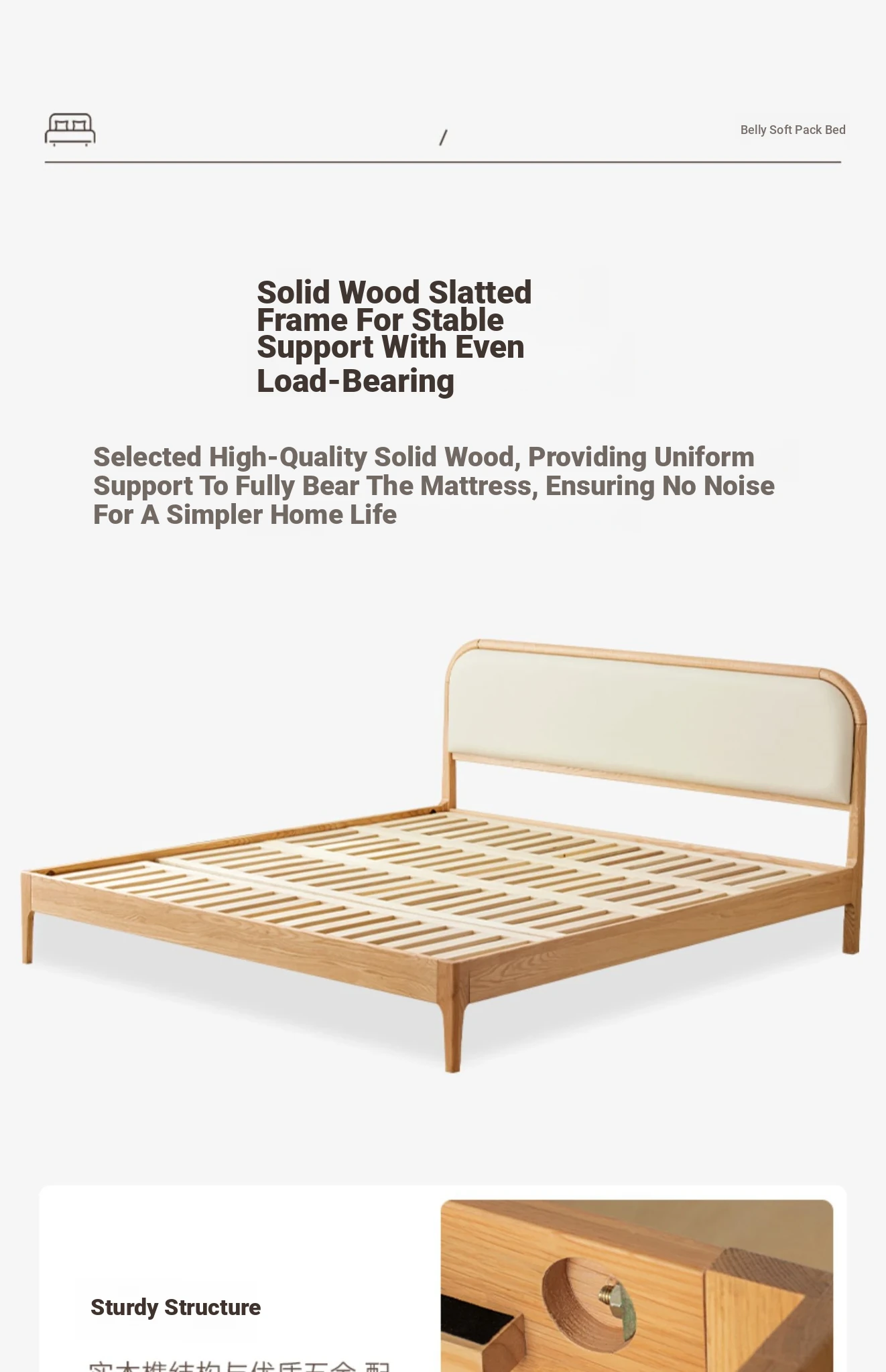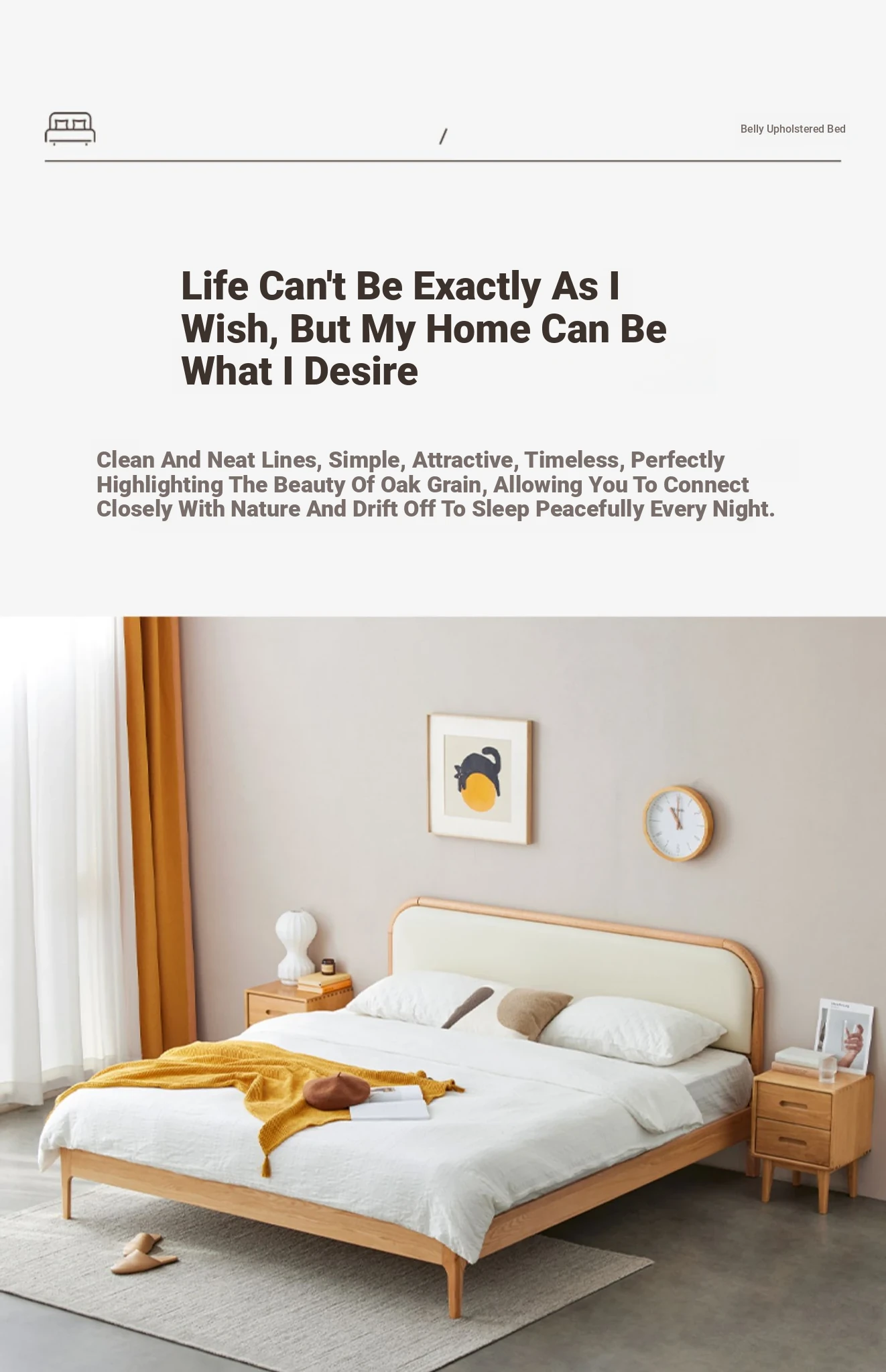 Nordic Solid Wood Bed – Modern Minimalist Double Bed in Natural Finish, 1.5m/1.8m Oak Main Bedroom Bed with Cream Soft Pack – Perfect for Stylish and Comfortable Living Spaces!