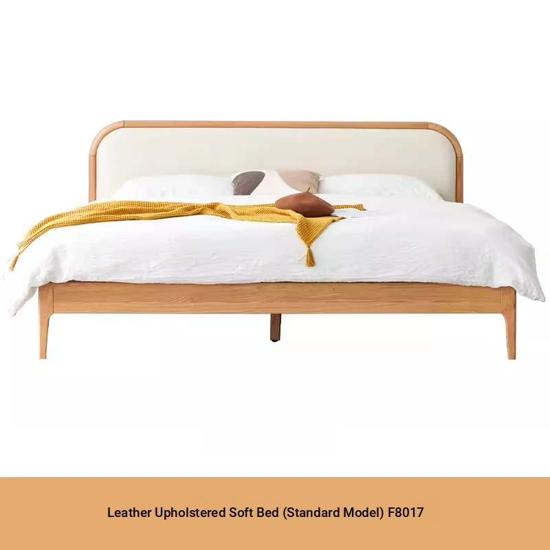 Leather Oak Bed (Standard)(F8017)+8.66in Sleeping Mattress (WE003)