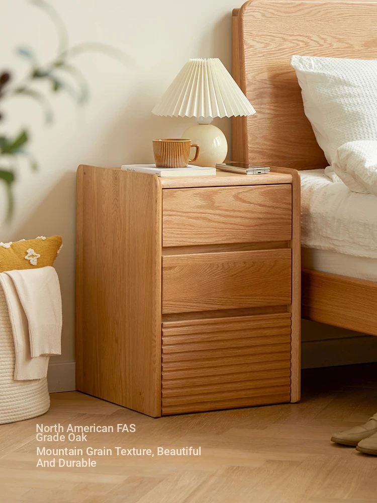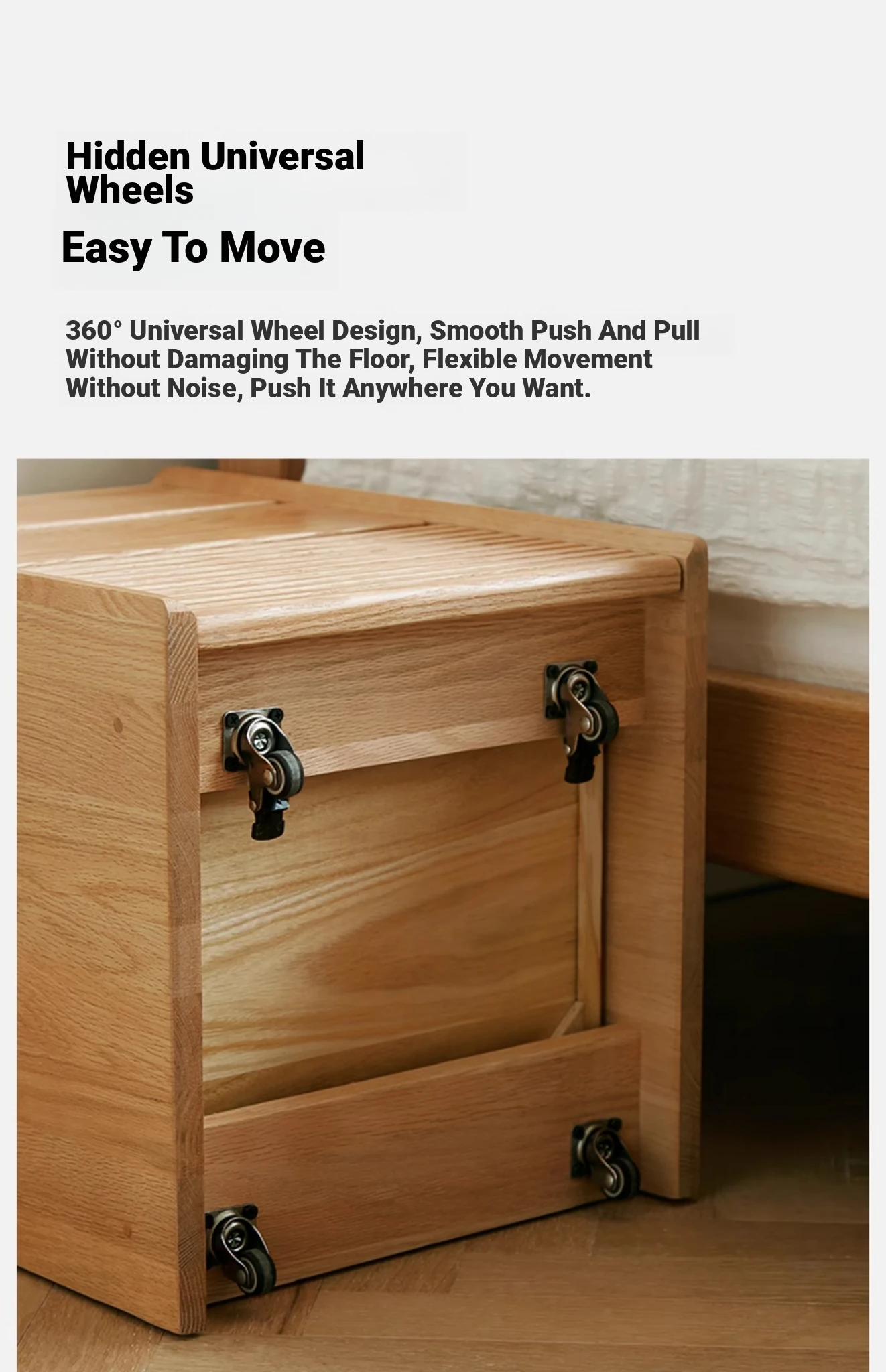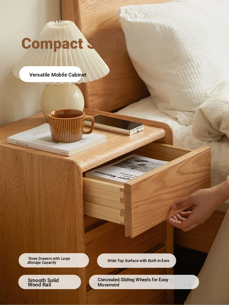 Nordic Solid Wood Bedside Table with Movable Storage Box – Compact Oak Multi-Layer Storage Cabinet for Bedroom Nightstand. Perfect for Organizing Your Space!
