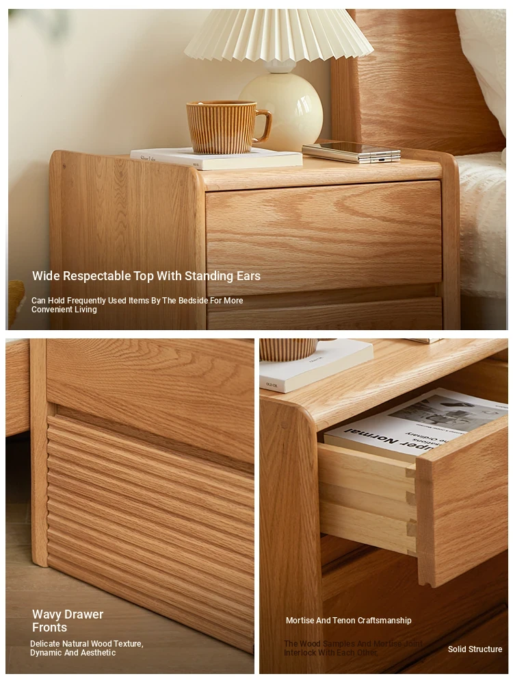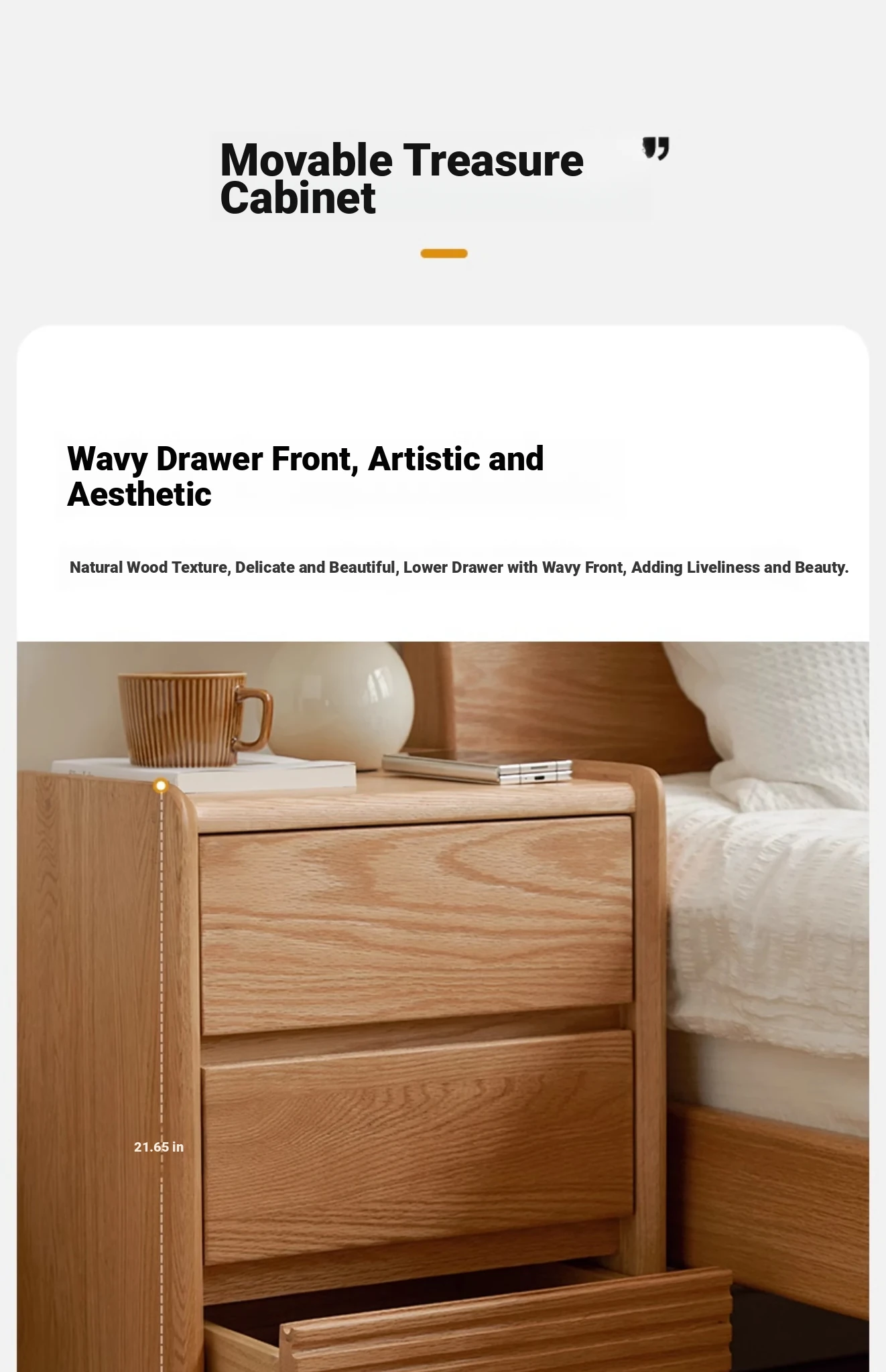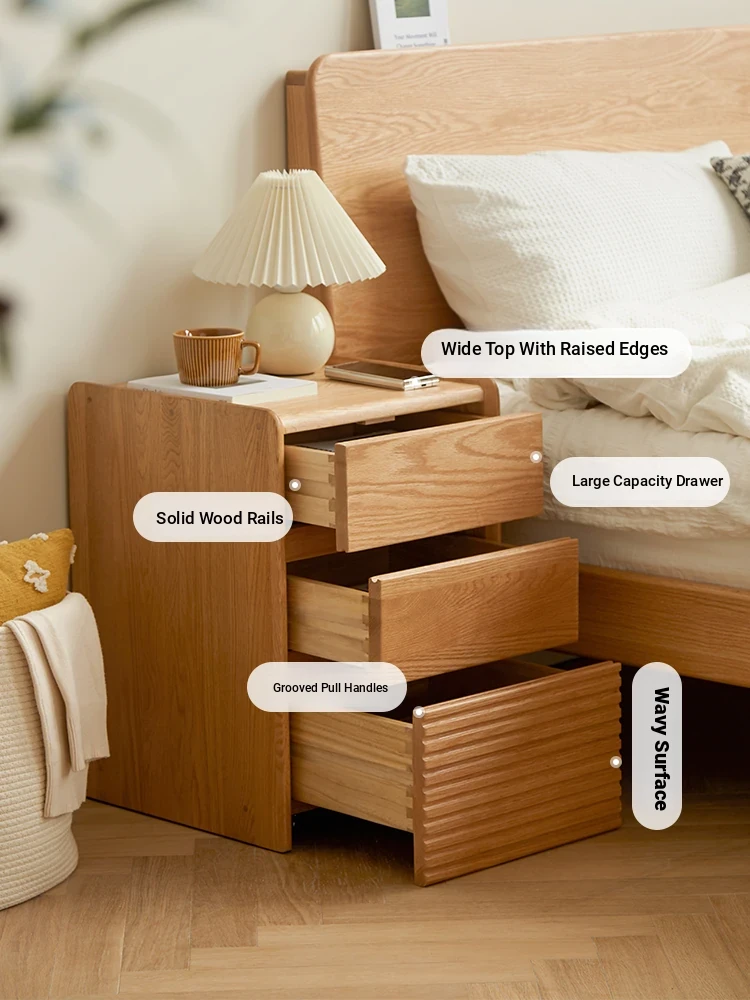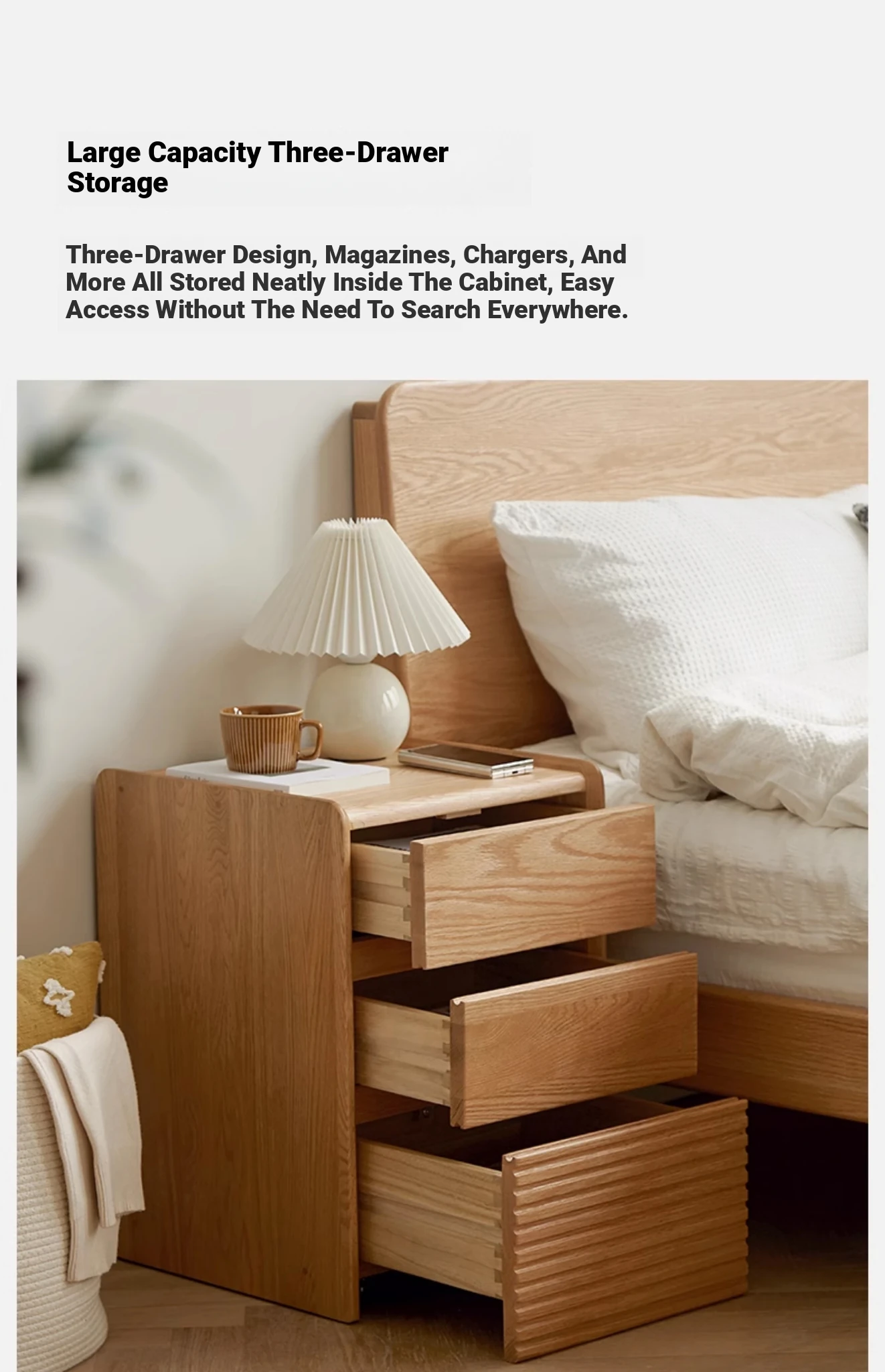 Nordic Solid Wood Bedside Table with Movable Storage Box – Compact Oak Multi-Layer Storage Cabinet for Bedroom Nightstand. Perfect for Organizing Your Space!