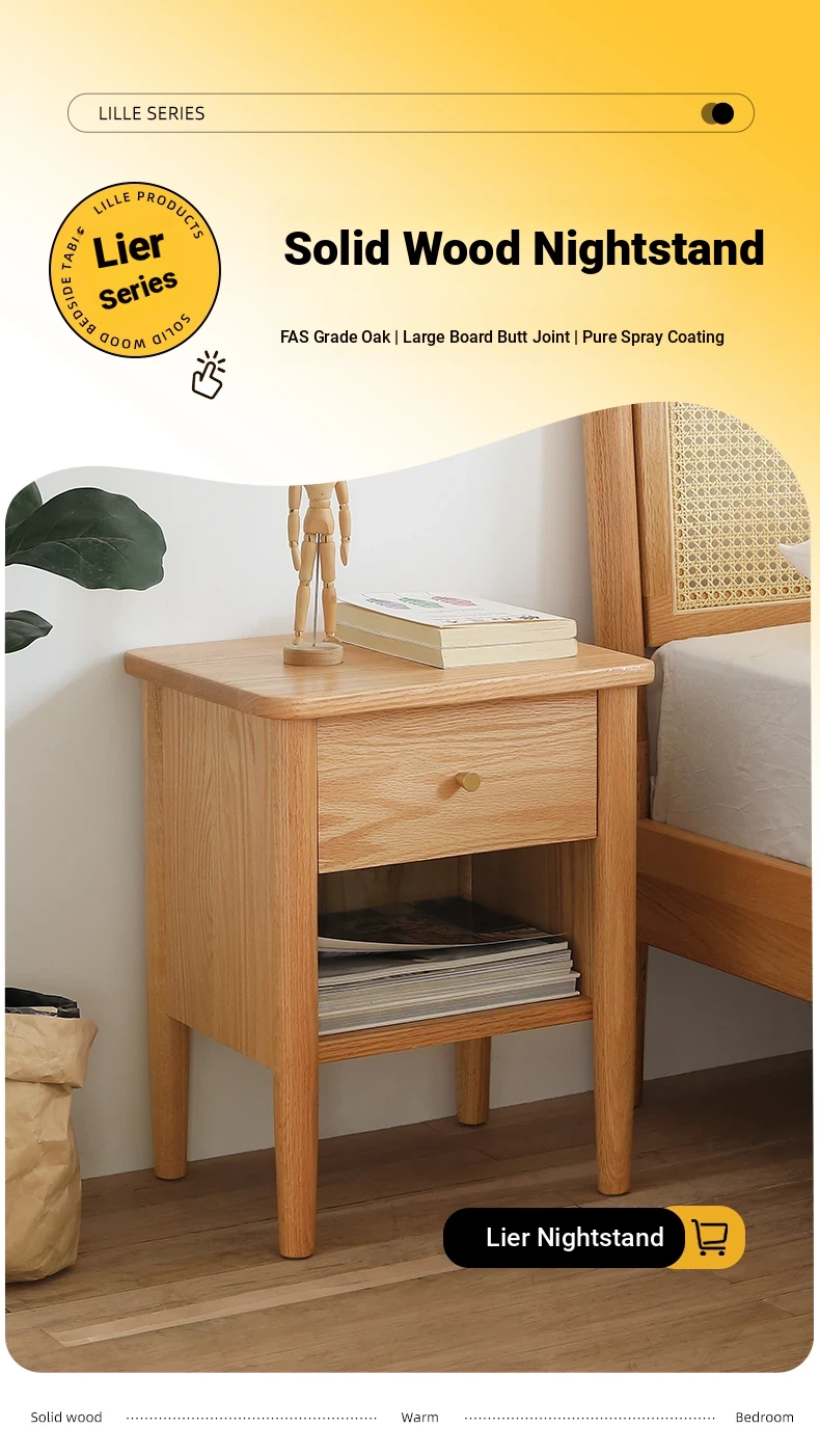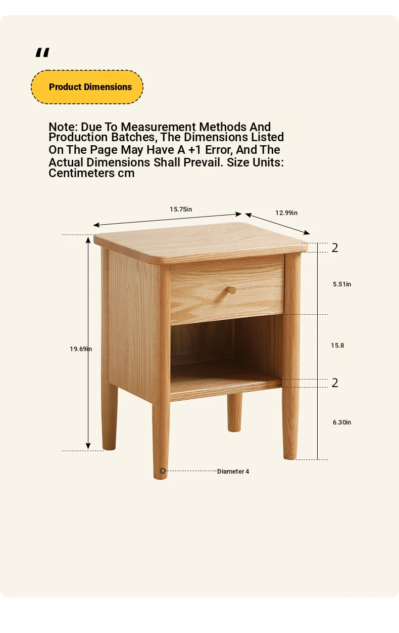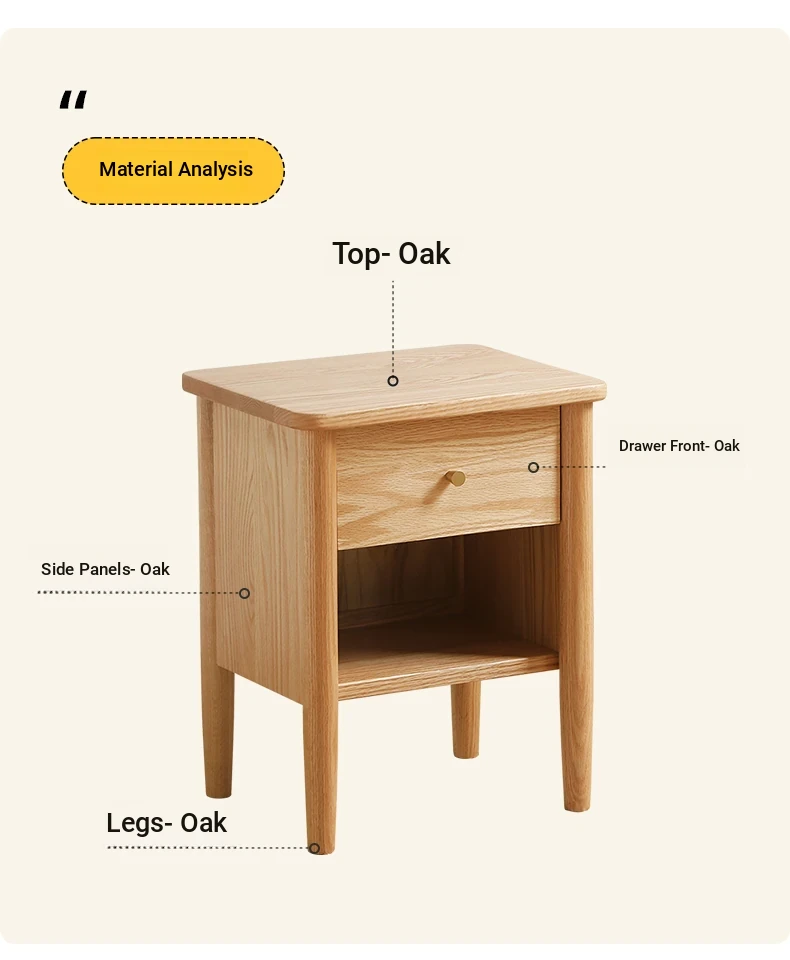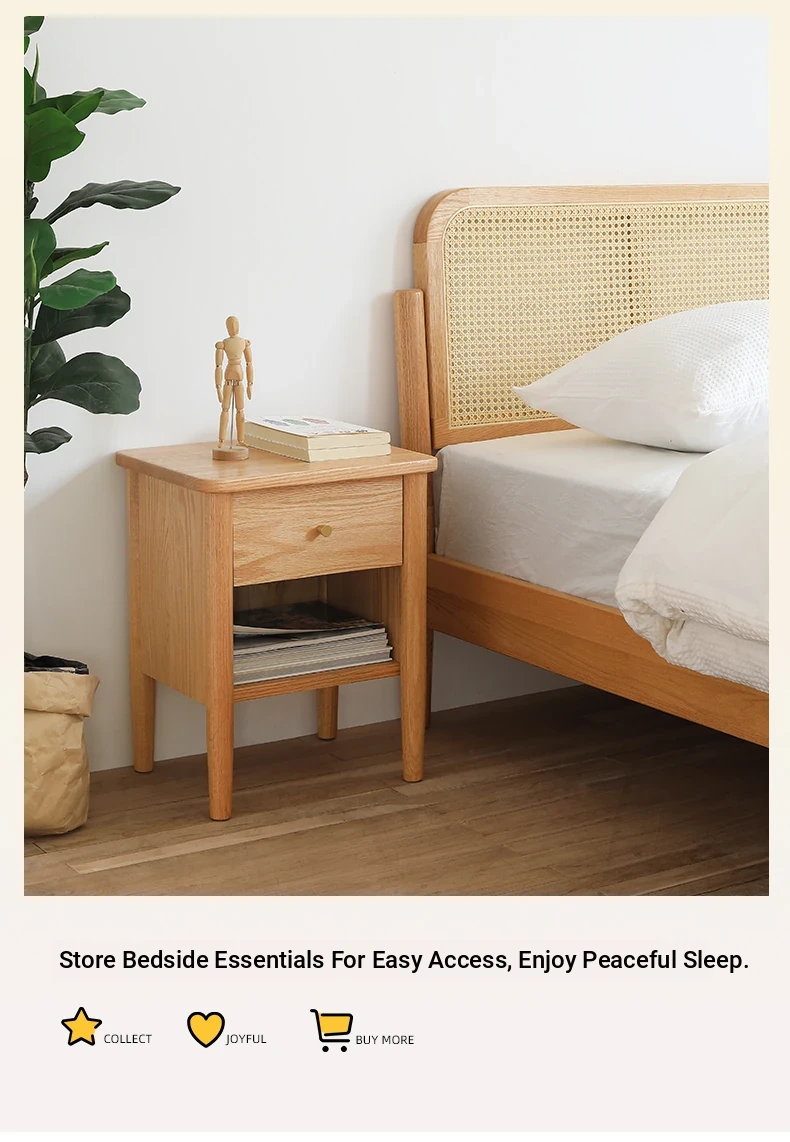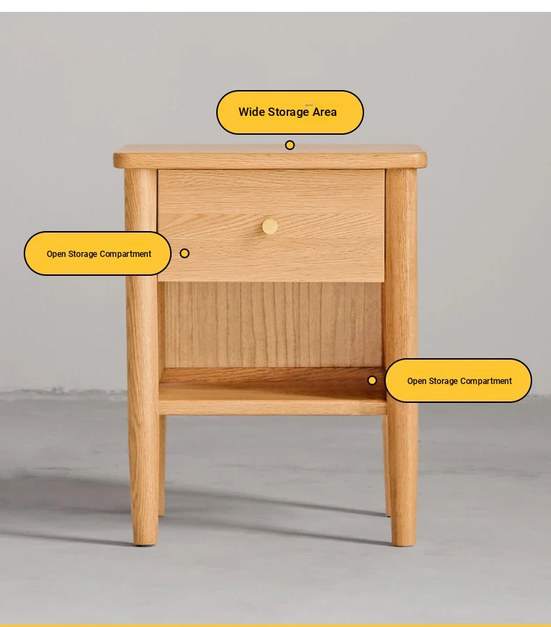 Nordic Solid Wood Nightstand for Small Bedrooms - Oak Bedside Cabinet with Single Drawer, Perfect for Home Storage & Organization