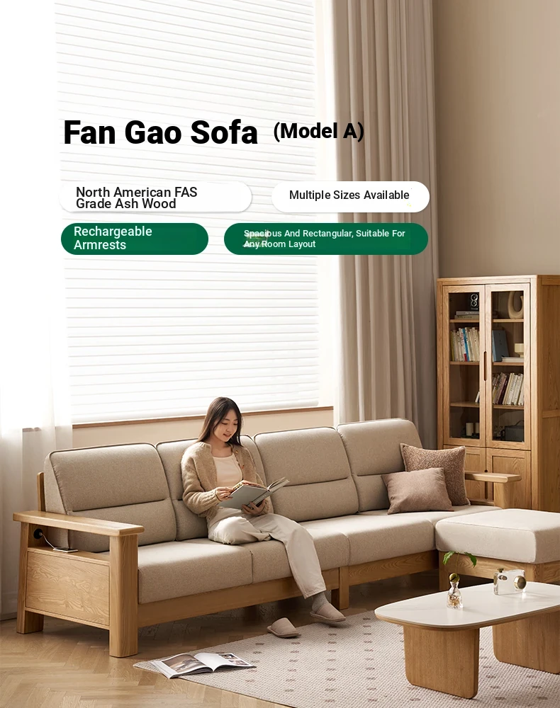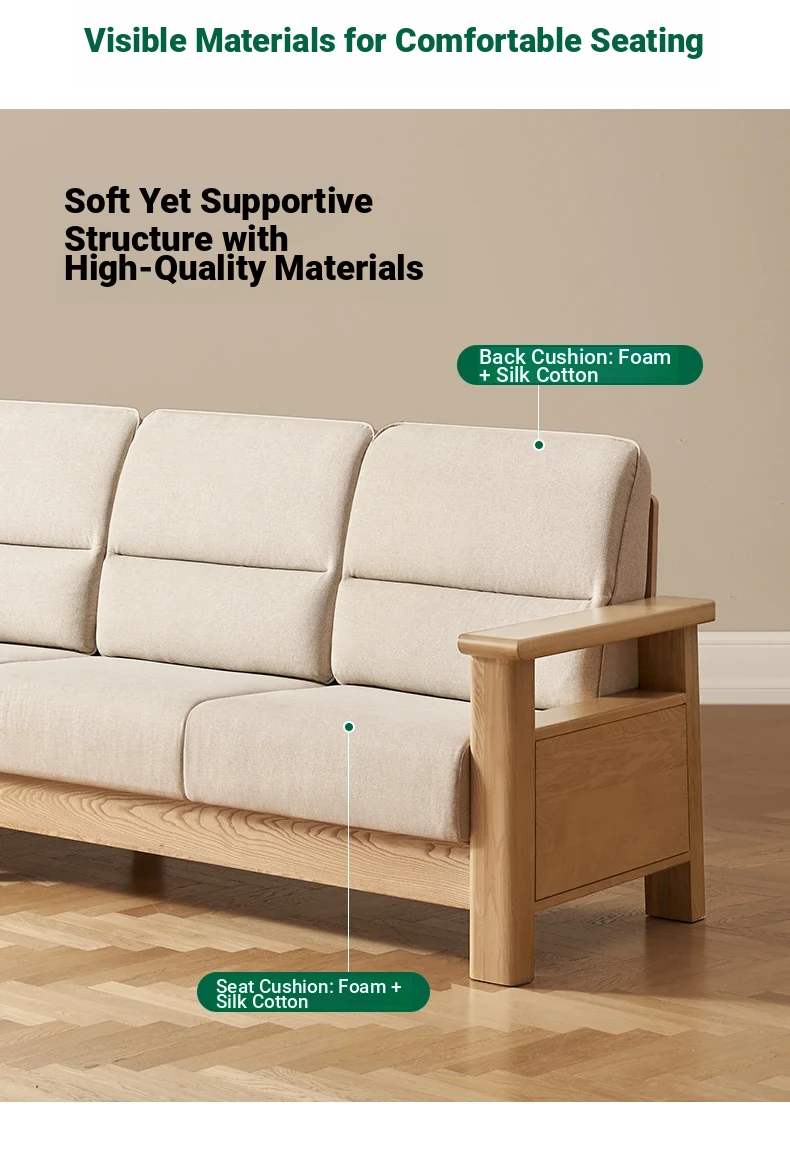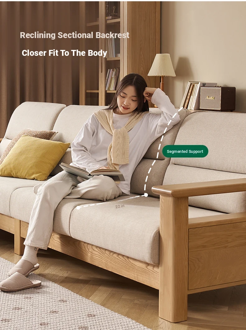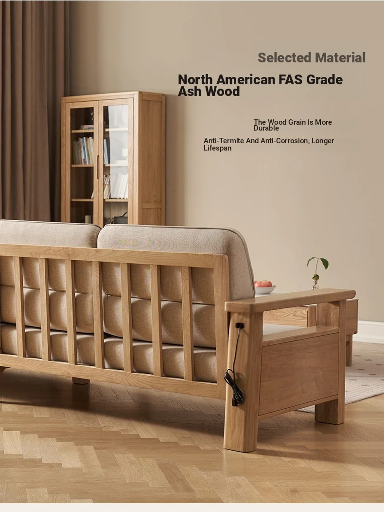 Nordic Solid Wood Sofa - Ash Wood Corner Sofa for Small Spaces, Removable and Washable Fabric, Comfortable 3-Seater Design