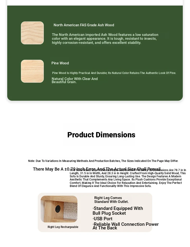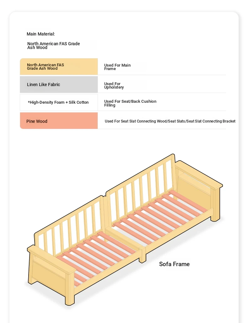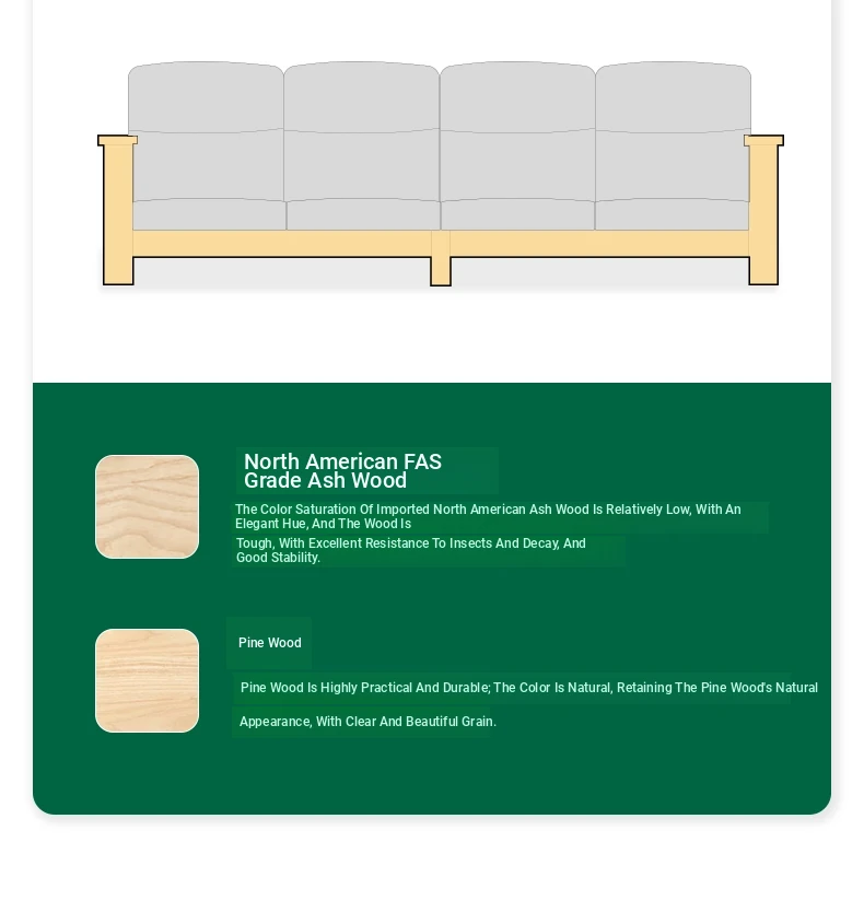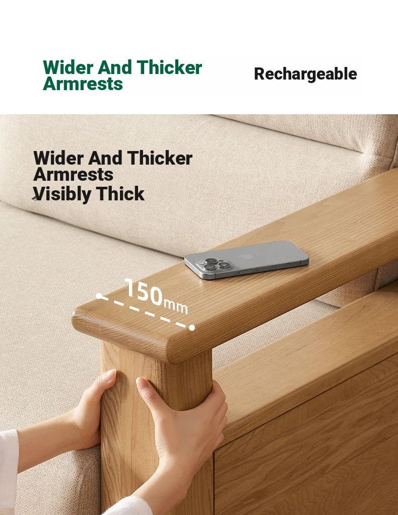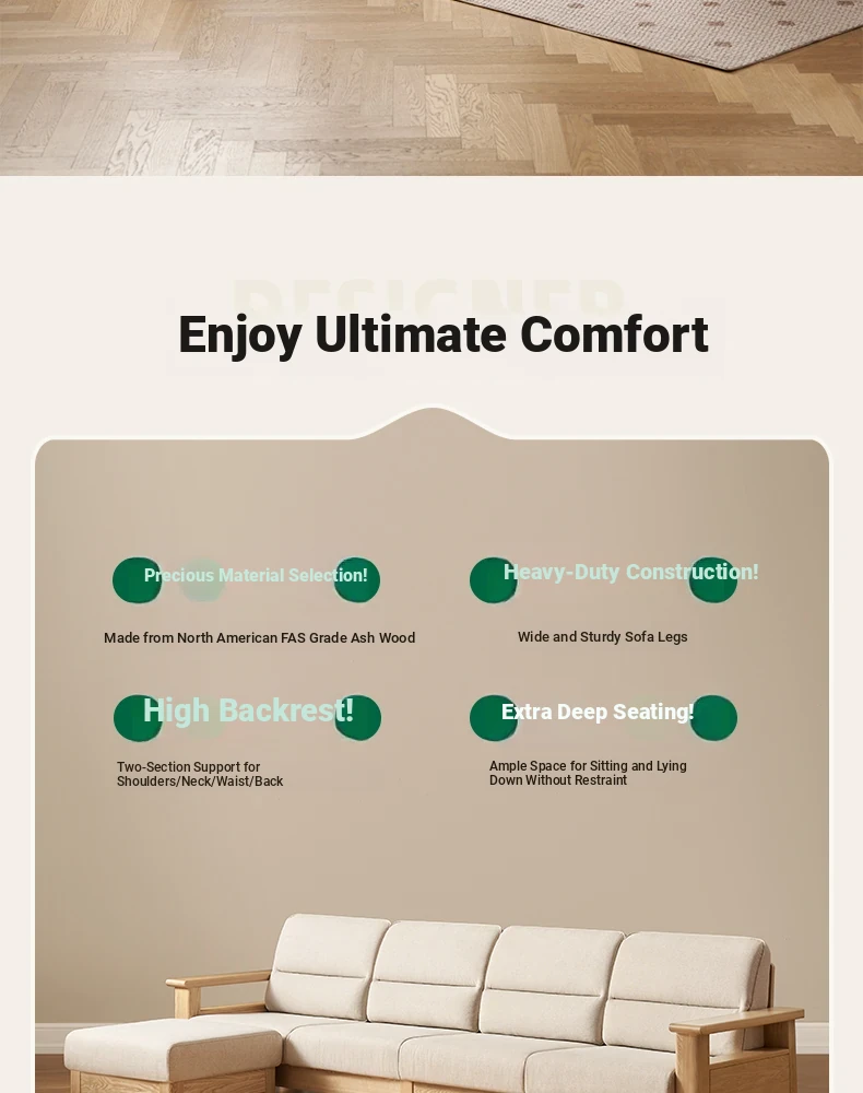 Nordic Solid Wood Sofa - Ash Wood Corner Sofa for Small Spaces, Removable and Washable Fabric, Comfortable 3-Seater Design