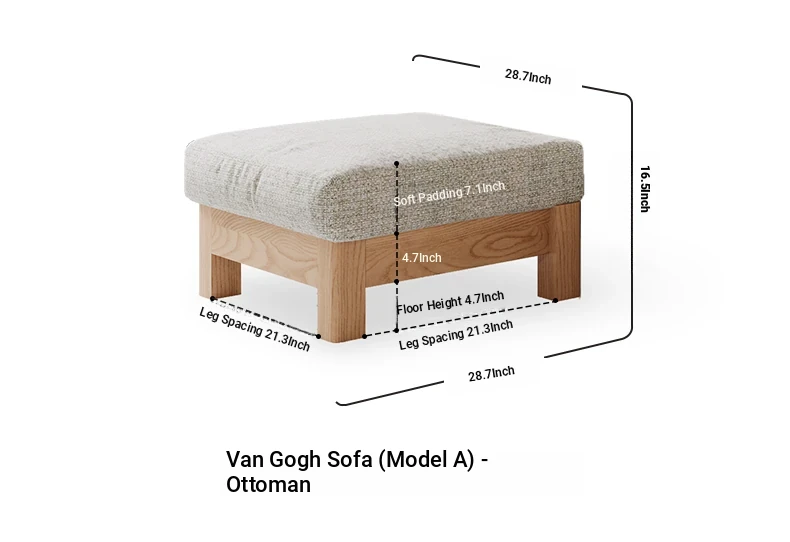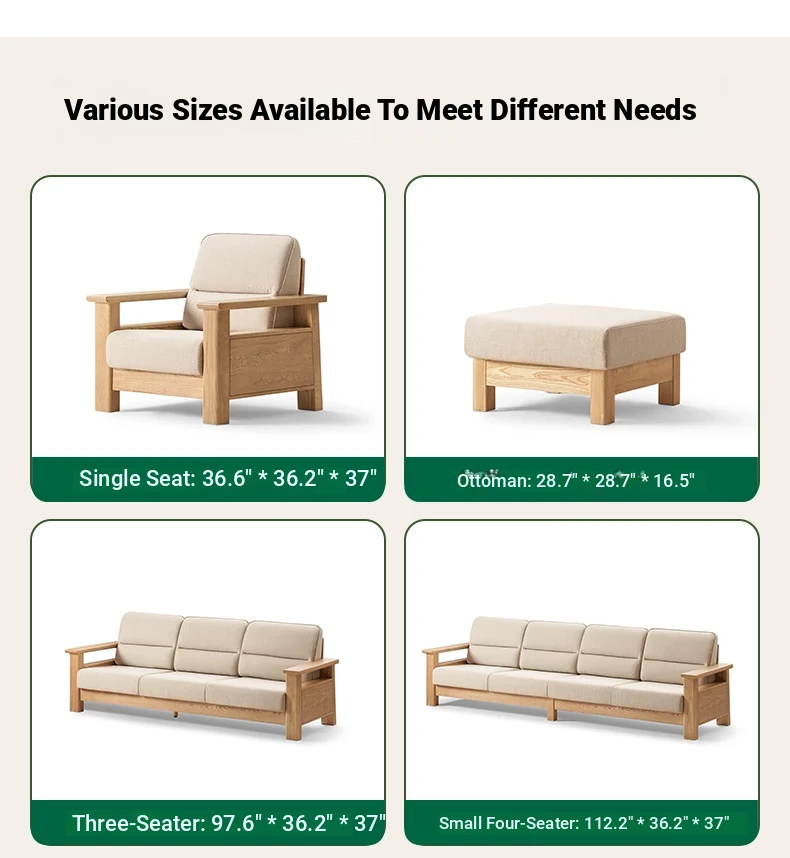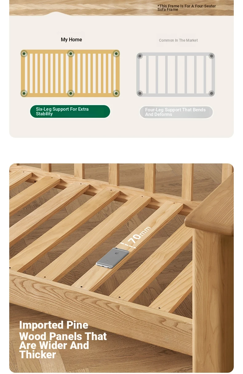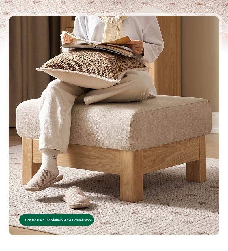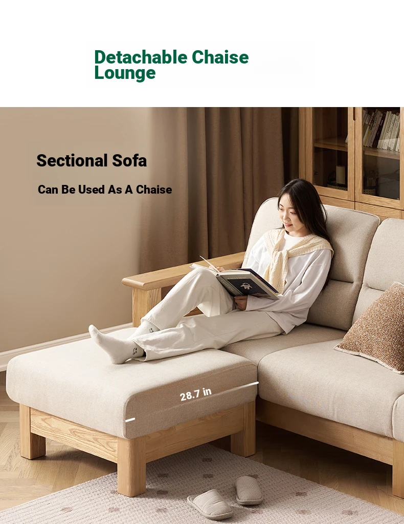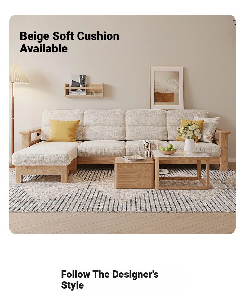 [Ash Wood-Log Color] 94.49 in Three-person Sofa +27.56 in Foot (Beige)