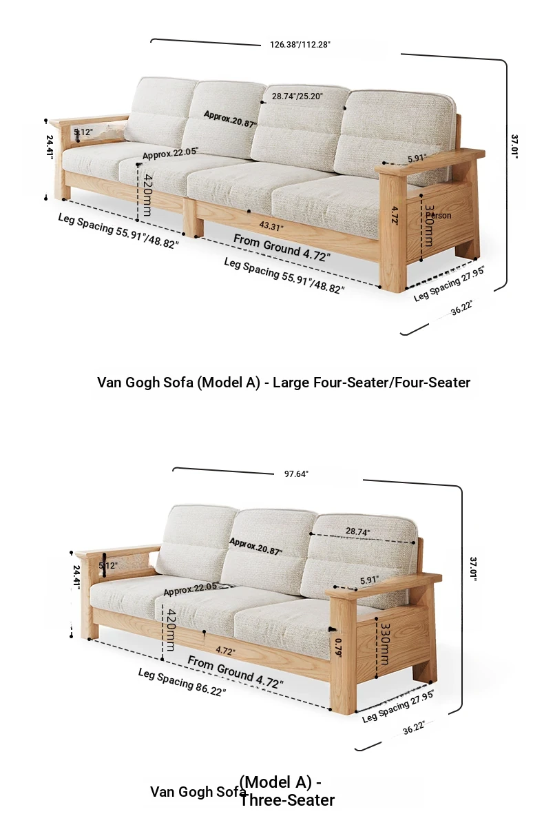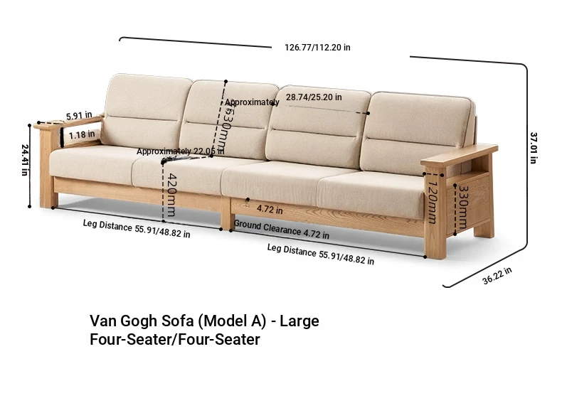 [Ash-log color] 110.24 in four-person sofa (beige)(112.20in*36.22in*37.01in)