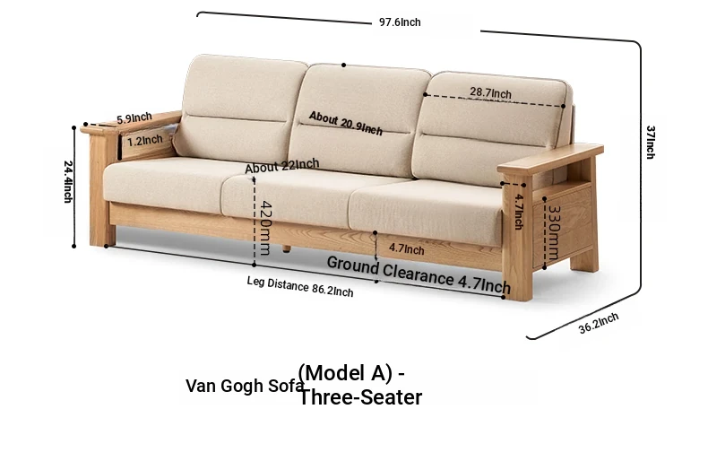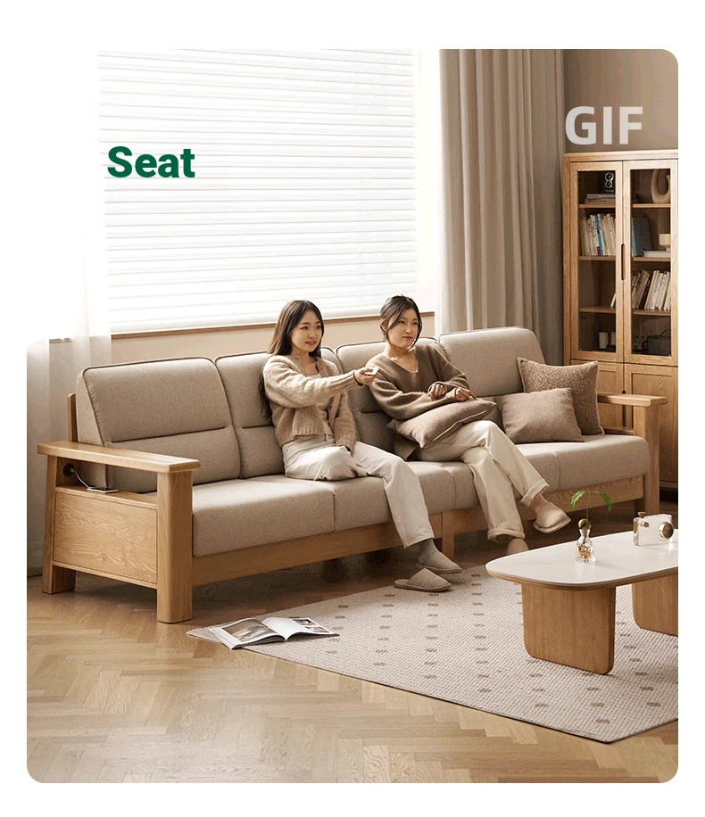 [Ash Wood-Log Color] 94.49 in Three-person Sofa (Beige)(97.64in*36.22in*37.01in)