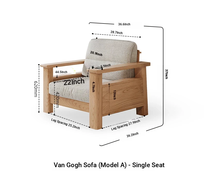 [Ash Wood-Log Color] 35.43 in Single Sofa (Grey Brown)(36.61in*36.22in*37.01in)