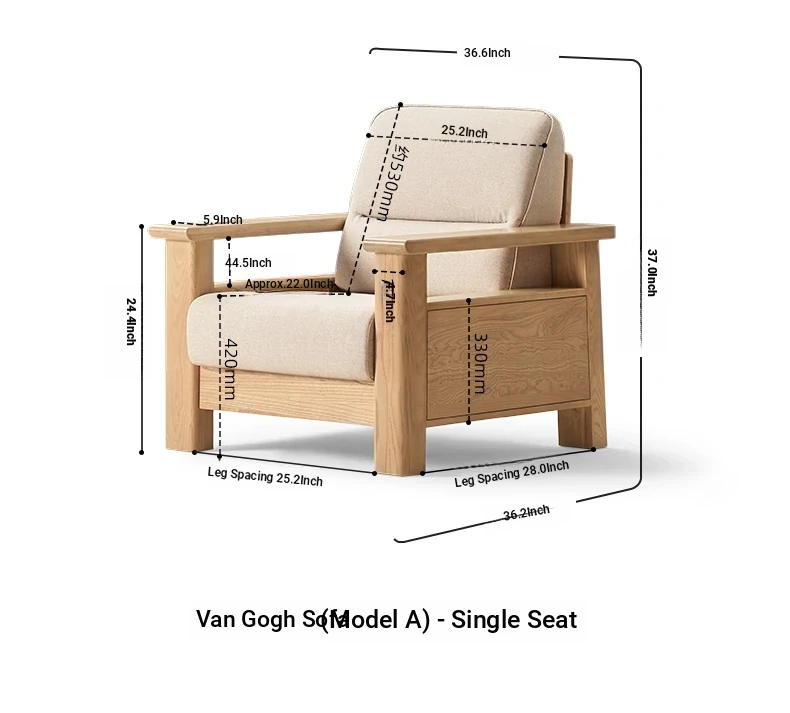 [Ash-log color] 35.43 in single sofa (beige)(36.61in*36.22in*37.01in)