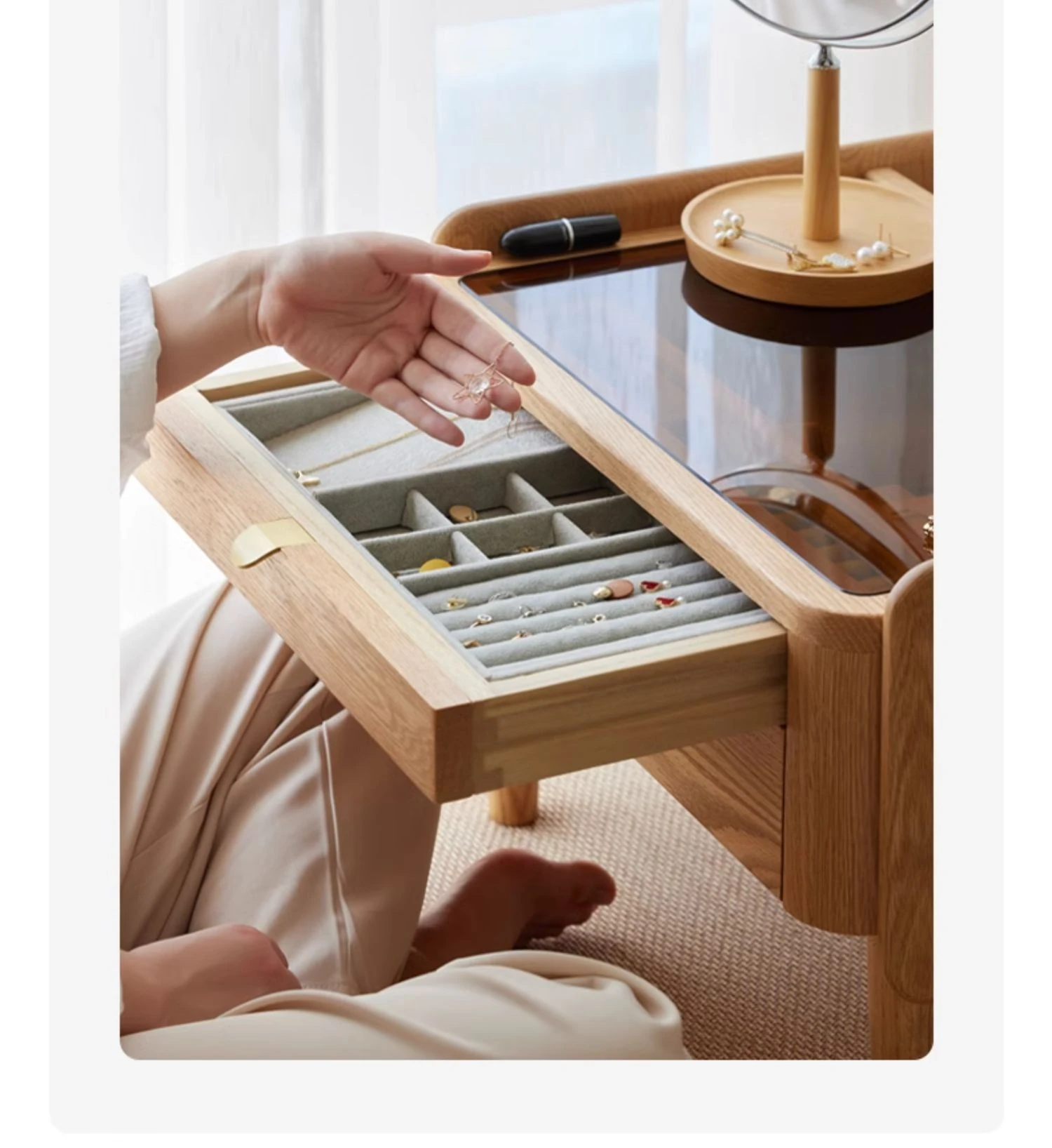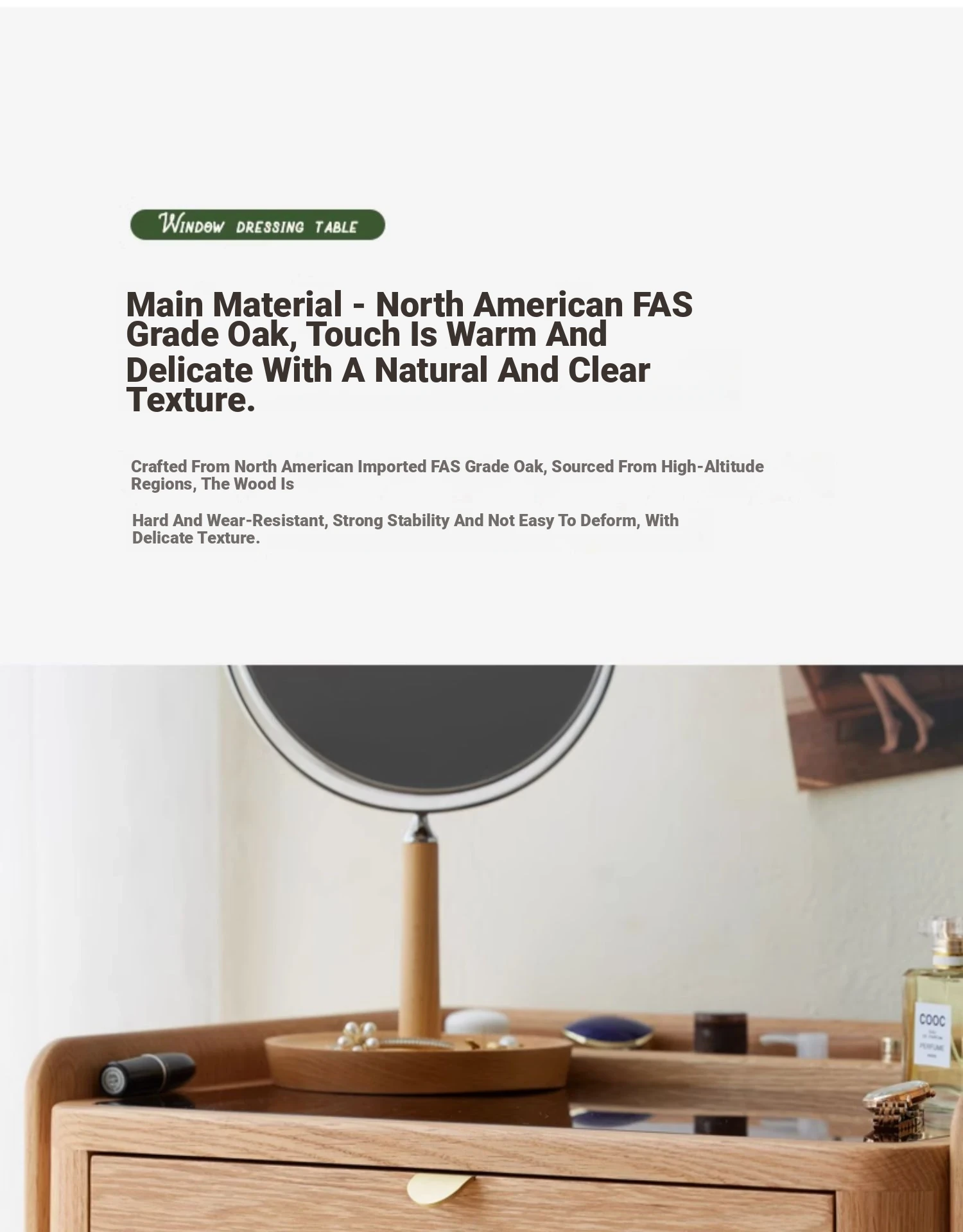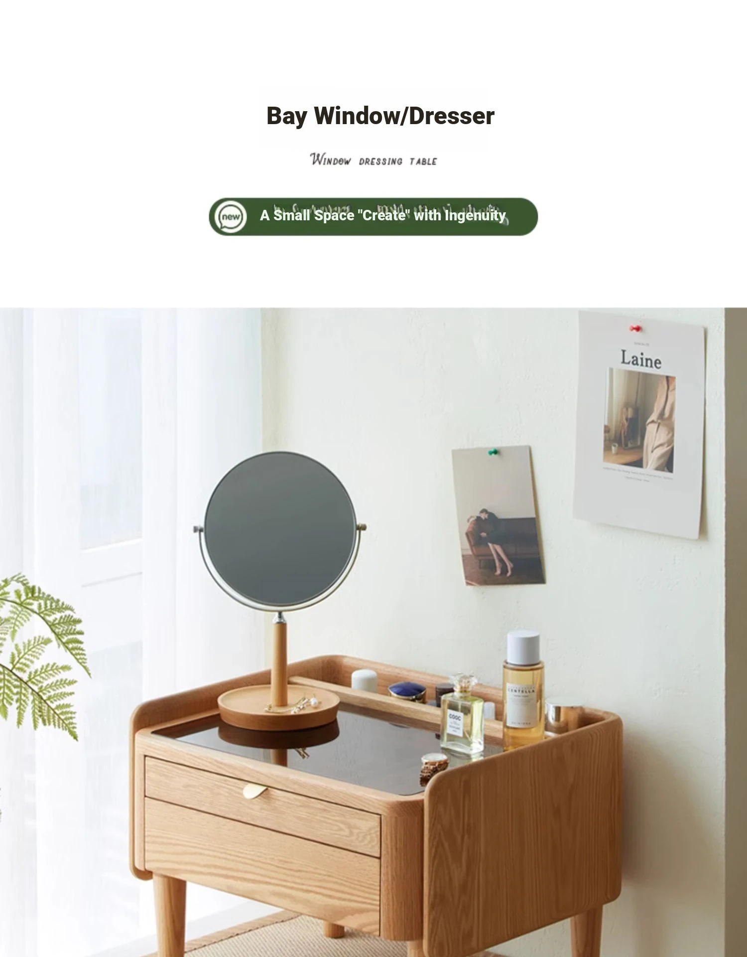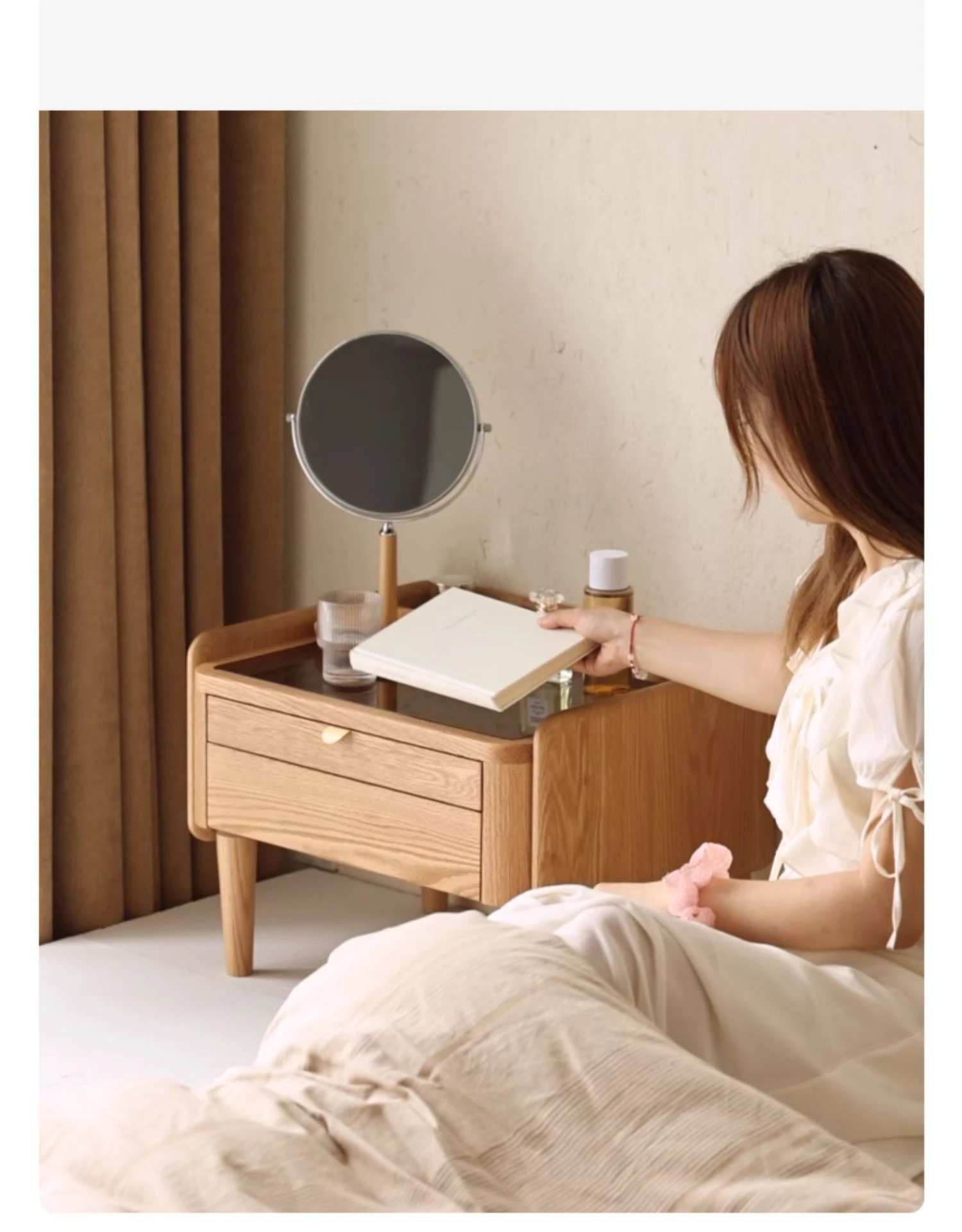 "Nordic Style Solid Wood Vanity Table – Compact Oak Dressing Desk for Small Spaces, Perfect for Your Bedroom Window Nook – Rustic Charm & Natural Elegance"