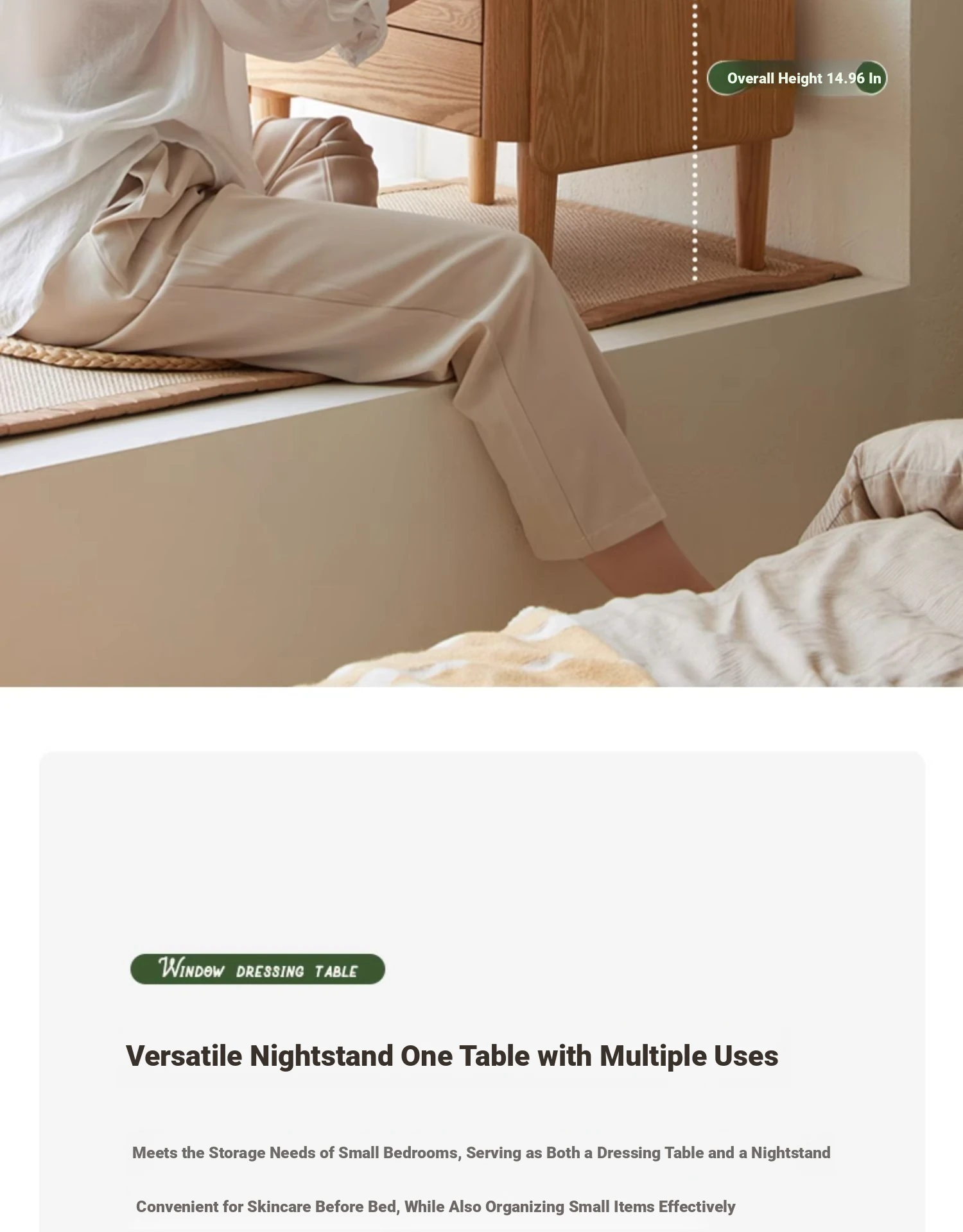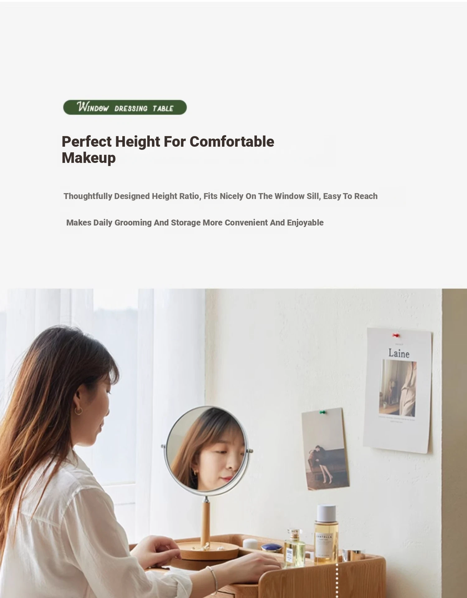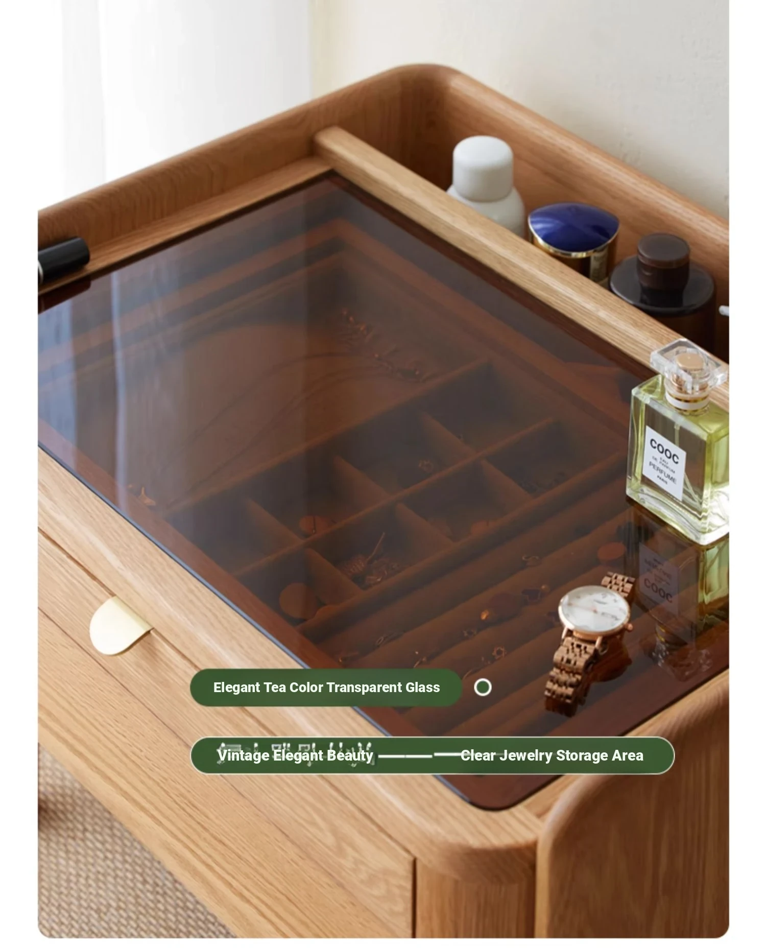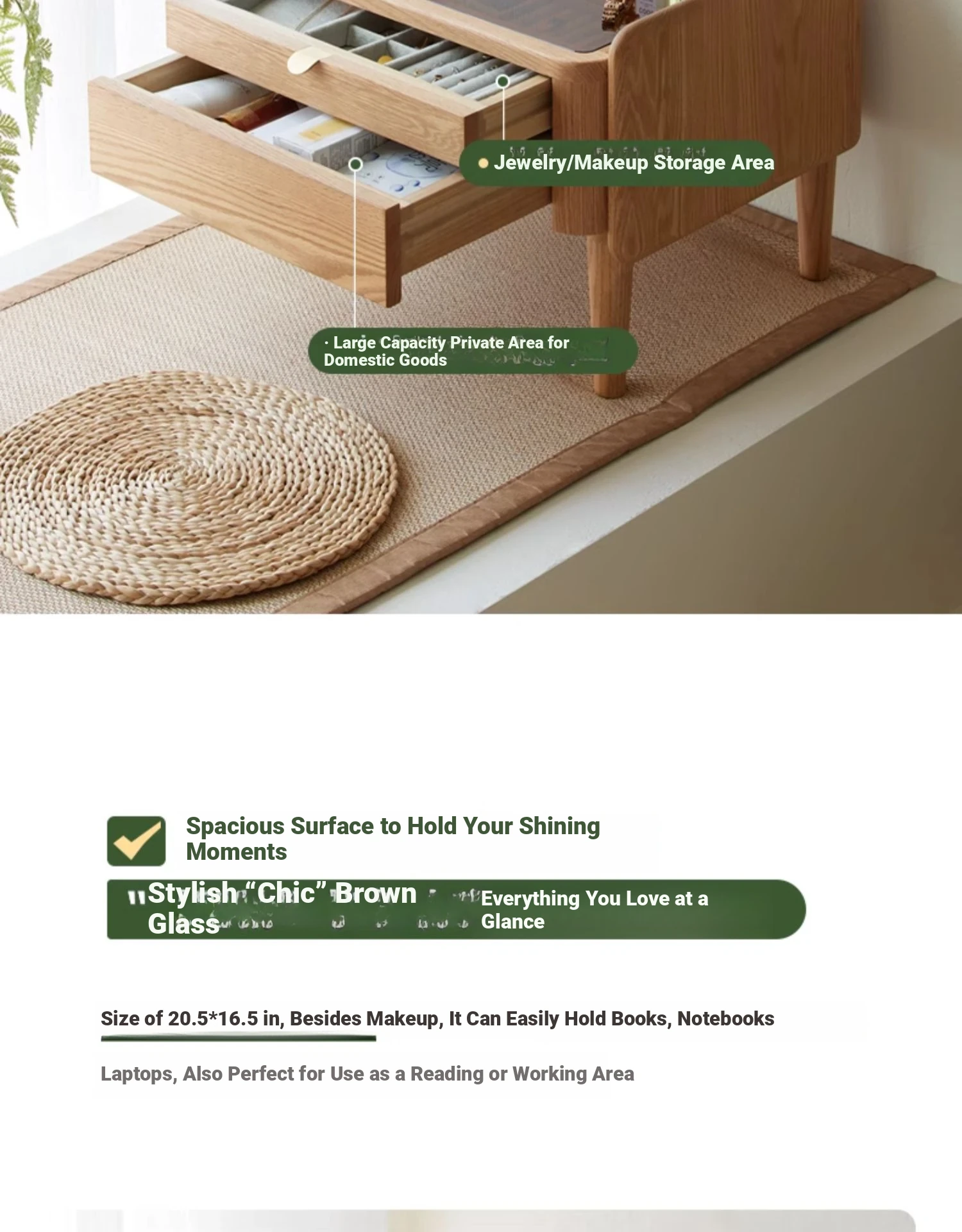 "Nordic Style Solid Wood Vanity Table – Compact Oak Dressing Desk for Small Spaces, Perfect for Your Bedroom Window Nook – Rustic Charm & Natural Elegance"