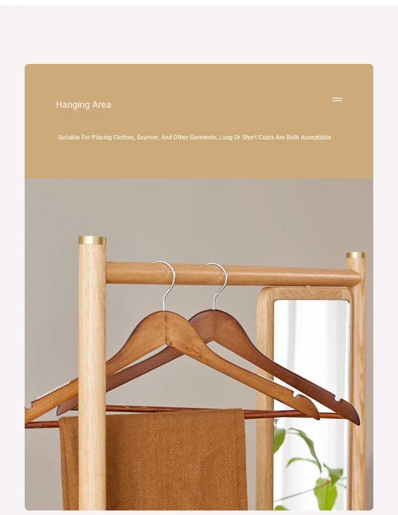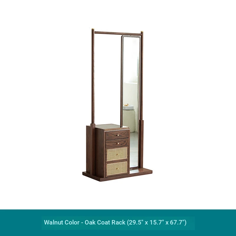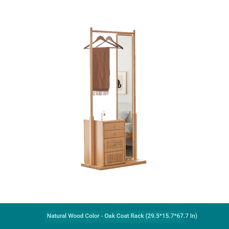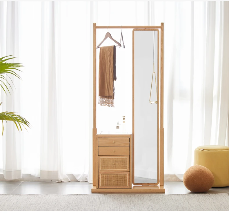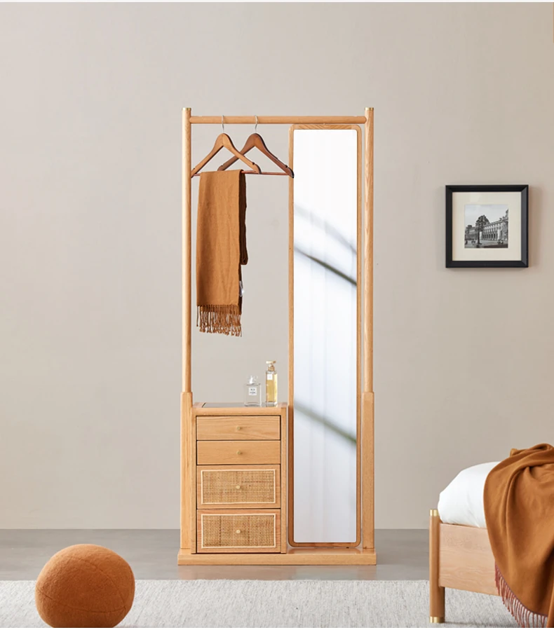 Nordic-Japanese Style Solid Wood Clothing Rack with Full-Length Mirror – Ideal for Small Bedrooms and Homes, Versatile Design for Easy Hanging and Organization.