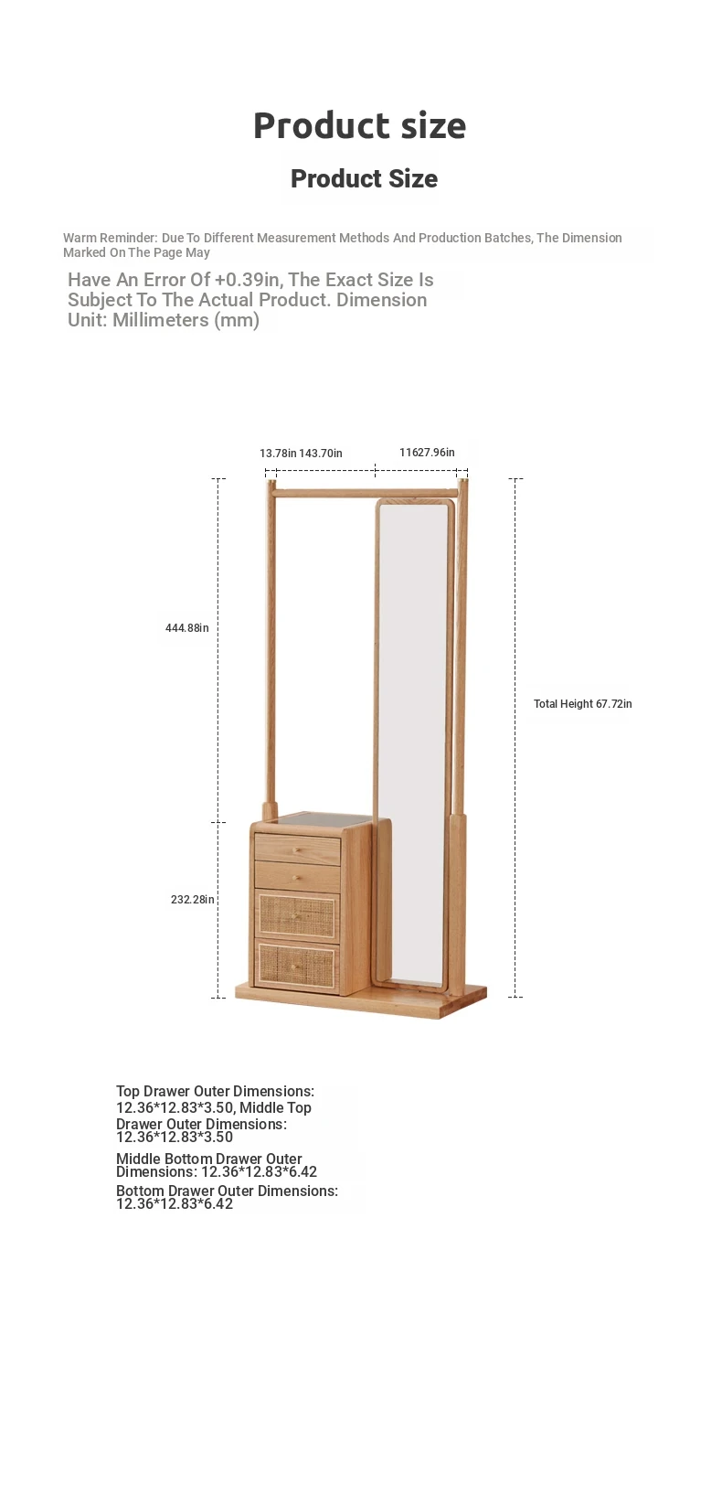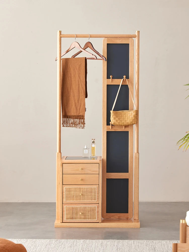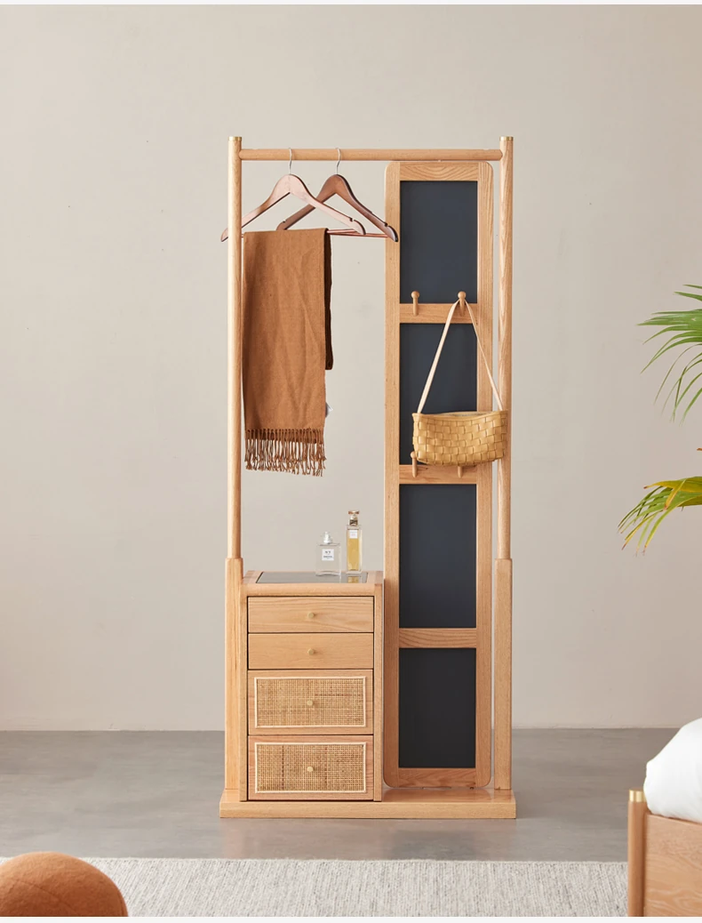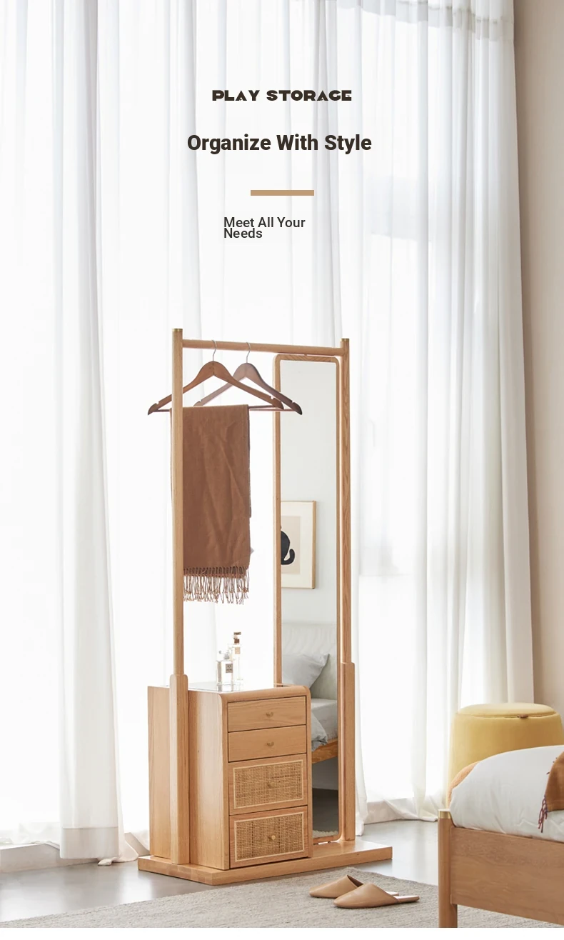 Nordic-Japanese Style Solid Wood Clothing Rack with Full-Length Mirror – Ideal for Small Bedrooms and Homes, Versatile Design for Easy Hanging and Organization.