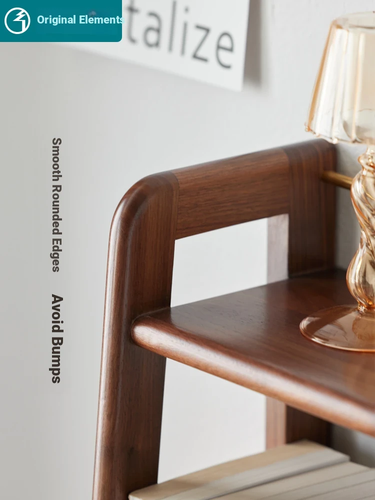 Optimized Title: "Modern Minimalist Solid Wood Small Bookshelf - Elegant Black Walnut Storage Rack for Scandinavian-Inspired Desktop Organization"