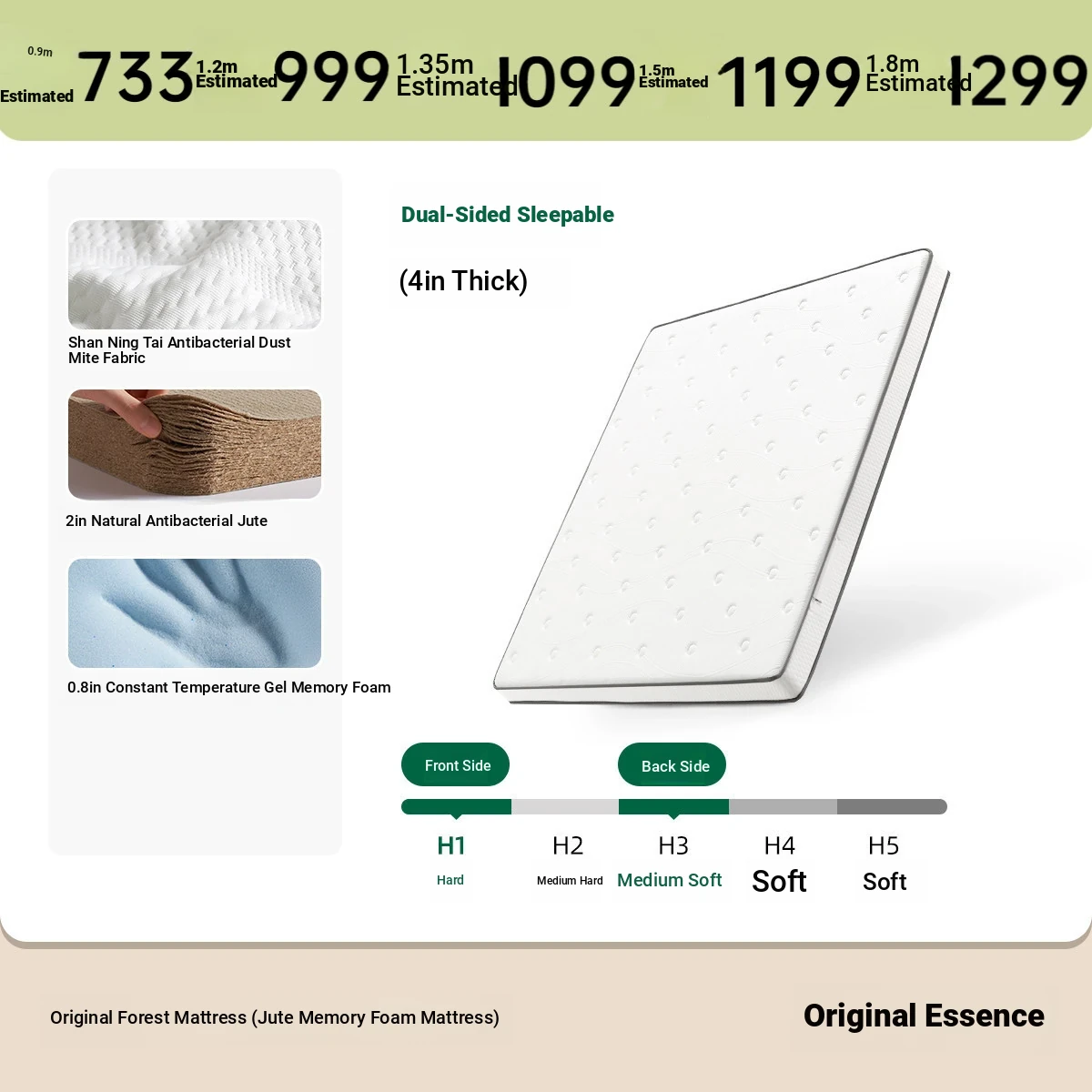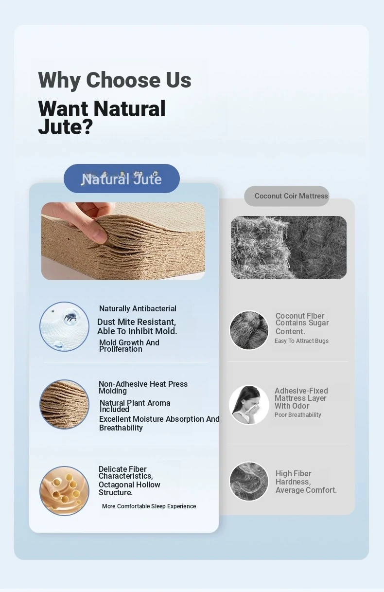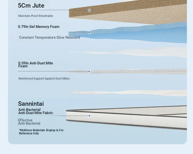 Original Element Antibacterial Anti-Dust Mite Natural Jute No Glue Memory Foam Mattress – Breathable, Supportive, and Ideal for Spine Protection – Perfect for Home Use