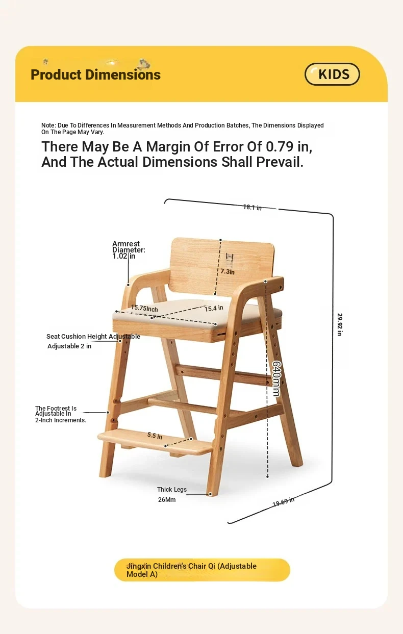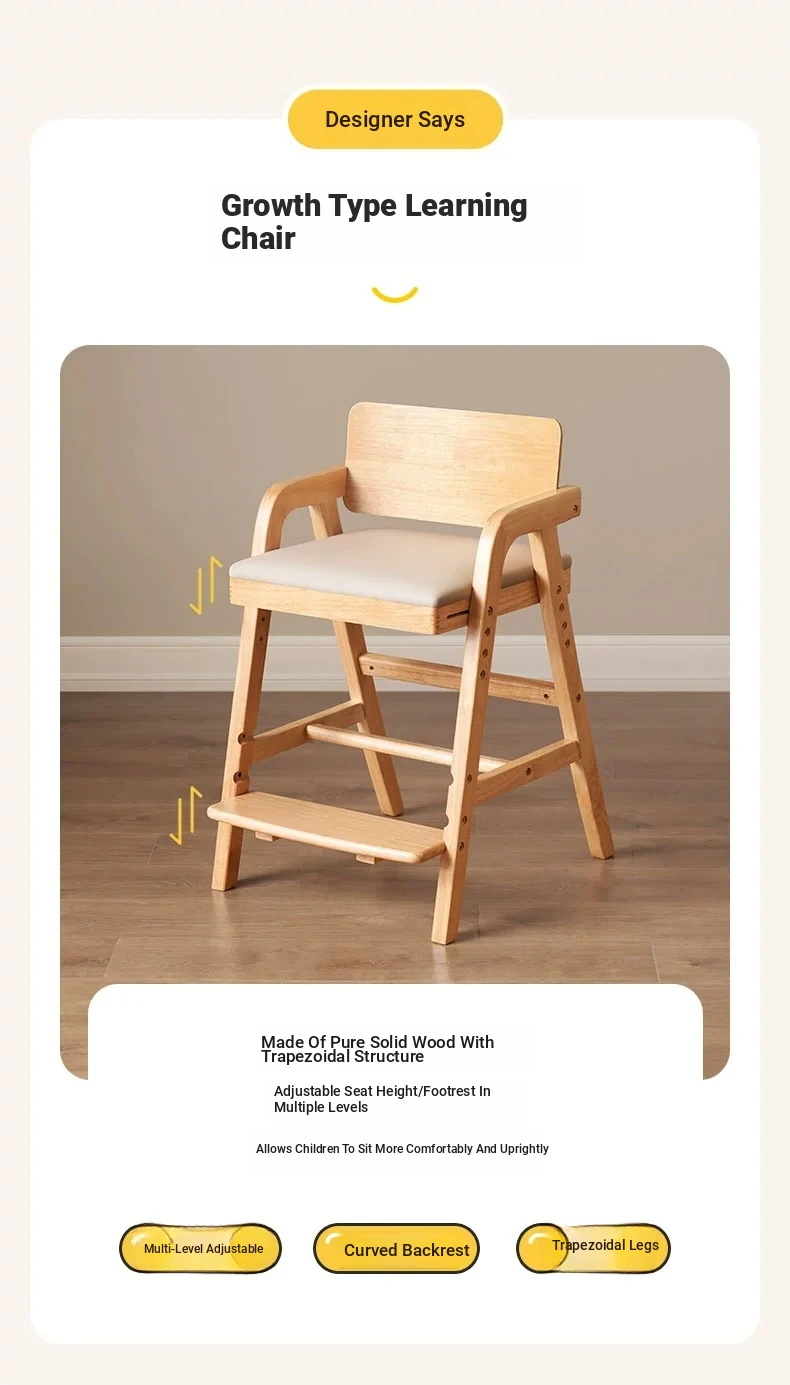 Original Element Children's Learning Chair - Adjustable Solid Wood Growing Chair, Modern Minimalist Baby Dining Chair, Perfect for Learning and Play!