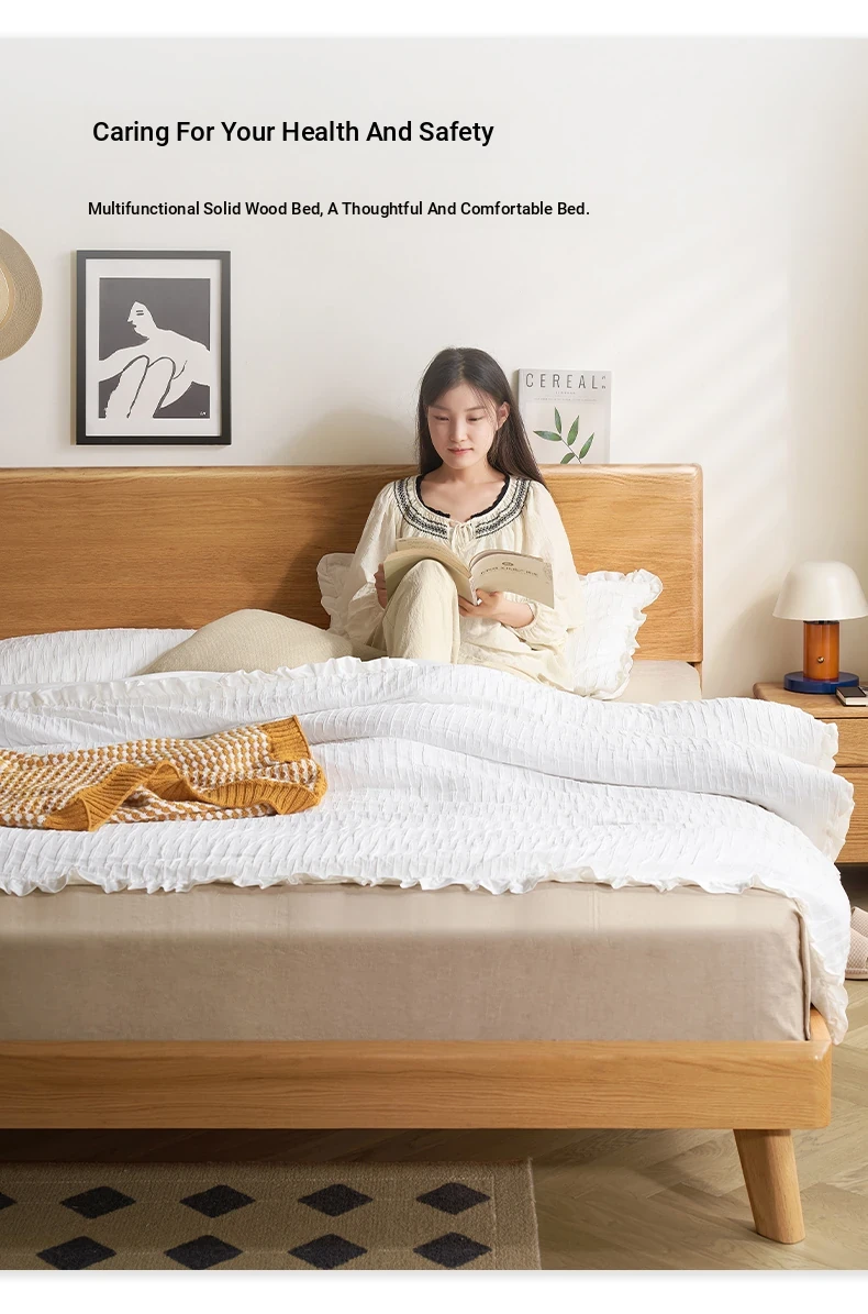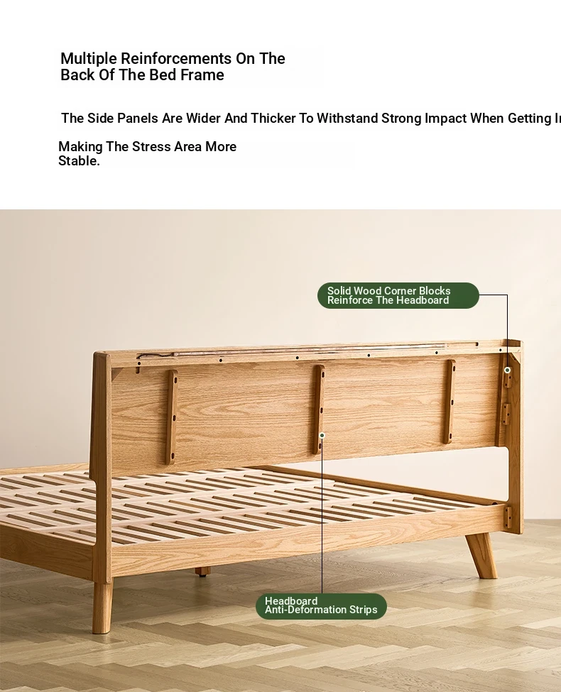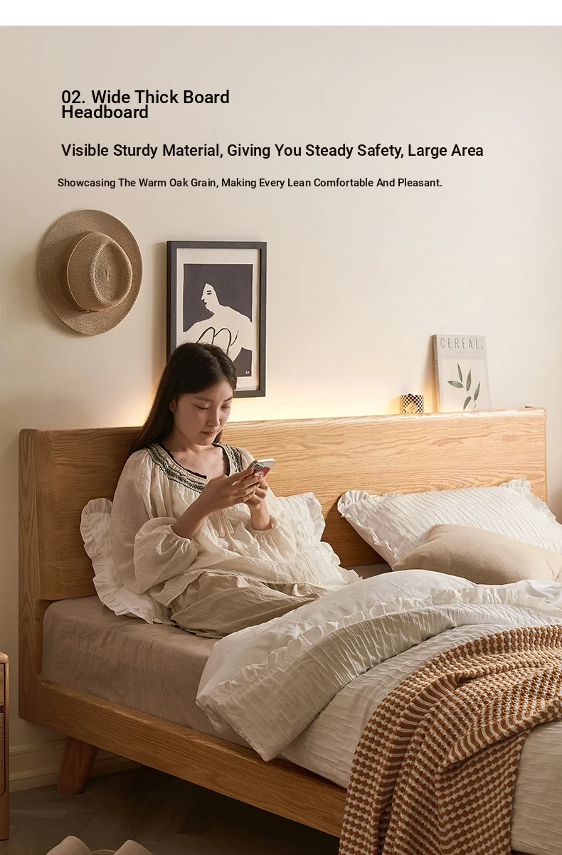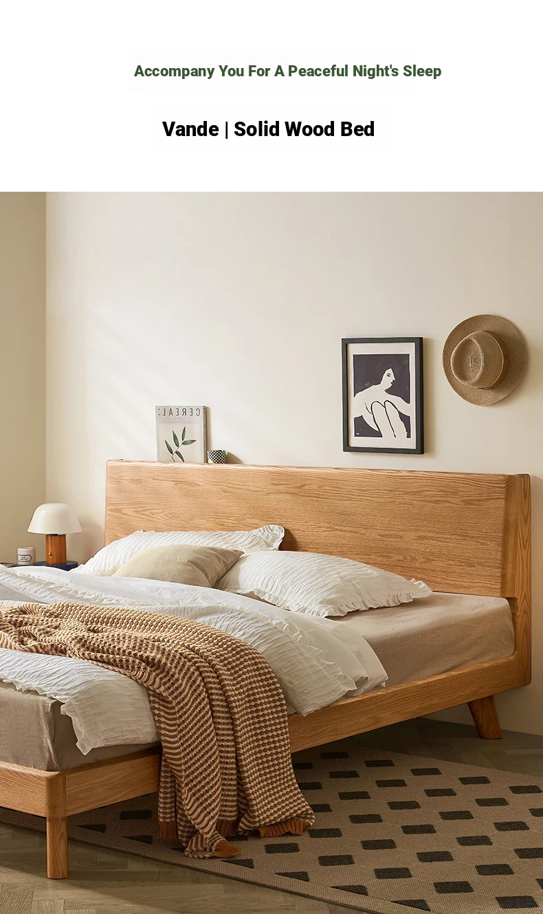 Original Element Solid Wood Bed - Modern Minimalist 1.5m/1.8m Double Bed for Bedroom - Nordic Style Large Plank Design - Perfect Blend of Elegance and Comfort