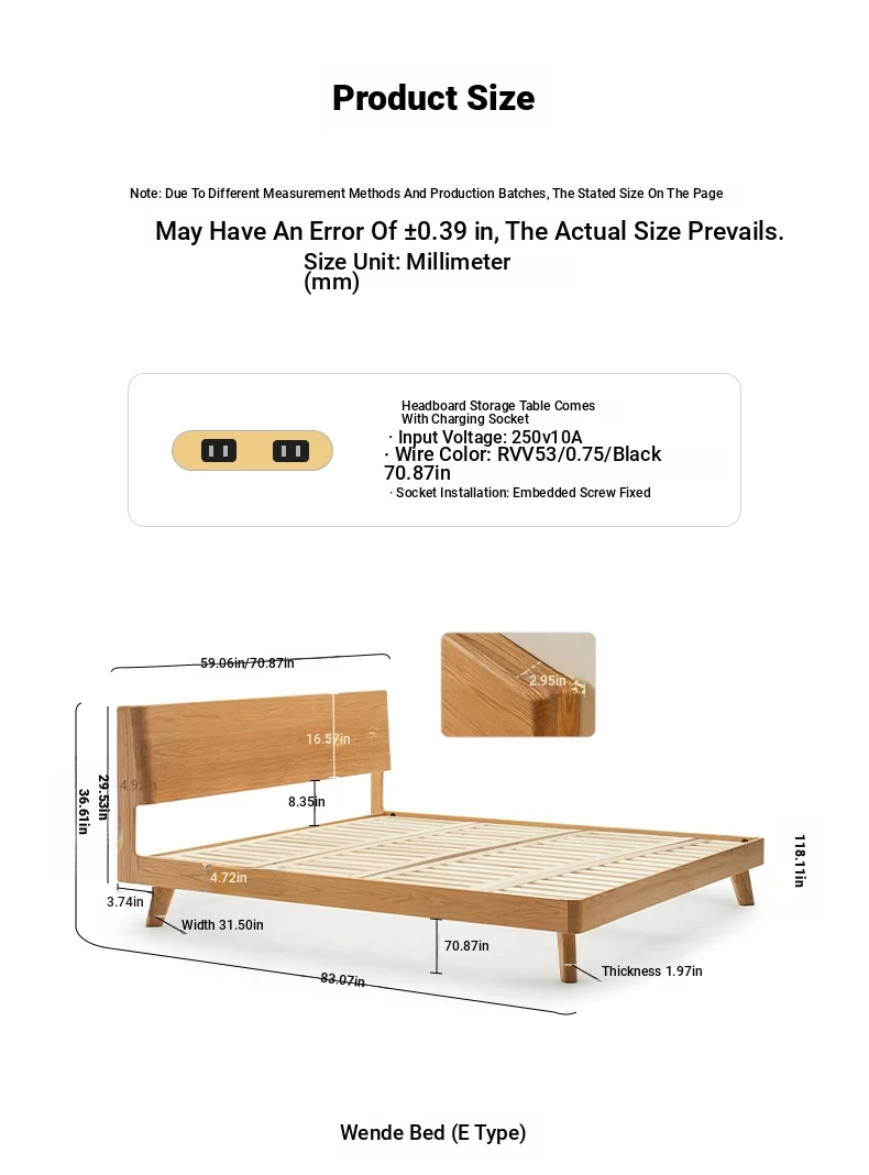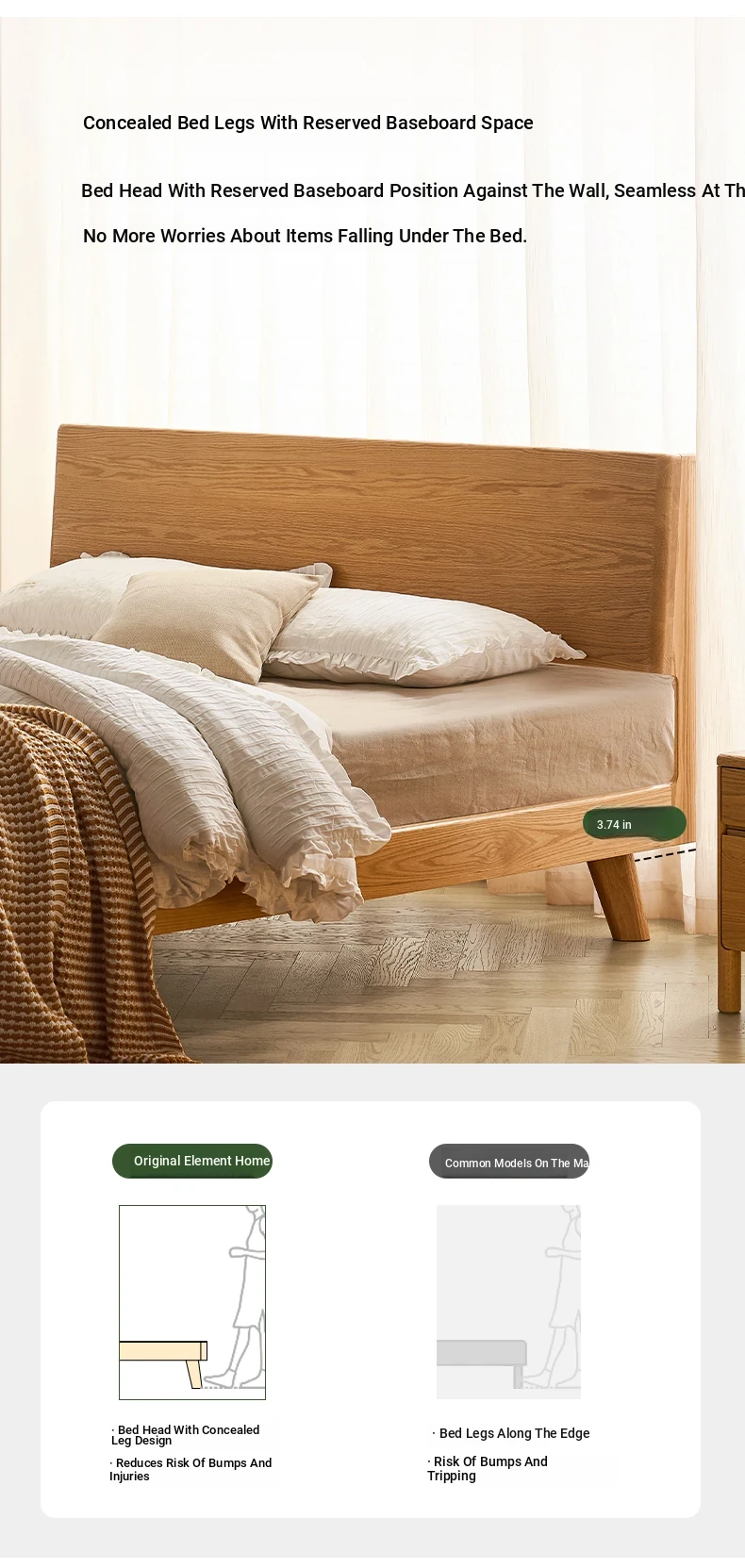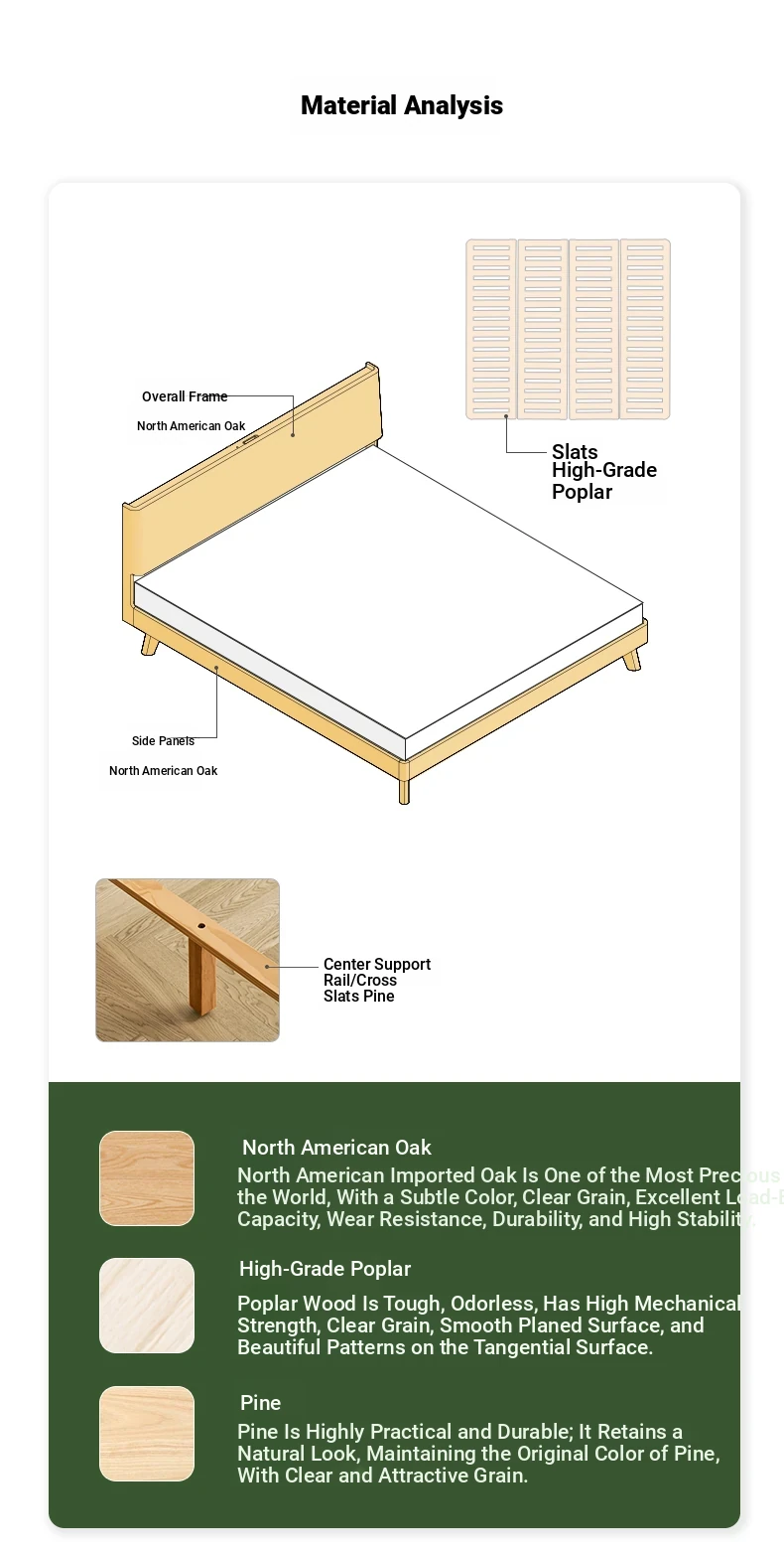Original Element Solid Wood Bed - Modern Minimalist 1.5m/1.8m Double Bed for Bedroom - Nordic Style Large Plank Design - Perfect Blend of Elegance and Comfort