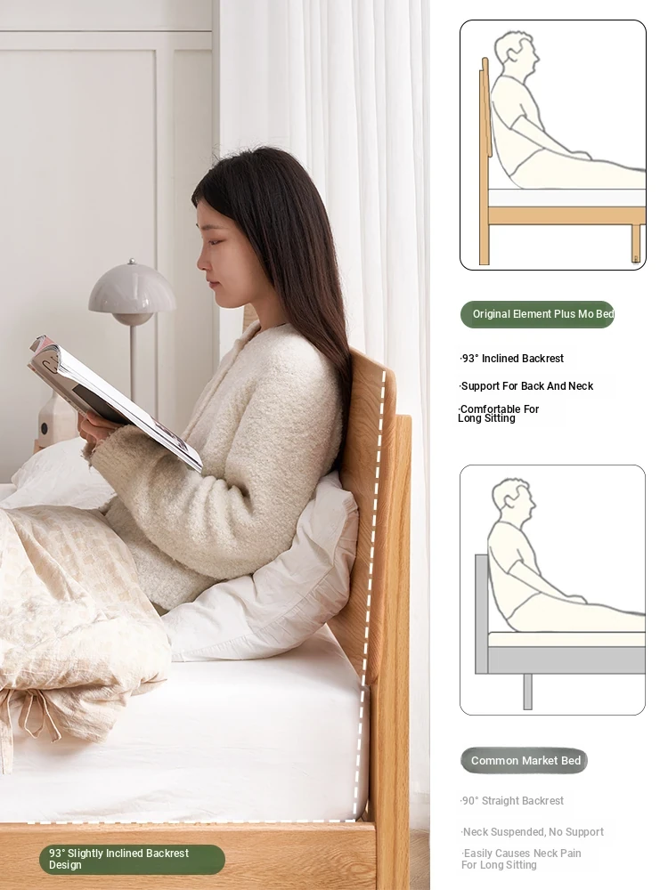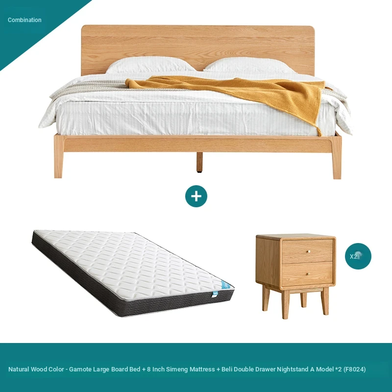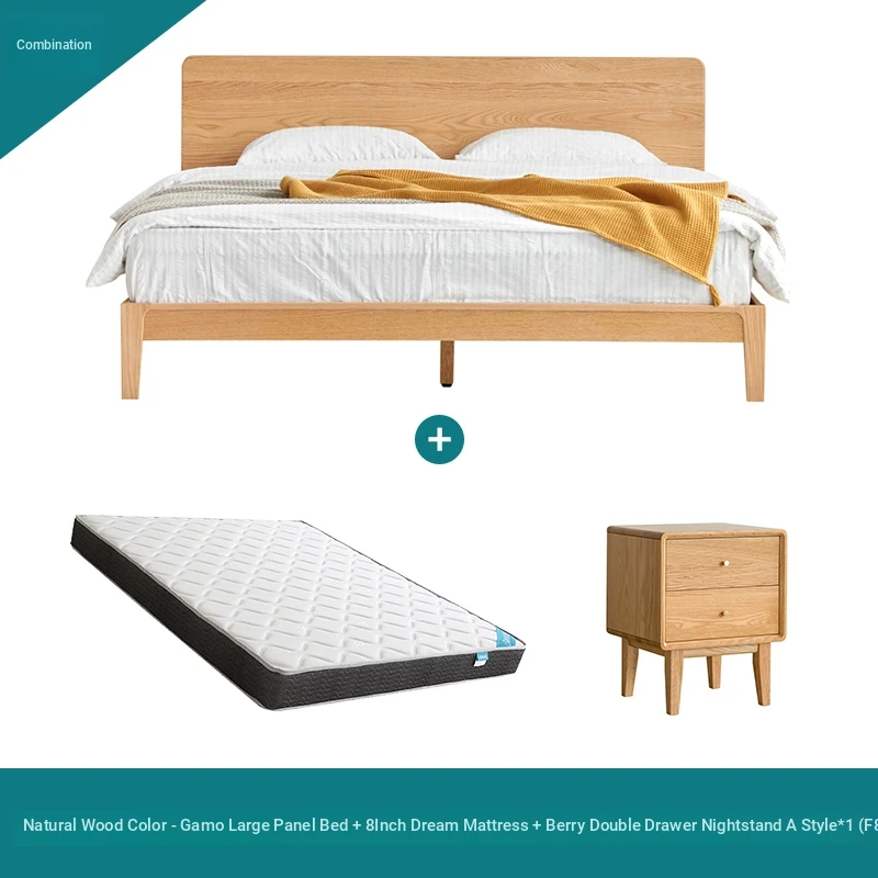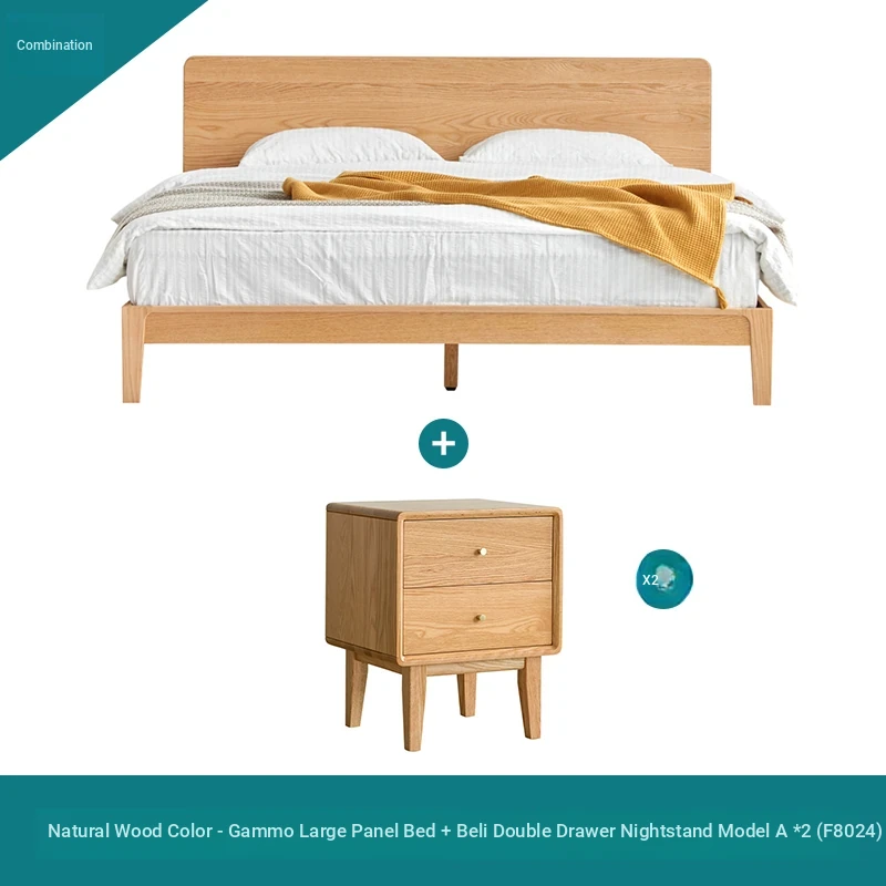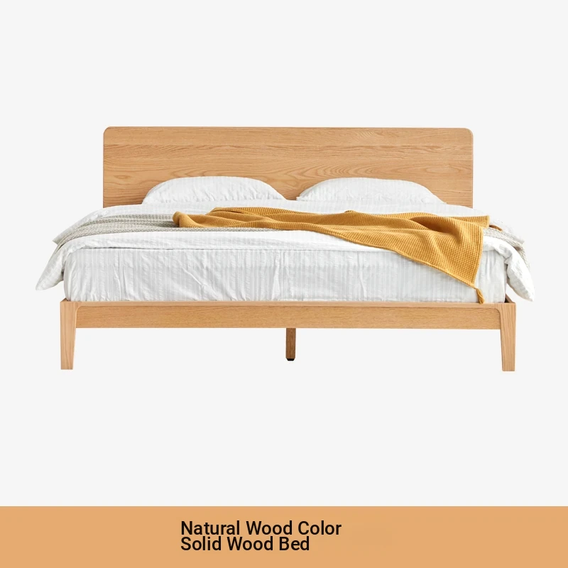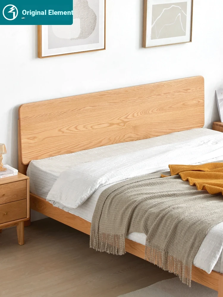 Original Element Solid Wood Bed - Nordic Oak 1.5m/1.8m Large Panel Modern Minimalist Bedroom Double Bed in Natural Wood Finish