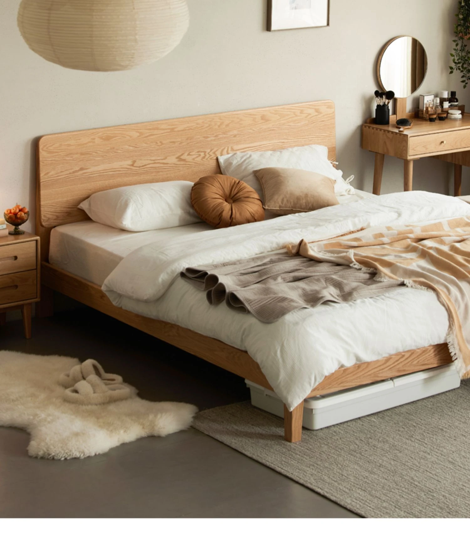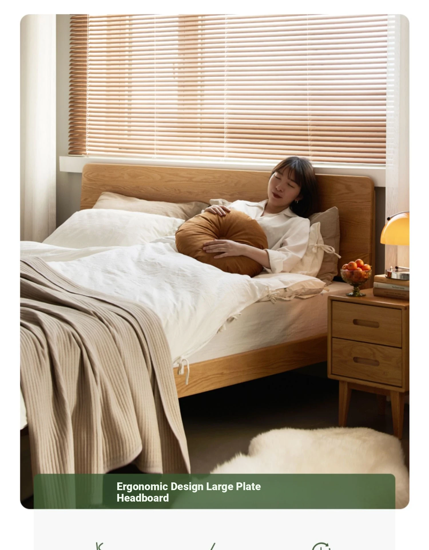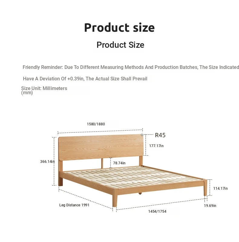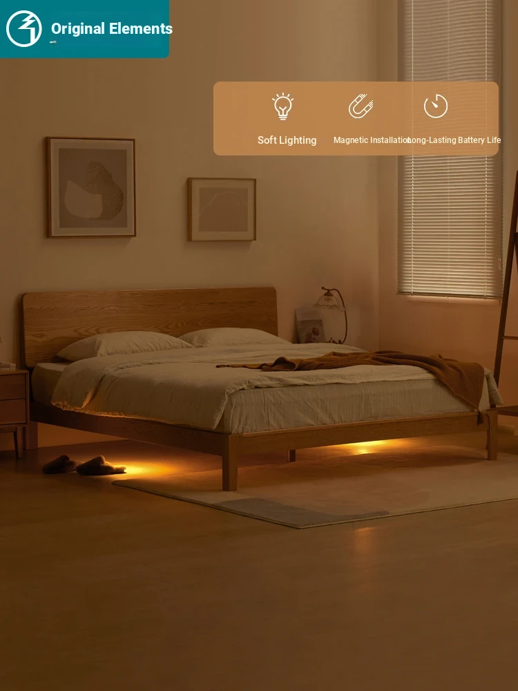 Original Element Solid Wood Bed - Nordic Oak 1.5m/1.8m Large Panel Modern Minimalist Bedroom Double Bed in Natural Wood Finish