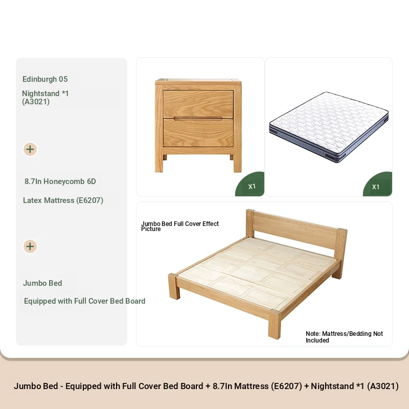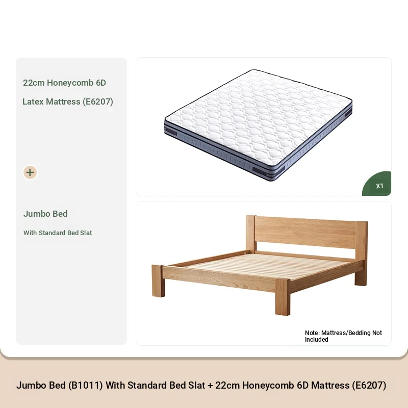 Log Color-Big Mac Bed (with Ordinary Plank) + Bedside Table * 1(A3021)+8.66in Honeycomb 6D Latex Mattress (E6207)