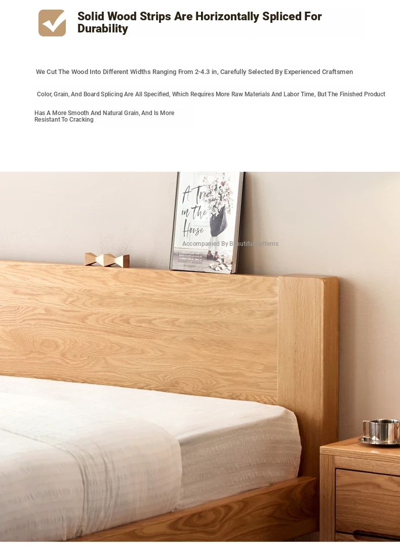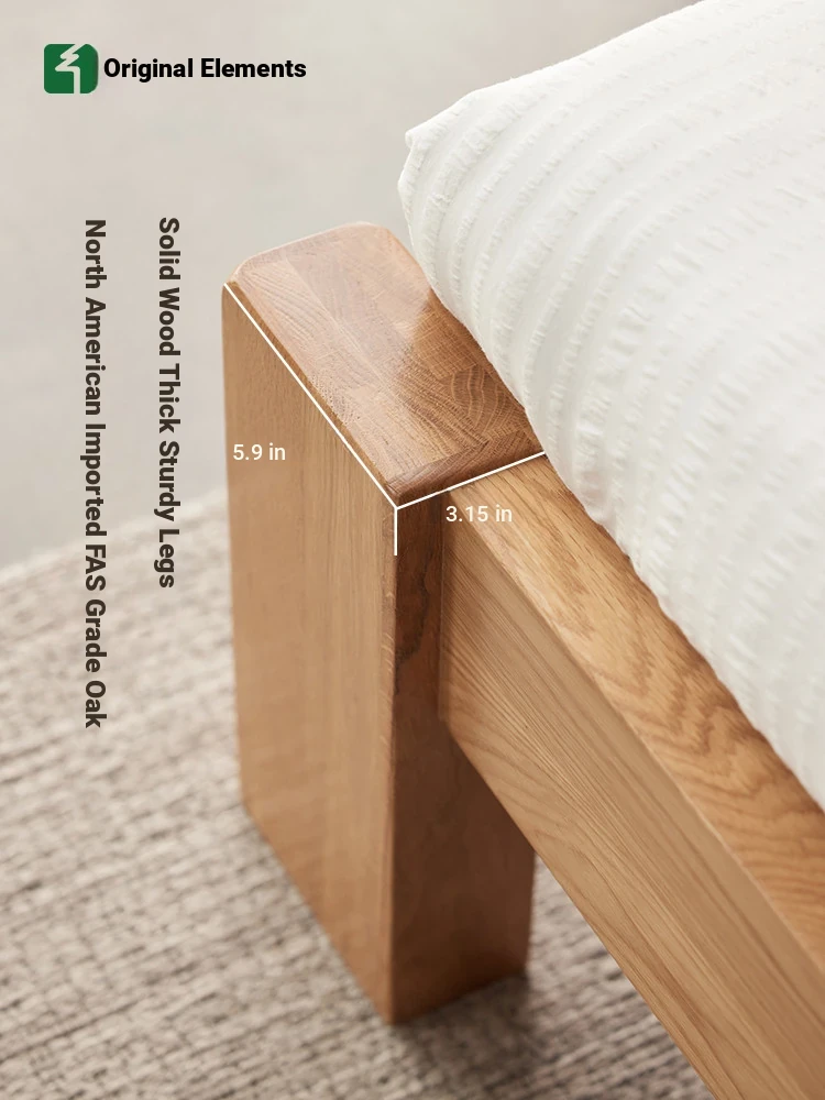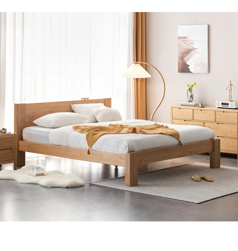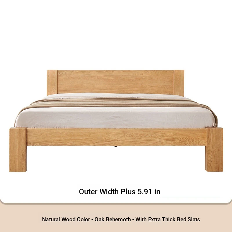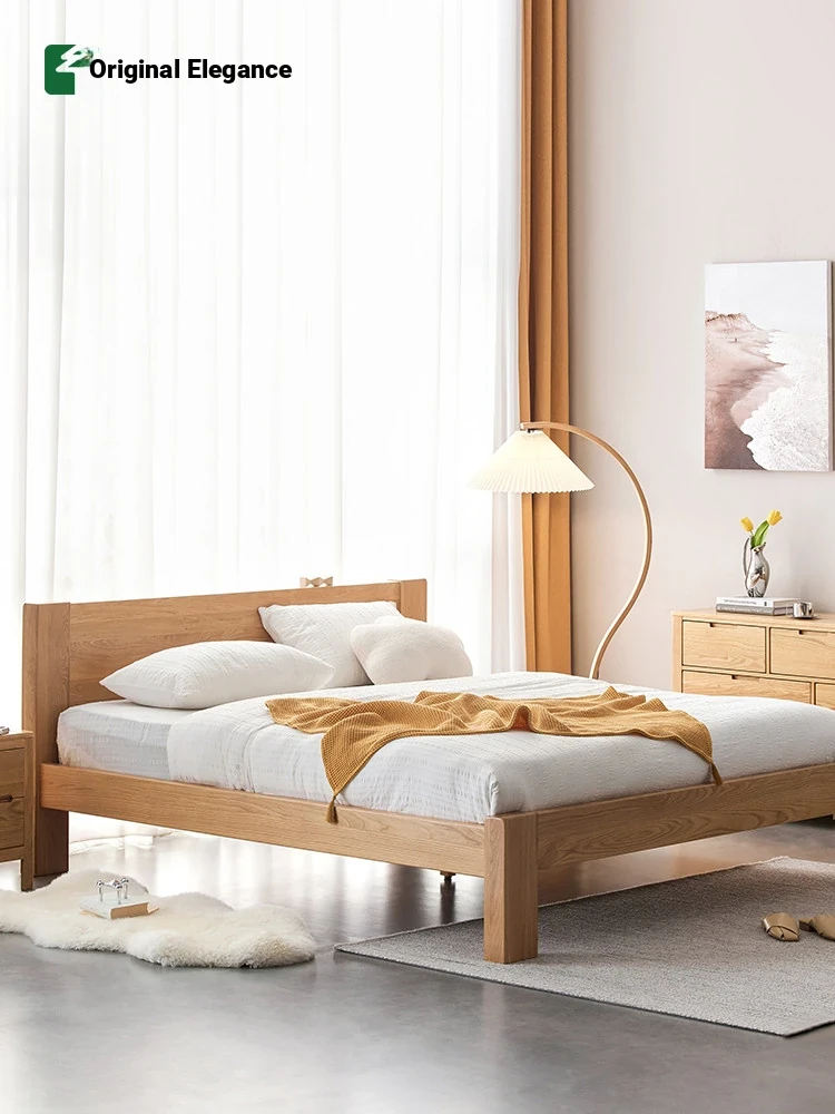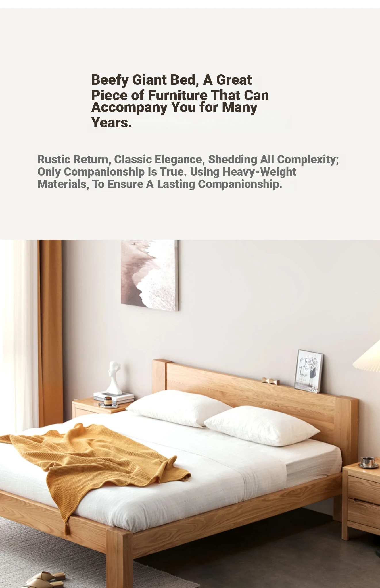 Original Element Solid Wood Bed - Oak King Size Bed for Master Bedroom, Nordic Style, Thickened and Widened, Giant Double Bed for Ultimate Comfort