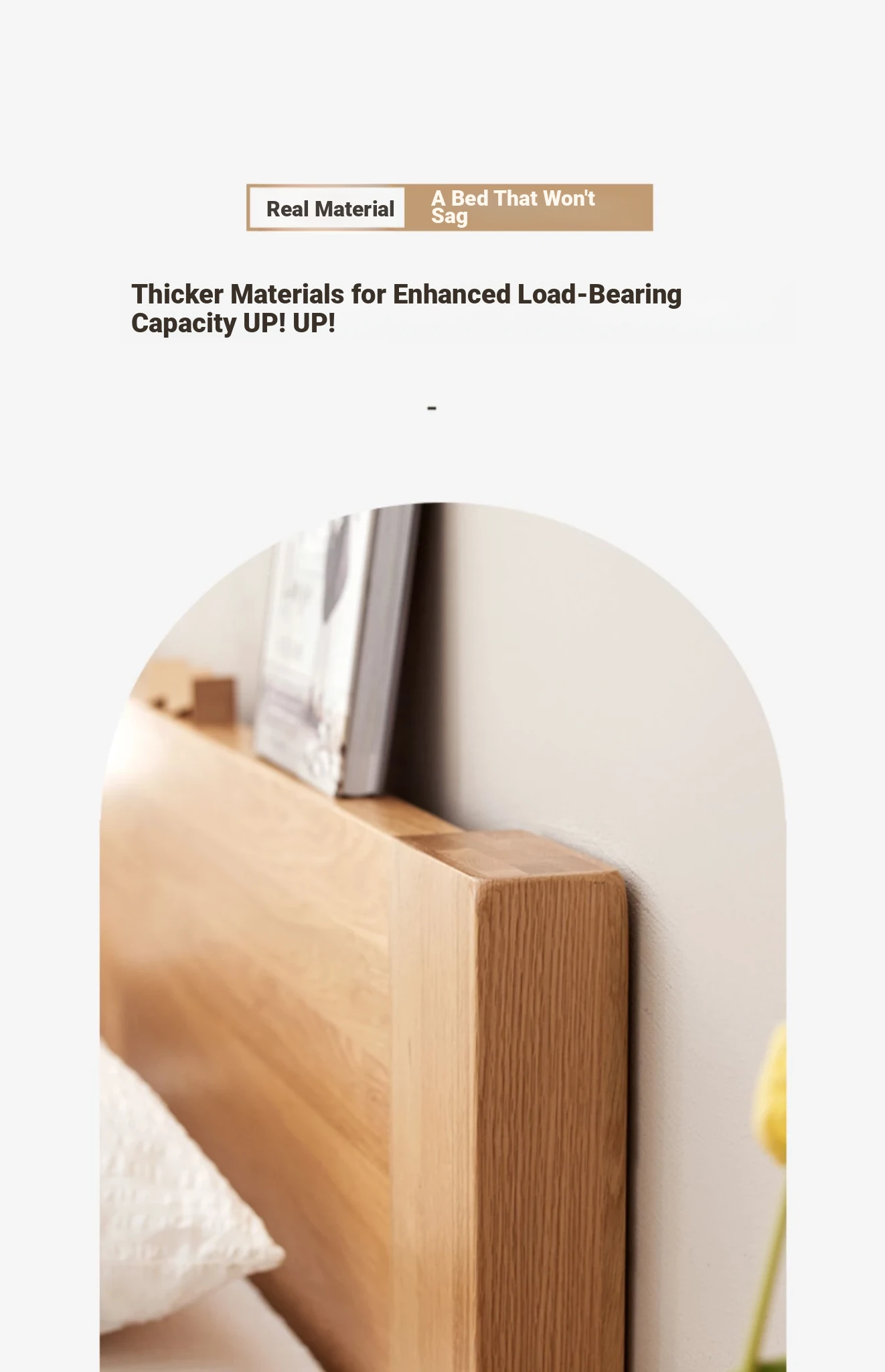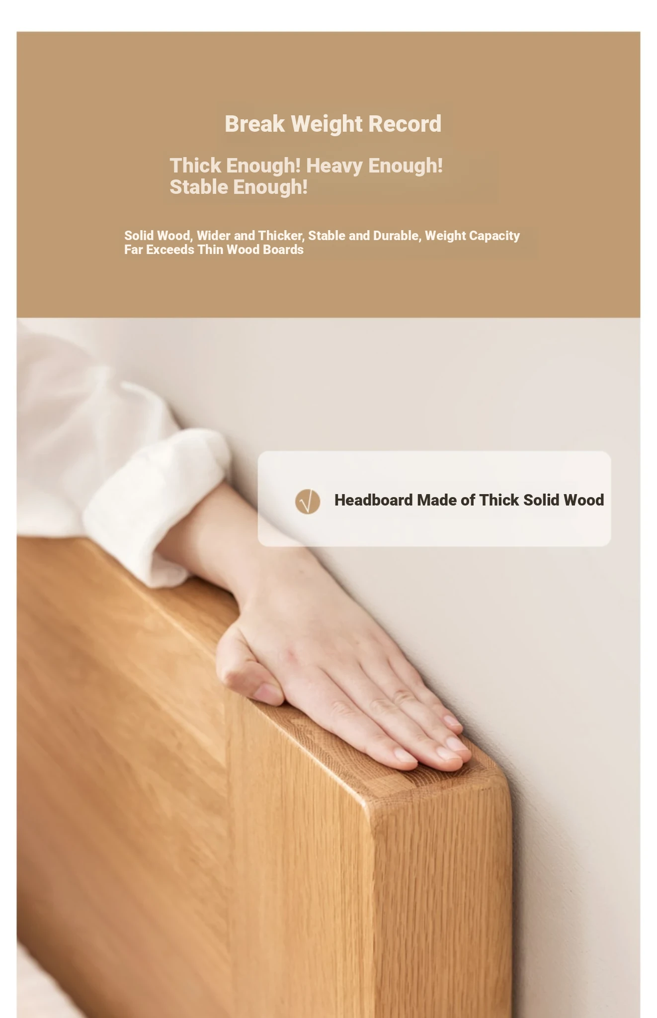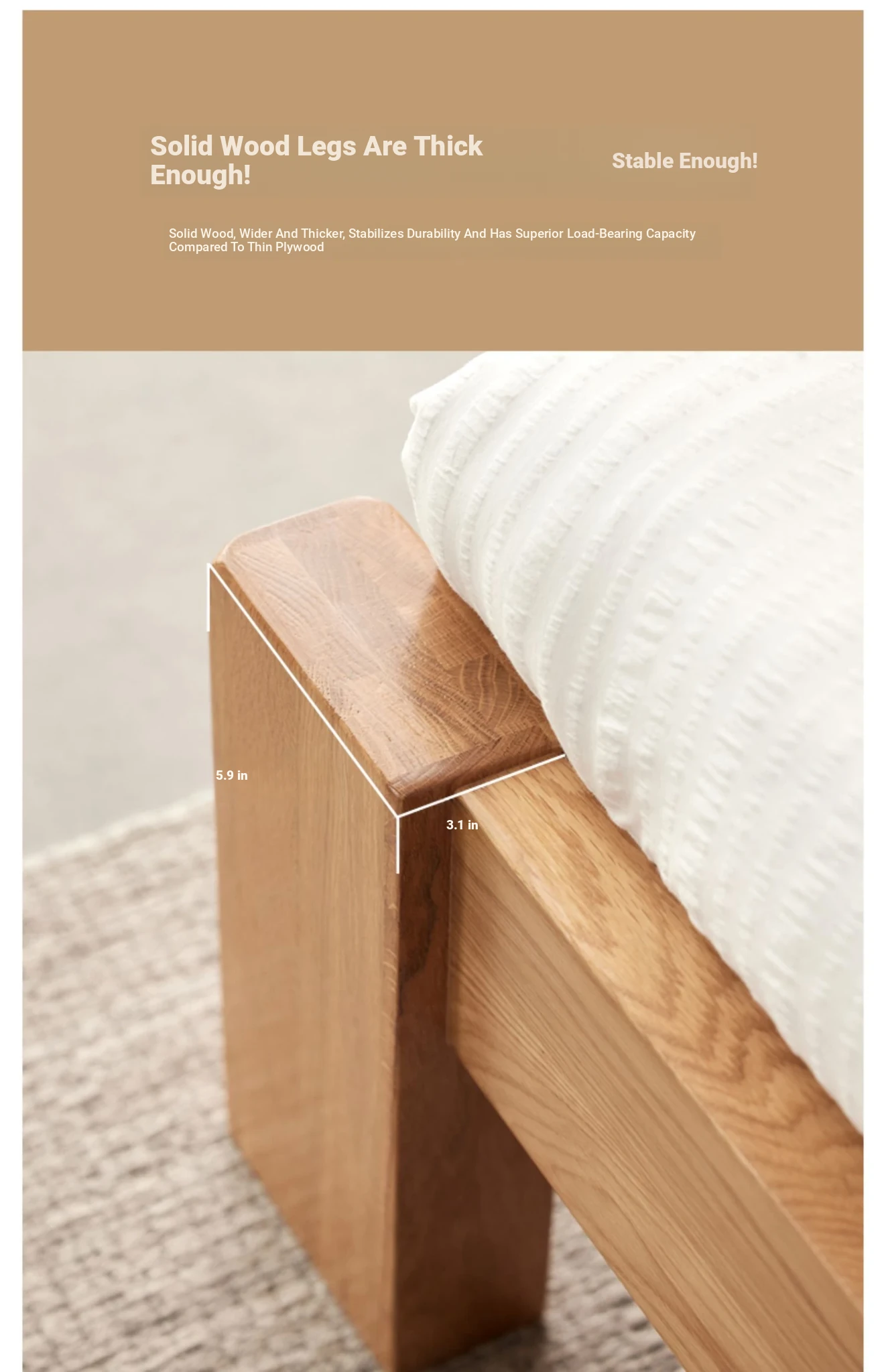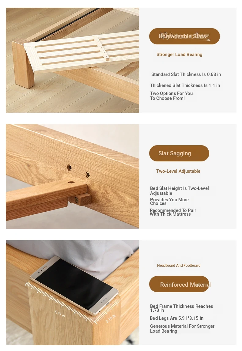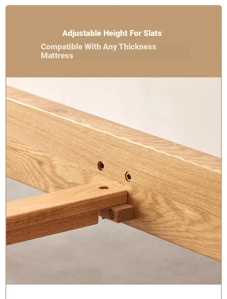Original Element Solid Wood Bed - Oak King Size Bed for Master Bedroom, Nordic Style, Thickened and Widened, Giant Double Bed for Ultimate Comfort