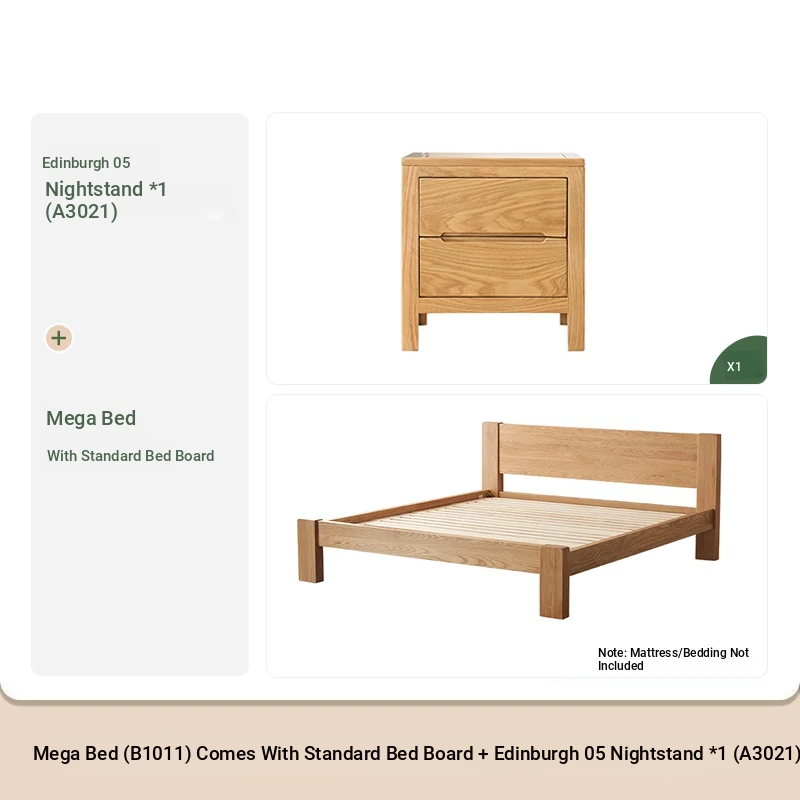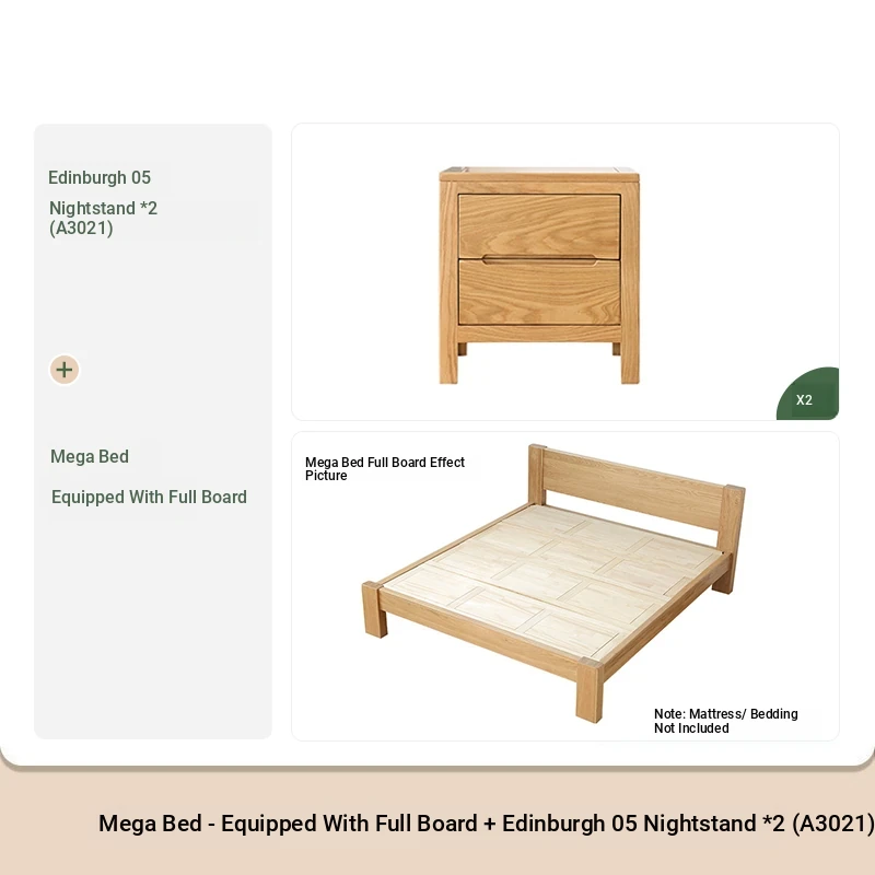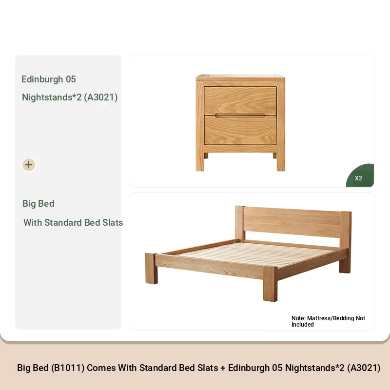 Log Color-Big Mac Bed (with Ordinary Plank) + Bedside Table * 2(A3021)