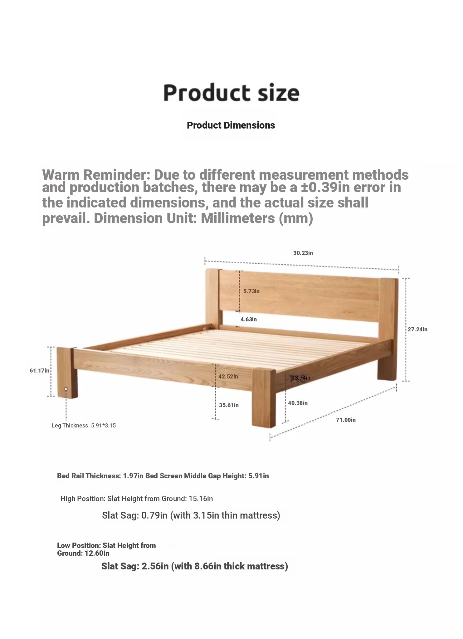 Log Color-Oak Big Mac Bed (with Ordinary Plank) +8.66in Honeycomb 6D Latex Mattress (E6207)
